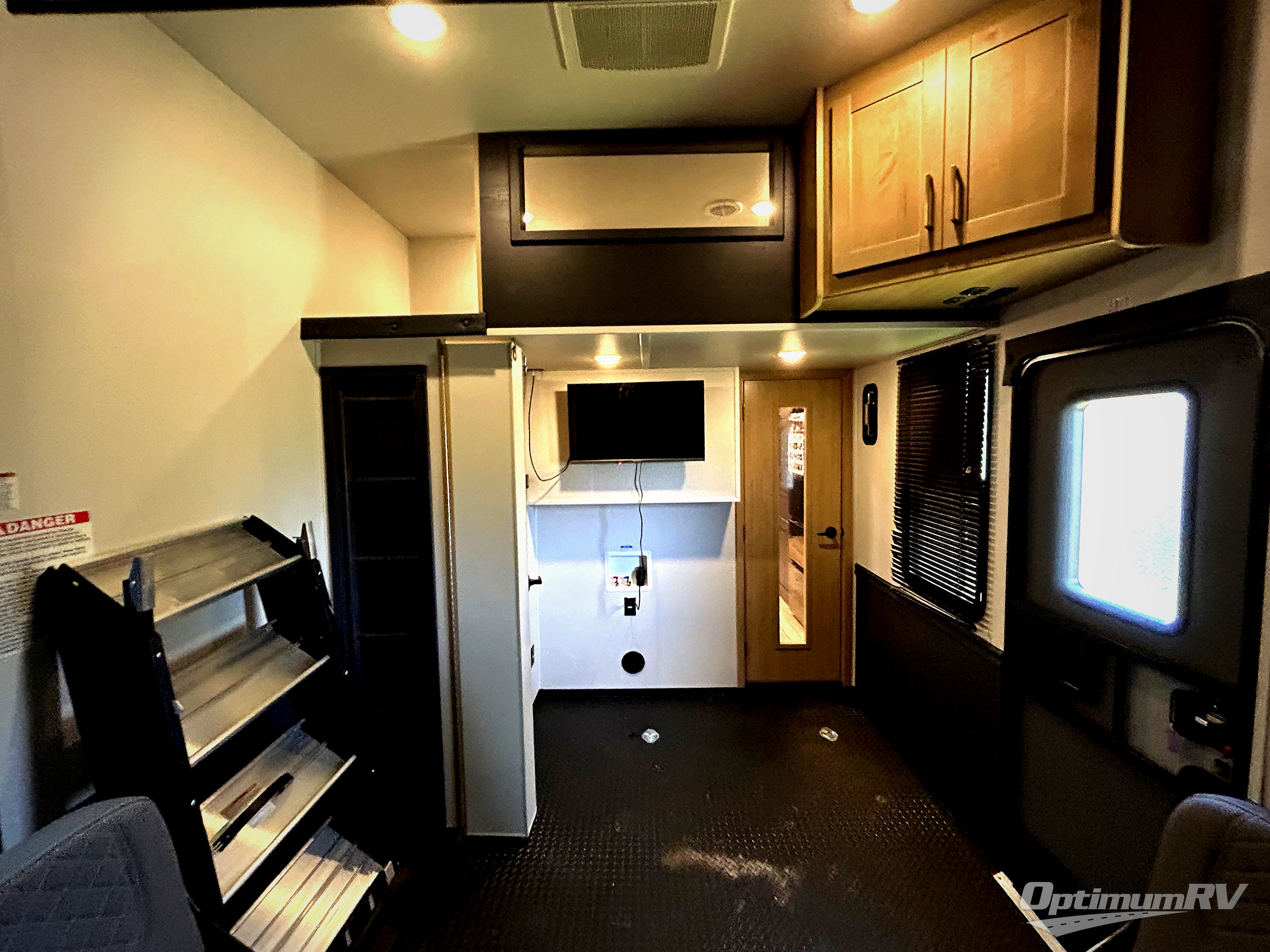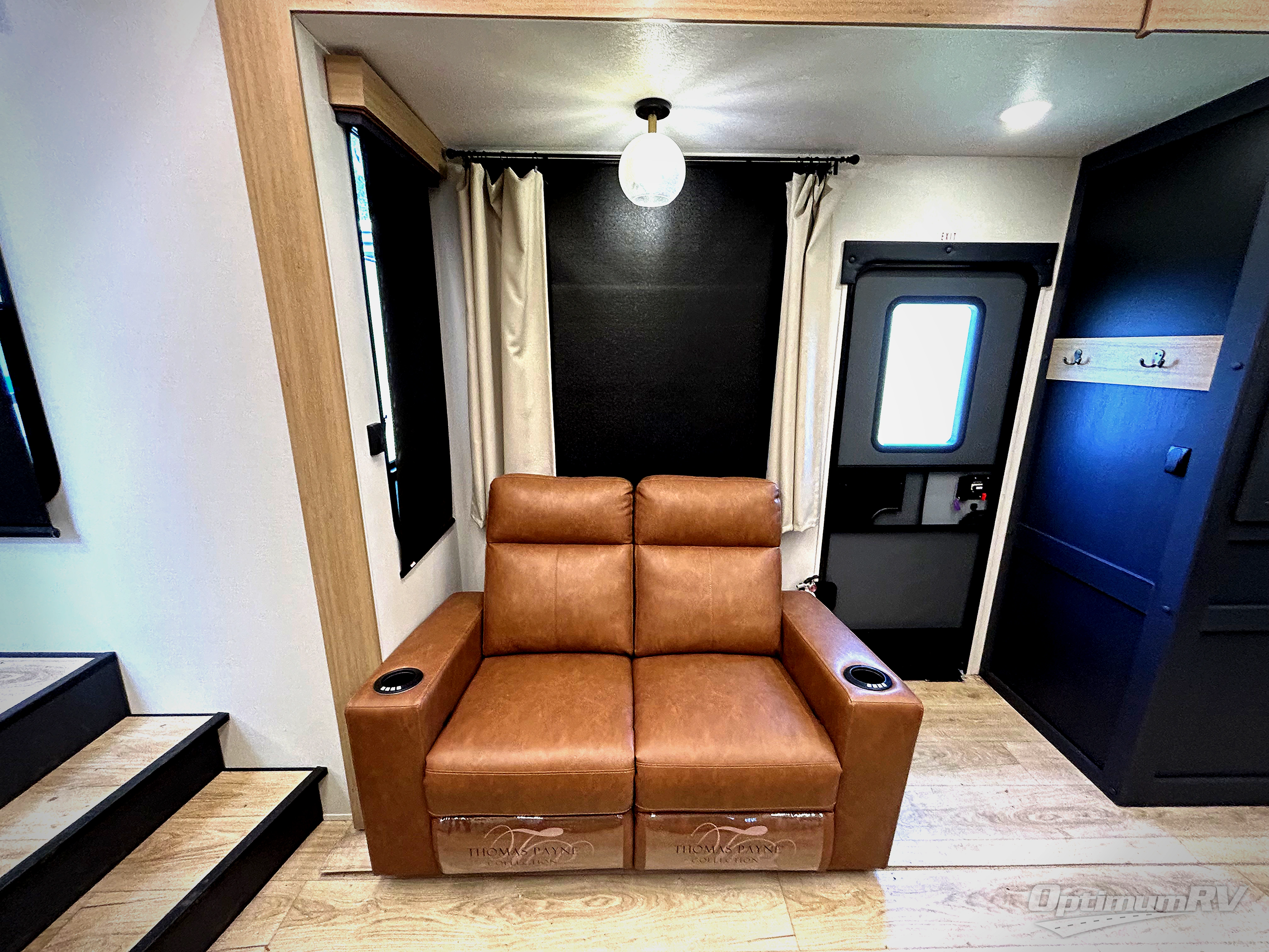 Everyone will have a comfortable place to sit in this toy hauler with the dual opposing theater seating slides and the third theater seating across from the 50" LCD HDTV! The 3,000 lb. weather resistant 8' ramp door makes it easy to load your toys into the 13' garage, and your guest can make this their bedroom at night. Here, you'll find an electric queen bed with a split bench seat/bed underneath, a half bath, plus a loft. There is even washer and dryer prep for wash day! The kitchen includes plenty of countertop space to prepare your best home cooked meals, or you can head outside to cook on the outdoor Grill N Go three burner griddle combo!