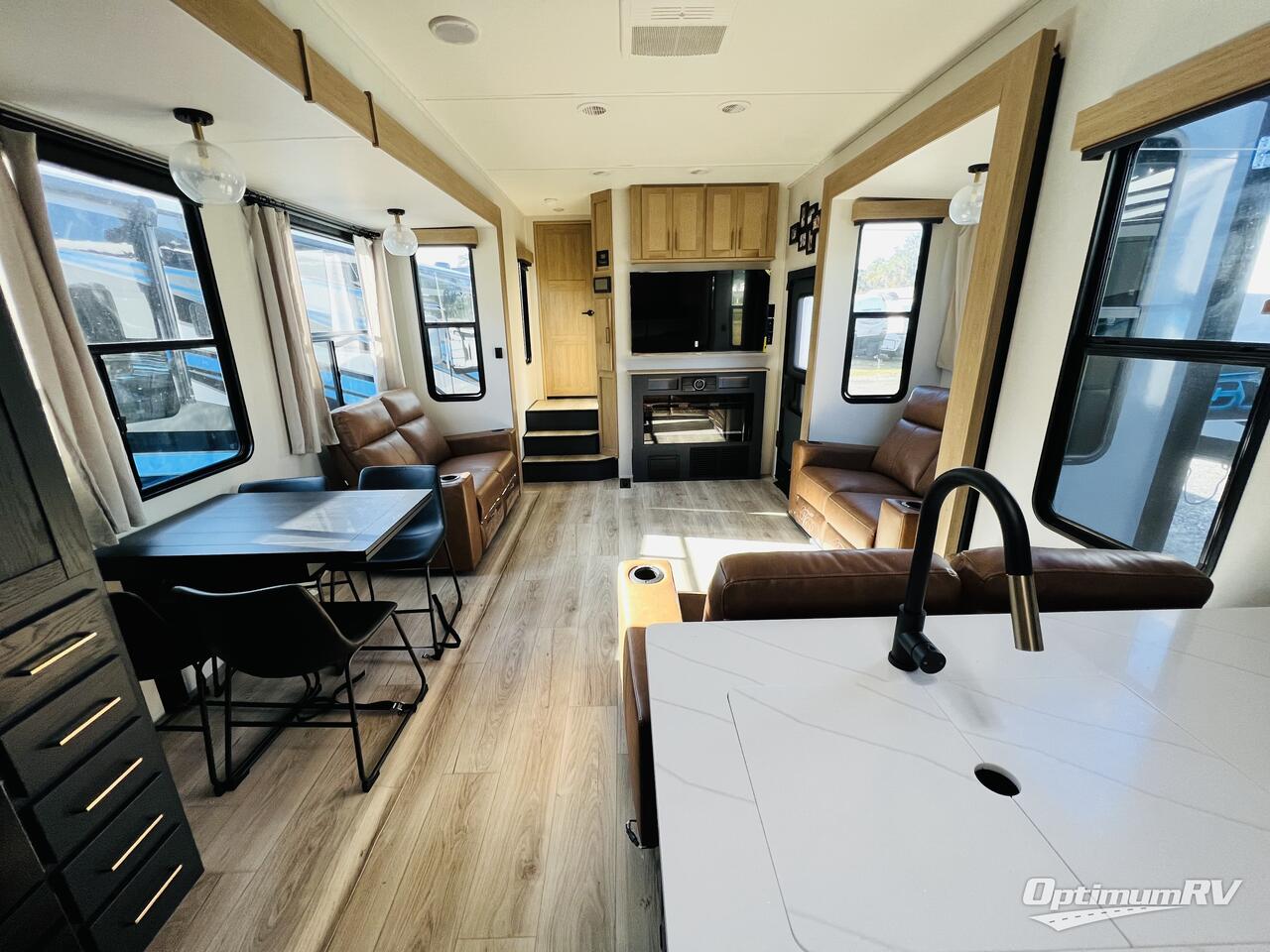 Head to the trails in this spacious toy hauler for eight campers! There is a 13' 6" garage with an electric bed and a split bench seat/bed for guests, plus a half bath and a loft for more sleeping space or storage! You will have your own bedroom up front with a tilting king bed slide out, two wardrobes, and a private entry door into the dual entry full bath. The living room will be a favorite place to visit since there are three sofa in great view of the 50" LCD HDTV, and the free-standing table will provide a place to dine at each day. The chef of your group will have everything they need to prepare meals, including a residential microwave and massive 24" stand-alone oven, or they may just find themselves using the exterior Grill and Go. There is also a 20' awning outside and an exterior TV to watch the big game with campground neighbors!
