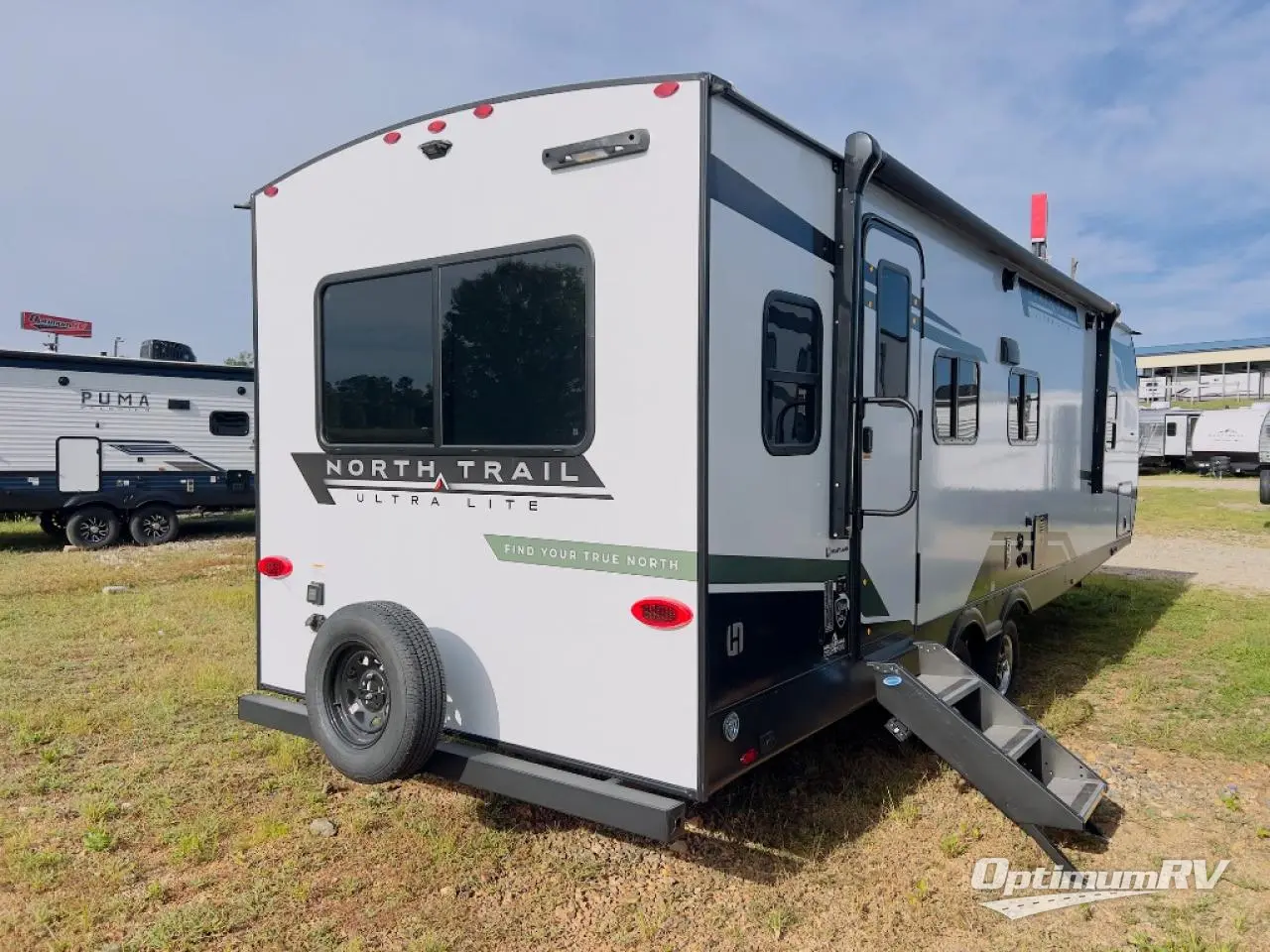 When you choose a North Trail Ultra-Lite travel trailer by Heartland you are choosing comfort, convenience, and quality craftsmanship at its best. The block foam brick insulation, enclosed and heated underbelly, plus Weather Guard thermal protection mean you can camp all year around. Each model features a Wide Trax suspension for a smooth ride, and the backup camera prep and solar prep make camping that much easier if you choose those options. Some of the other exterior features you will appreciate are the outside shower, the power stabilizer jacks and power tongue jack, and the outside speakers to keep the party going. Head inside to find stainless steel appliances, oversized windows, and premium flooring that is tear, slip, mold, mildew and cold crack resistant! You can't beat a North Trail travel trailer. Choose your favorite floorplan today!