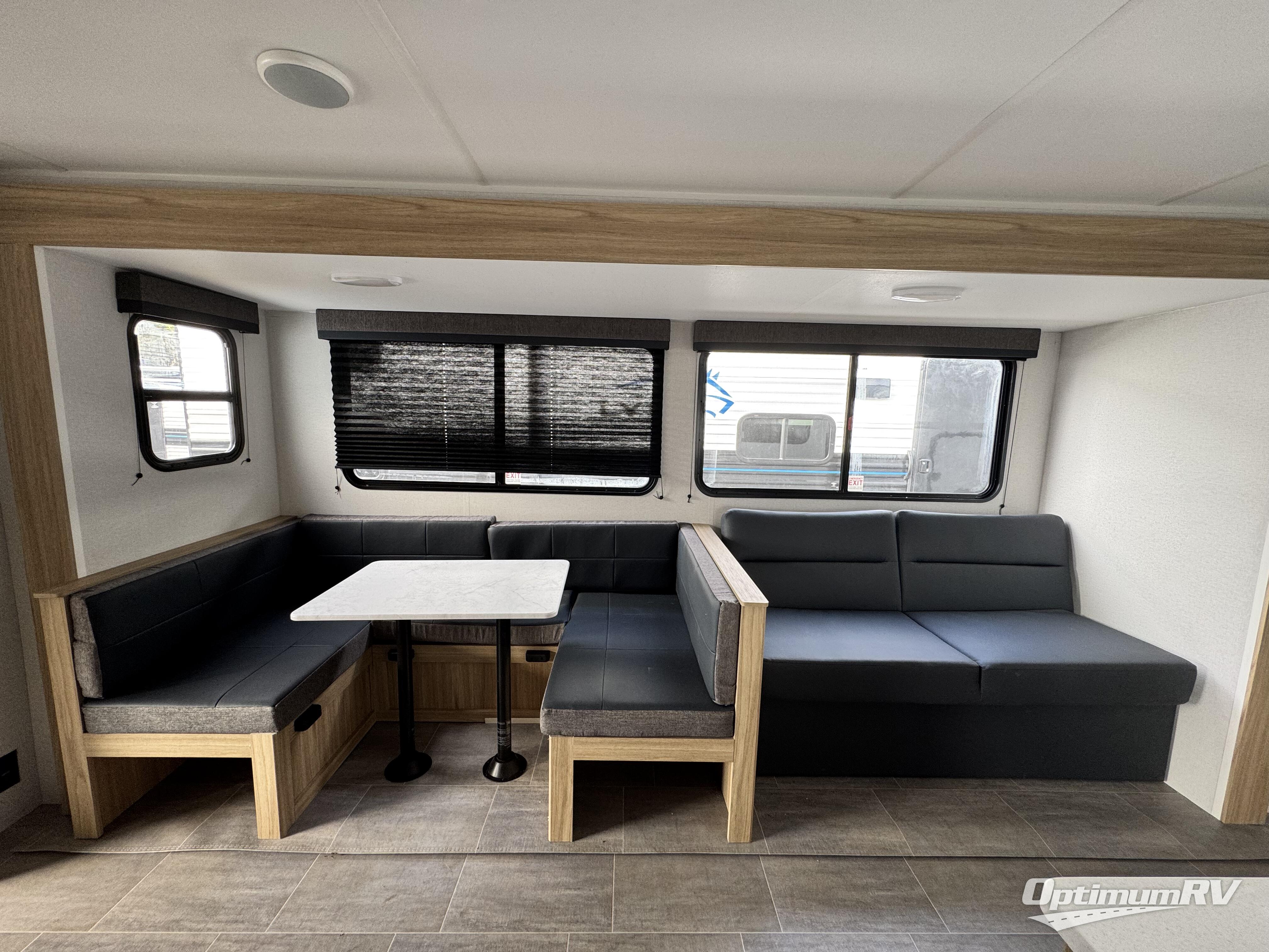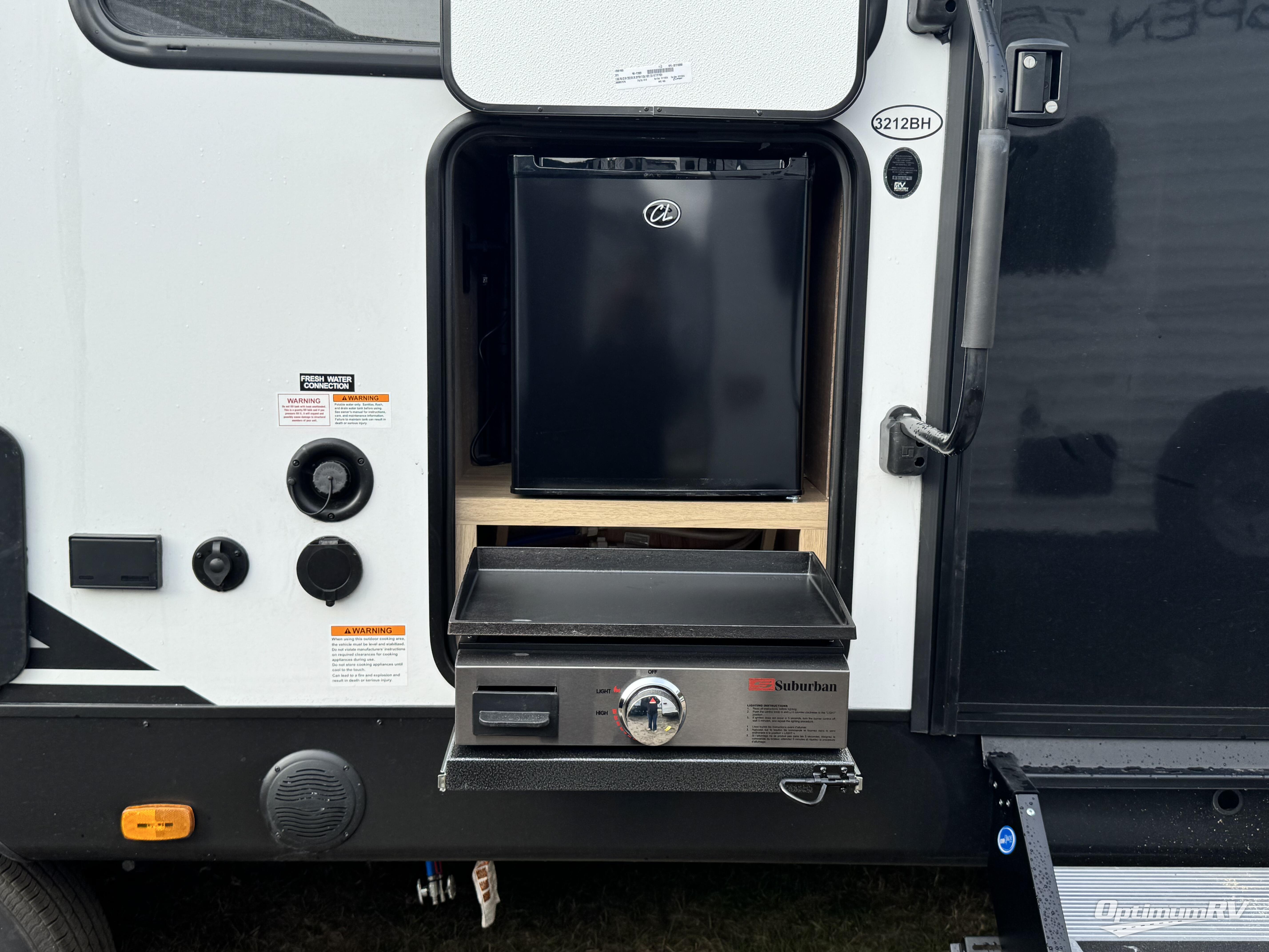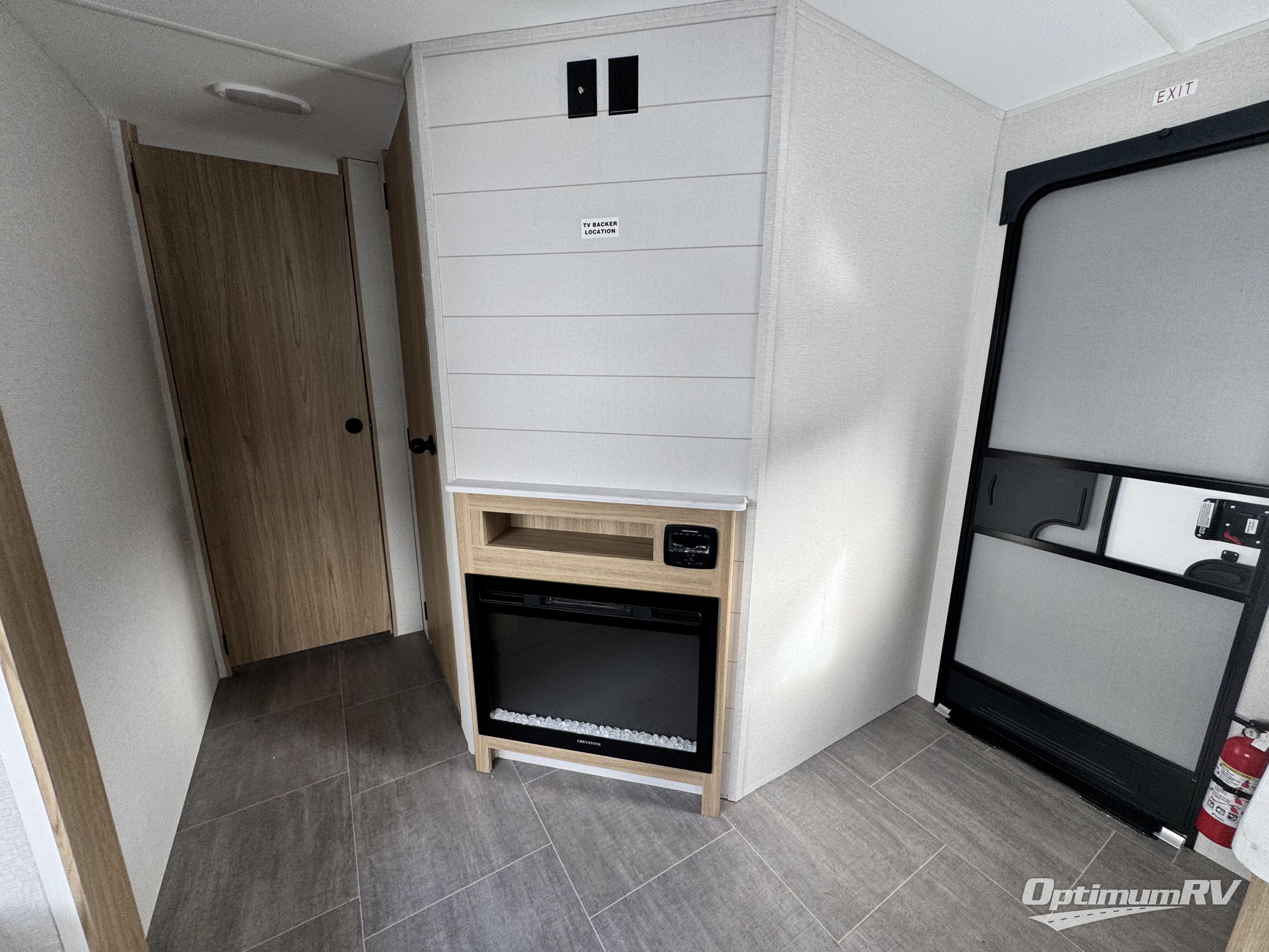 Camping just got a whole lot sweeter in this double slide out travel trailer for nine people. Your guests can stay in the front private bunkhouse that includes double-size bunks with removable lower bunks so you can easily pack in gear! You will enjoy the rear private bedroom with a queen bed slide out, a wardrobe, plus a dresser with TV prep. The main living area is spacious with its large slide out, and everyone can dine around the U-shaped dinette. There is also a sofa here and an entertainment center with a fireplace. Bring your own TV and you're ready for movie night! And check out the outdoor kitchen with a griddle for a pancake breakfast!