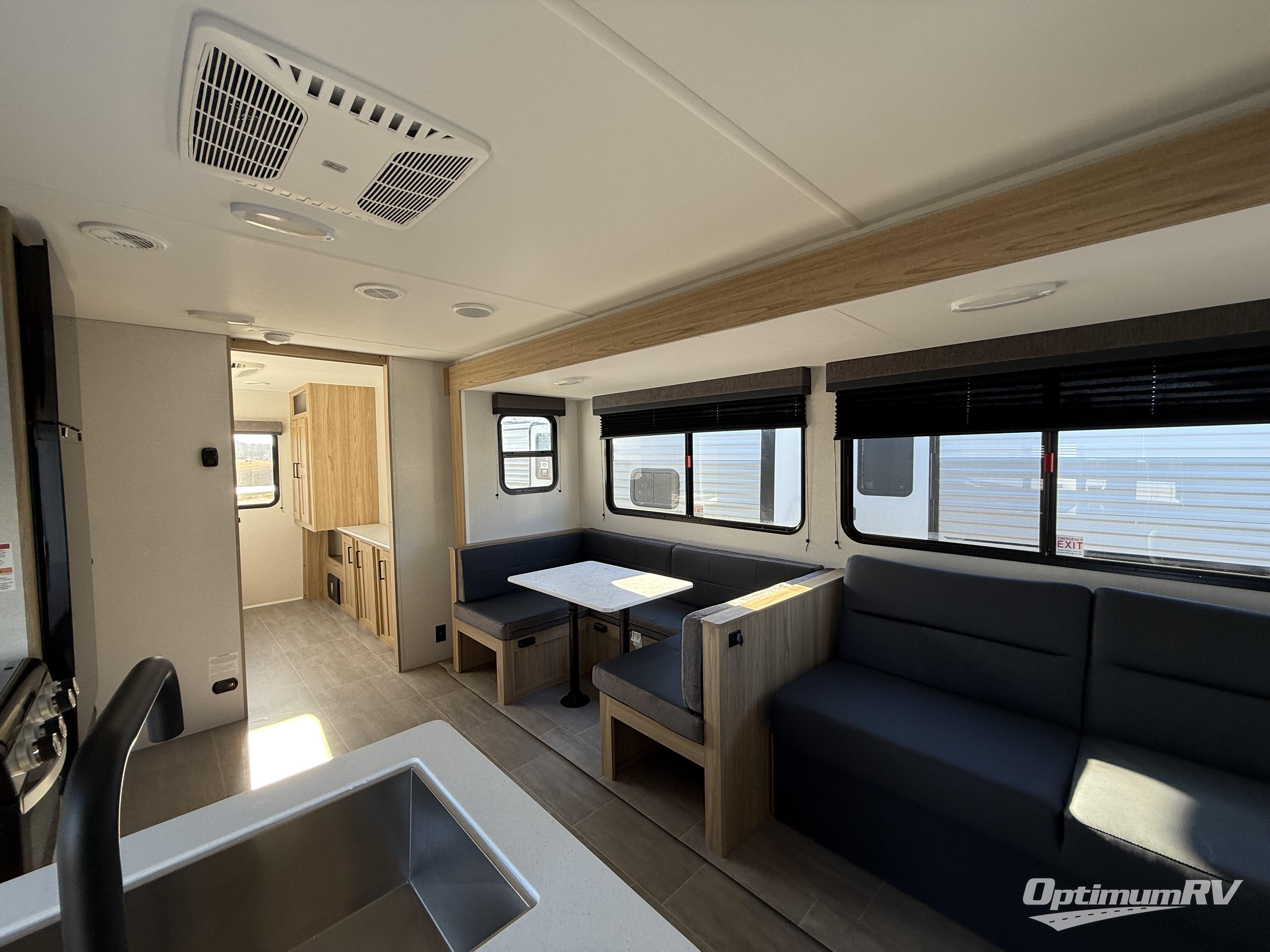 Camping just got a whole lot sweeter in this double slide out travel trailer for nine people. Your guests can stay in the front private bunkhouse that includes double-size bunks with removable lower bunks so you can easily pack in gear! You will enjoy the rear private bedroom with a queen bed slide out, a wardrobe, plus a dresser with TV prep. The main living area is spacious with its large slide out, and everyone can dine around the U-shaped dinette. There is also a sofa here and an entertainment center with a fireplace. Bring your own TV and you're ready for movie night! And check out the outdoor kitchen with a griddle for a pancake breakfast!