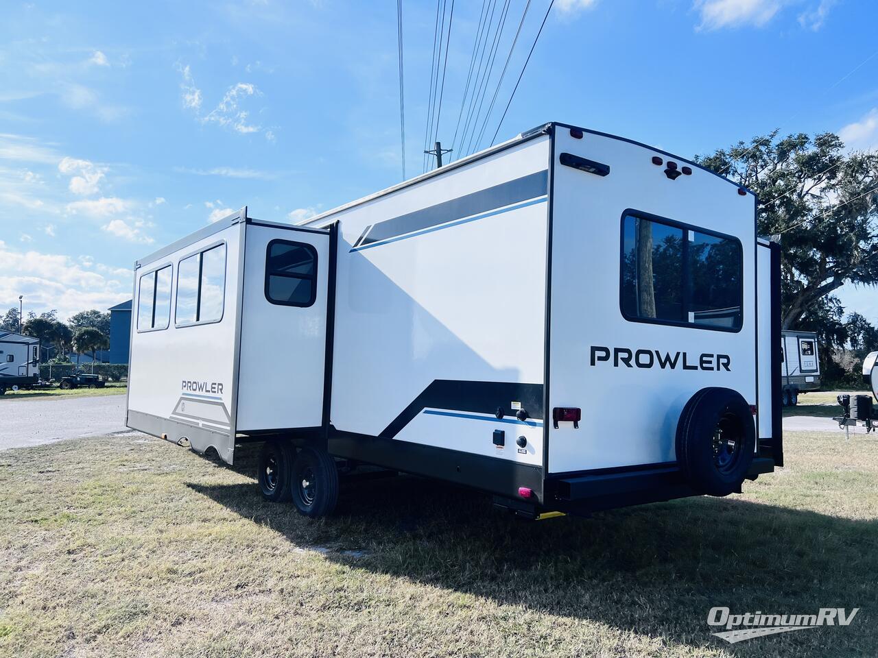 Get ready for comfortable and easy camping with the Prowler travel trailers by Heartland. These models feature durable construction with a performastructure aluminum front wall, a cambered structural steel I-beam frame, and a fully walkable roof. The MEGA bright pass-through storage features 52 cu. ft. of exterior storage with mega sized access doors, LED lights, and a finished interior to keep your gear secure. You'll fall in love with the at-home kitchen the includes Duralast countertops, a residential refrigerator, plus a stainless steel double bowl undermount sink for easy clean-up. These travel trailers also feature panoramic windows, an EZ clean interior, USB charging ports throughout, and many more comforts! Don't let the Prowler travel trailers slip away. Don't let the Prowler travel trailers slip away. Choose your favorite floorplan today!