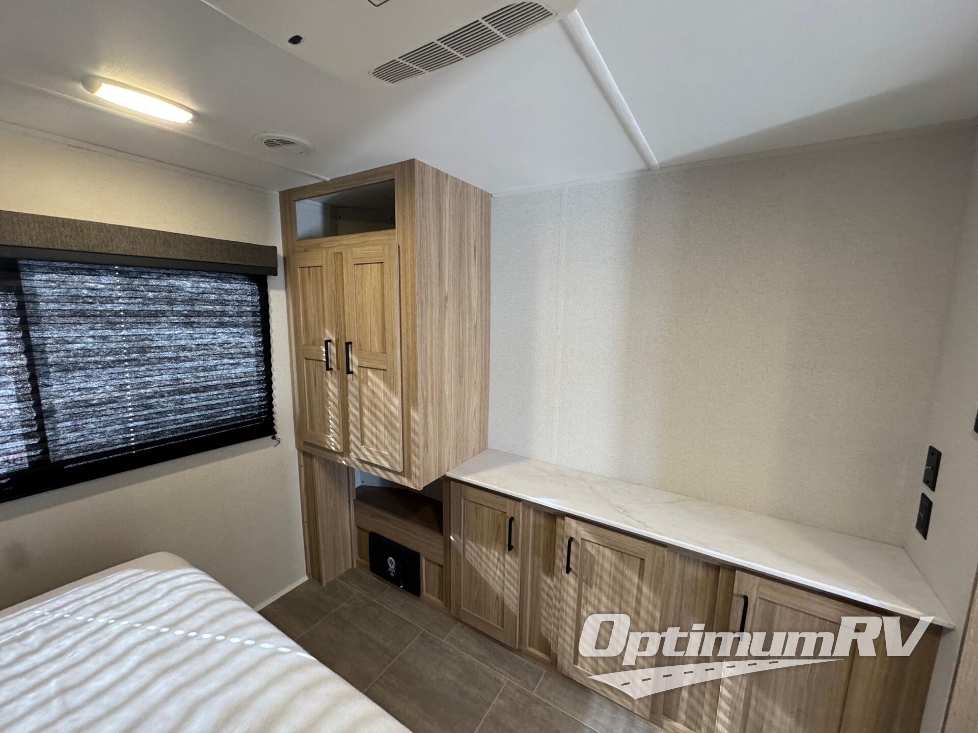 Camping just got a whole lot sweeter in this double slide out travel trailer for nine people. Your guests can stay in the front private bunkhouse that includes double-size bunks with removable lower bunks so you can easily pack in gear! You will enjoy the rear private bedroom with a queen bed slide out, a wardrobe, plus a dresser with TV prep. The main living area is spacious with its large slide out, and everyone can dine around the U-shaped dinette. There is also a sofa here and an entertainment center with a fireplace. Bring your own TV and you're ready for movie night! And check out the outdoor kitchen with a griddle for a pancake breakfast!