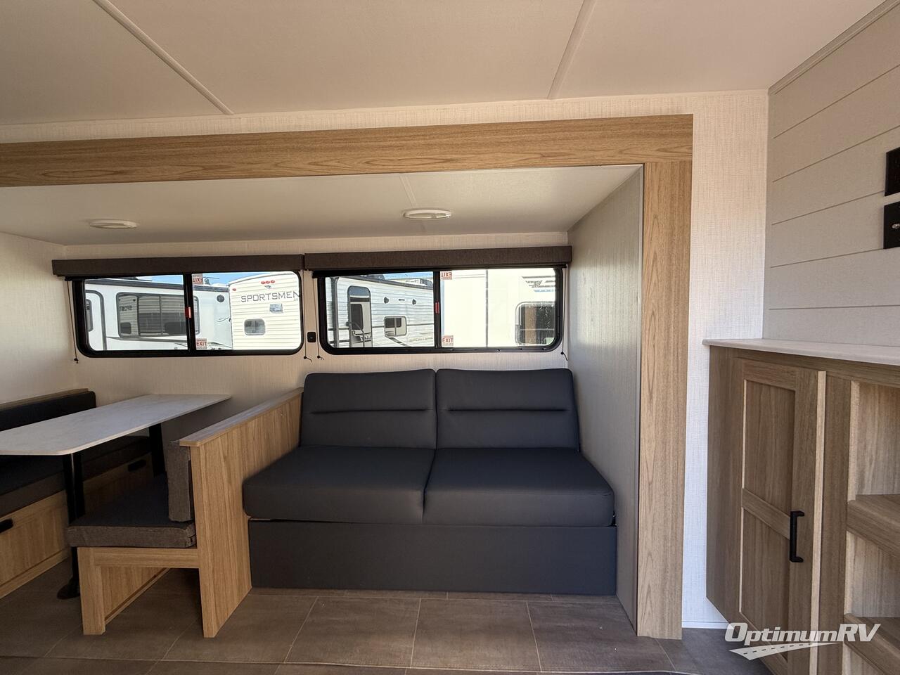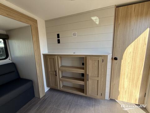The littles ones will love camping in this travel trailer since there is a rear private bunkhouse with four bunks, a wardrobe, plus shelves to keep their things tidy. A full kitchen, complete with a cooktop, microwave, and 12V refrigerator will let you cook and store food, and a booth dinette provides a place to dine together. There is also a sofa where you can relax in the evenings if you're not outdoors under the 17' power awning. And when it's time to call it a night, you can head to the front private bedroom for a great night's rest on the queen bed!