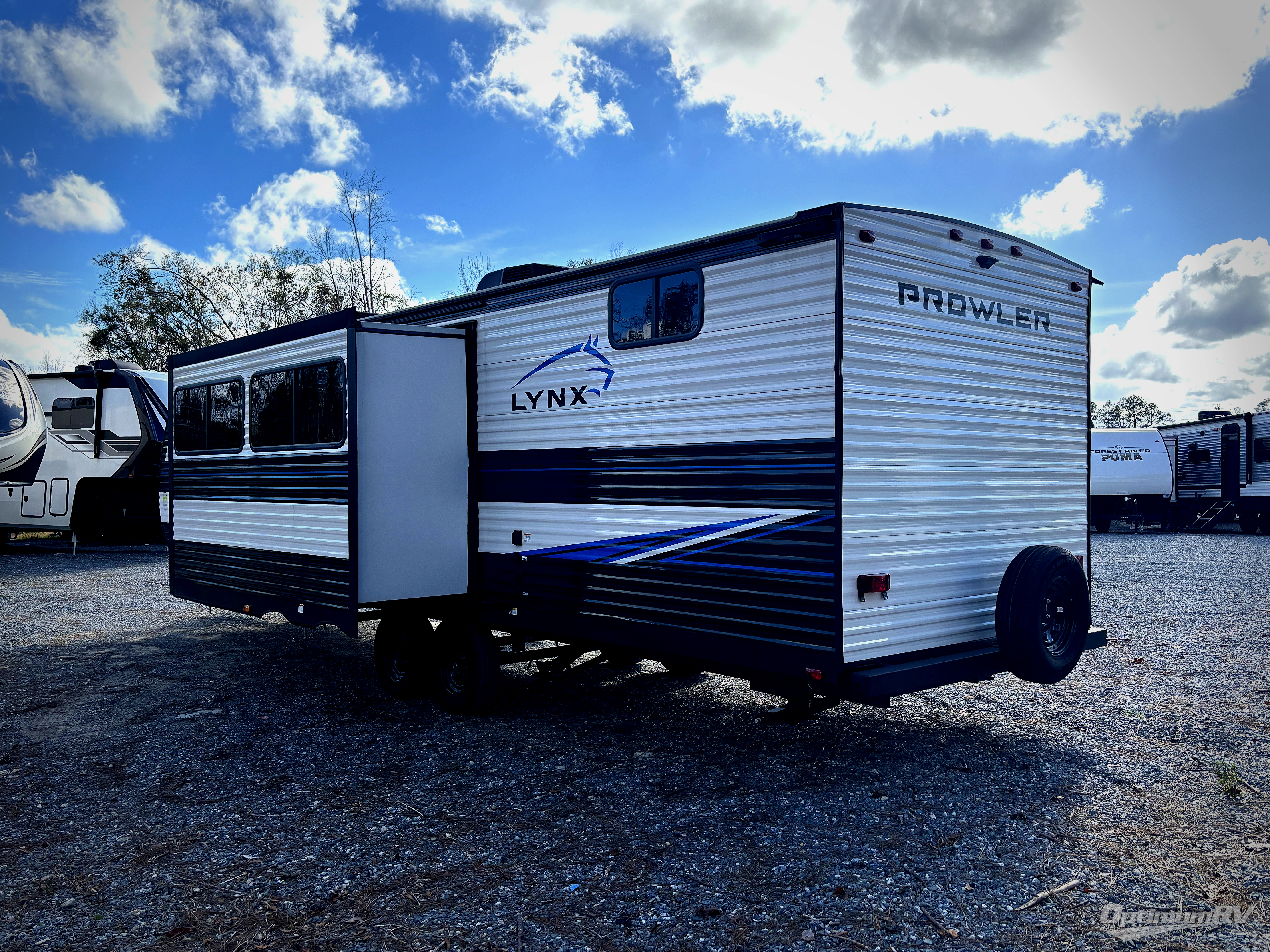 Get ready for comfortable and easy camping with the Prowler Lynx travel trailers by Heartland. Each model includes full bath and kitchen amenities, comfortable seating and sleeping spaces, and plenty of storage spaces that will help you keep camp gear and personal belongings clean and neat! The power awning with an LED light strip outdoors will provide shade when you need it, and the LED interior lights will keep your space well lit. These units also include USB ports to keep your electronics charge, a systems monitor panel, night shades in the living area and bedroom, plus many more conveniences to make life at the campground easier than ever!
