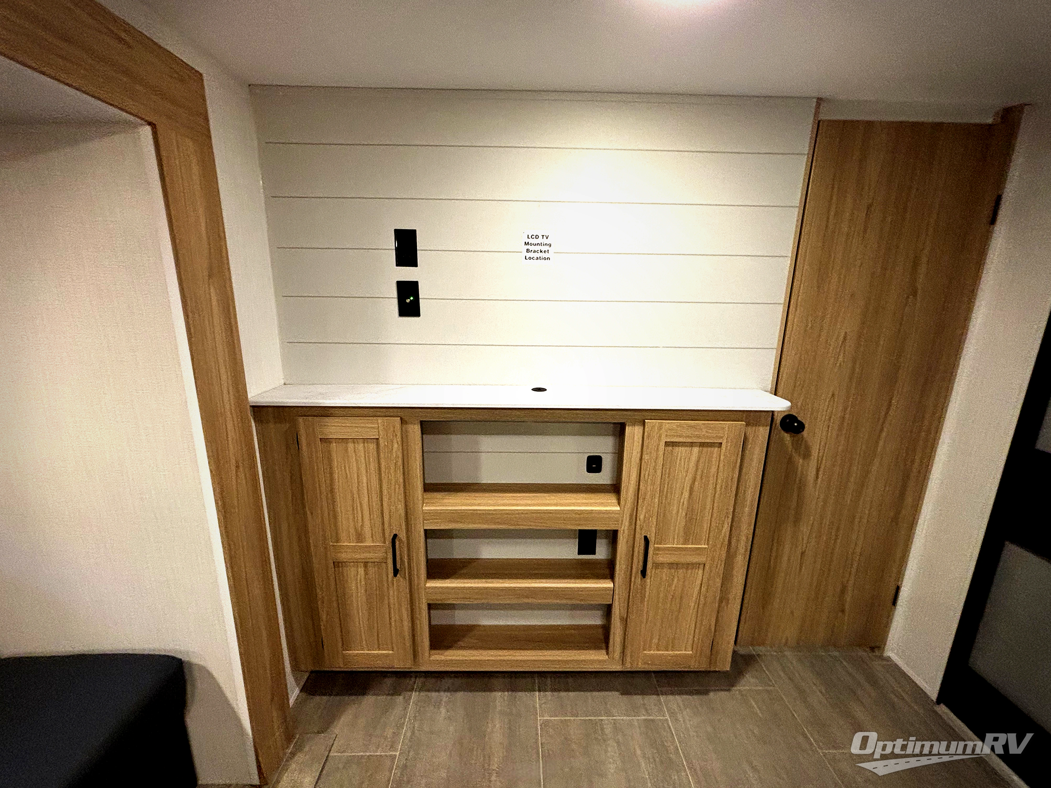 The littles ones will love camping in this travel trailer since there is a rear private bunkhouse with four bunks, a wardrobe, plus shelves to keep their things tidy. A full kitchen, complete with a cooktop, microwave, and 12V refrigerator will let you cook and store food, and a booth dinette provides a place to dine together. There is also a sofa where you can relax in the evenings if you're not outdoors under the 17' power awning. And when it's time to call it a night, you can head to the front private bedroom for a great night's rest on the queen bed!
