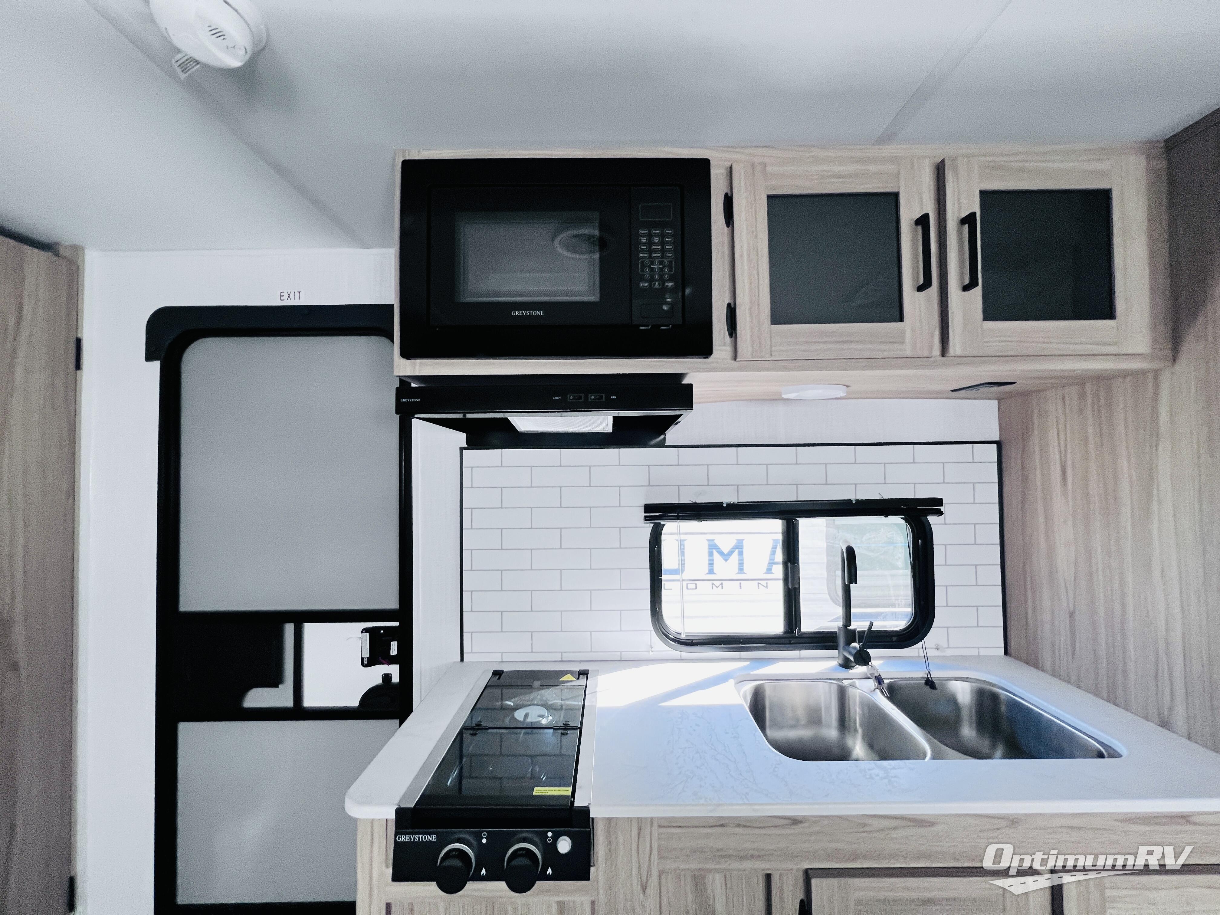The littles ones will love camping in this travel trailer since there is a rear private bunkhouse with four bunks, a wardrobe, plus shelves to keep their things tidy. A full kitchen, complete with a cooktop, microwave, and 12V refrigerator will let you cook and store food, and a booth dinette provides a place to dine together. There is also a sofa where you can relax in the evenings if you're not outdoors under the 17' power awning. And when it's time to call it a night, you can head to the front private bedroom for a great night's rest on the queen bed!
