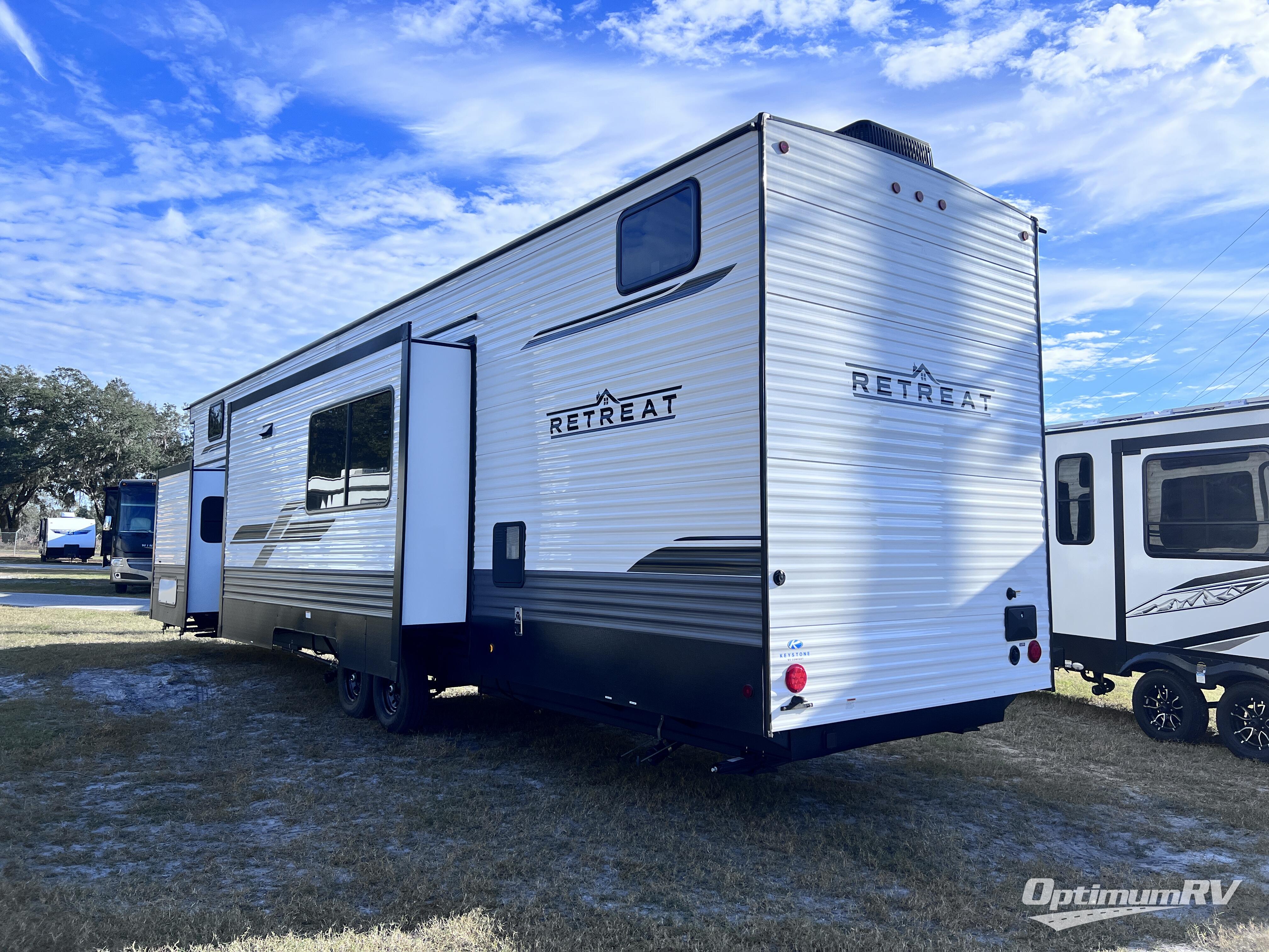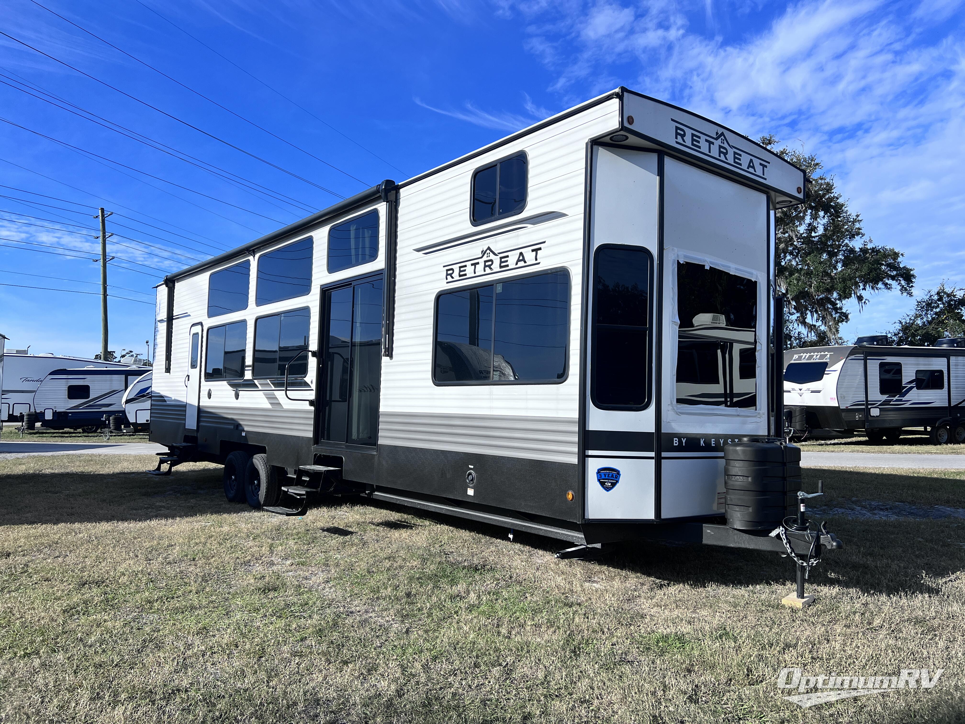 The Keystone Retreat destination trailer is a luxurious retreat in and of itself! You won't need to plan an extensive road trip because the Retreat gives you everything you need in one location. The spacious interiors include residential appliances and plenty of storage spaces for personal belongings, camp gear, food, and more! Whether you choose a Retreat with laminated or aluminum sidewalls, you're sure to enjoy extended stays to the fullest!