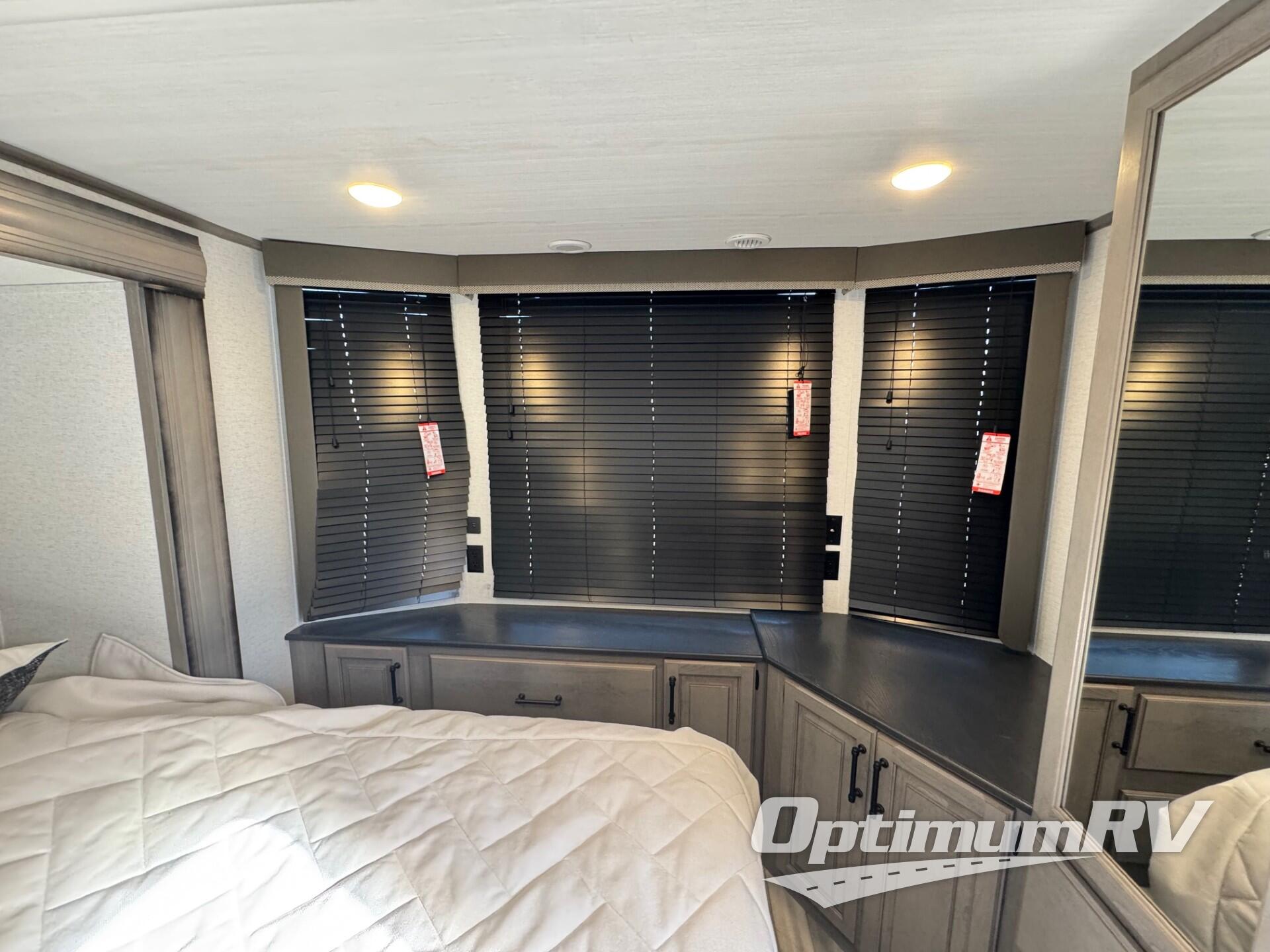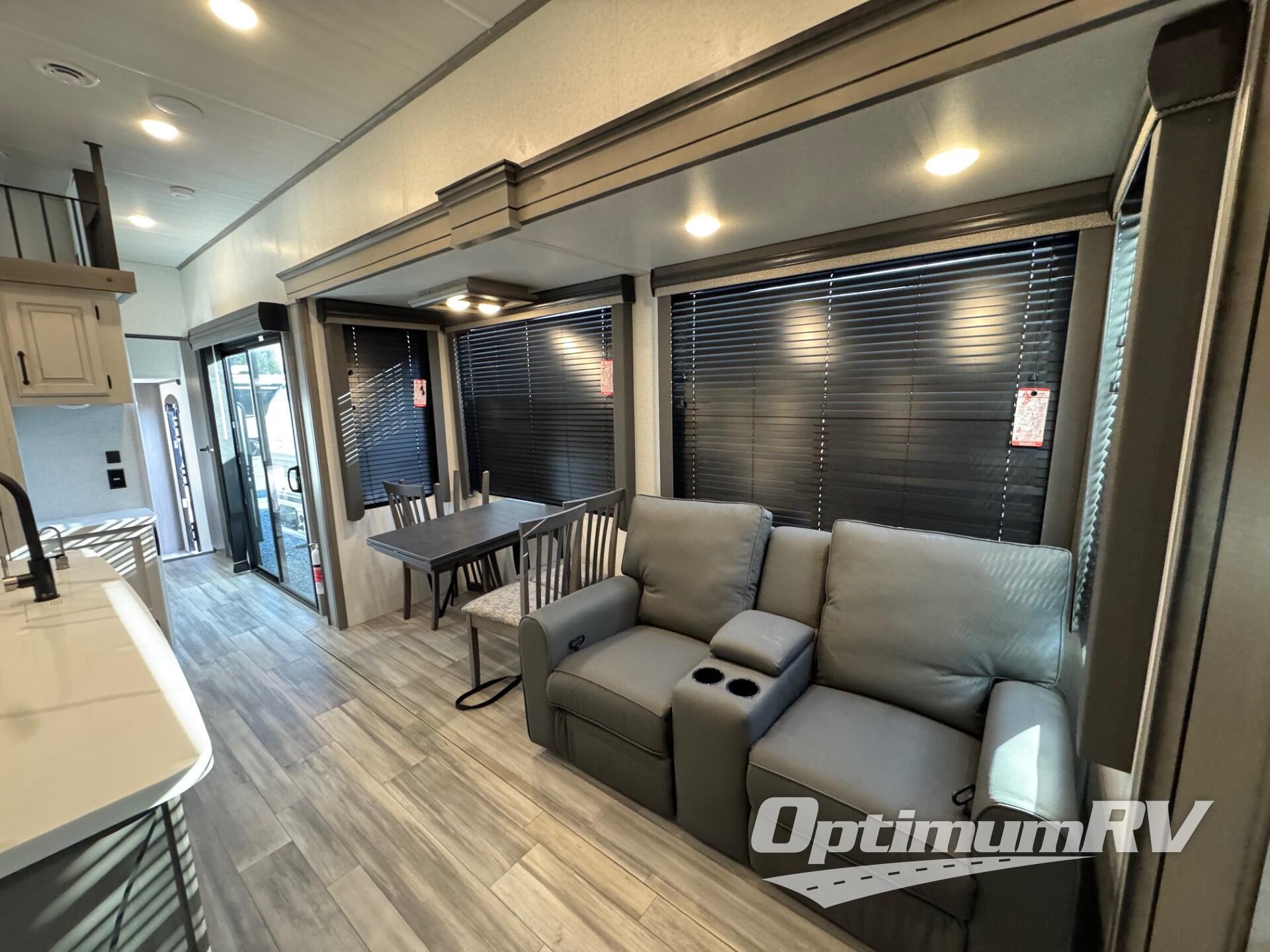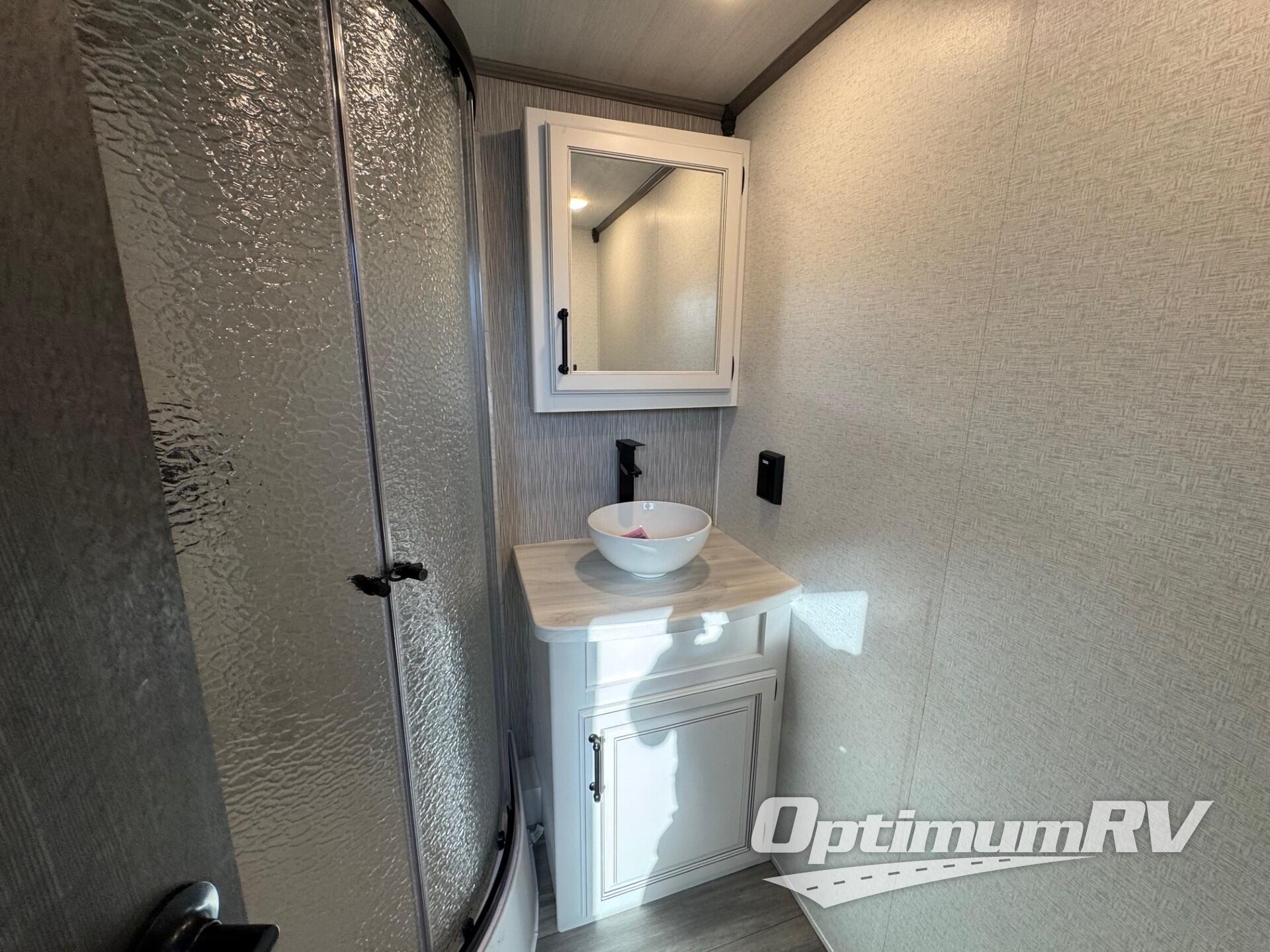 For the ultimate getaway retreat, you need this Retreat destination trailer! With its 15 cu. ft. refrigerator, three-burner range top, and radius shower, you will have all of the basic amenities needed for everyday living, but this model doesn't stop there. You will also find plenty of extra special touches added throughout the interior, like the king-size bed and armoire in the private bedroom and the double loft area above the bedroom and bathroom. You will also thoroughly enjoy the comfort of lounging back in the theater seating with an ice-cold beverage sitting in the cup holder while you watch a movie on the 50" LED TV.