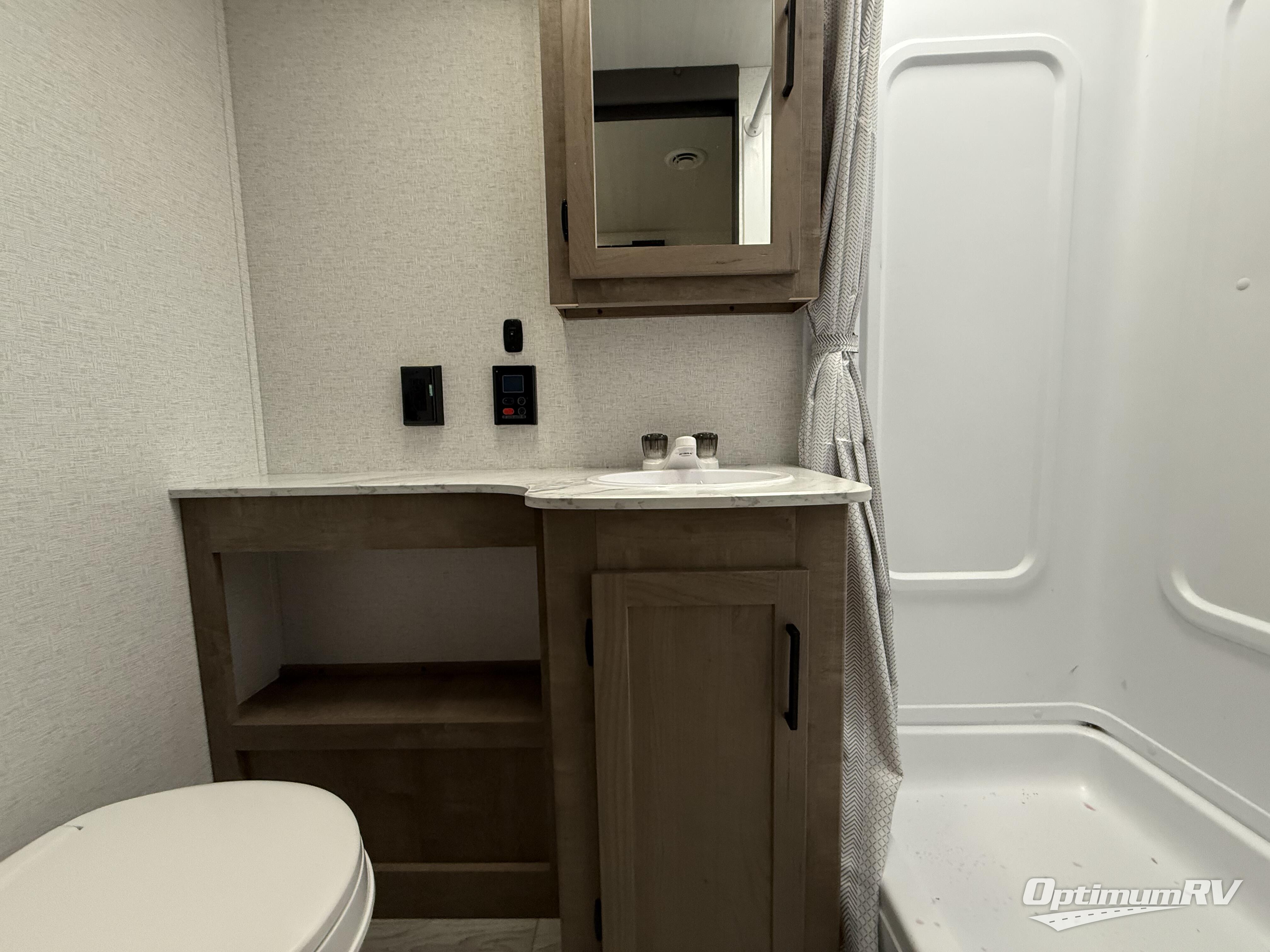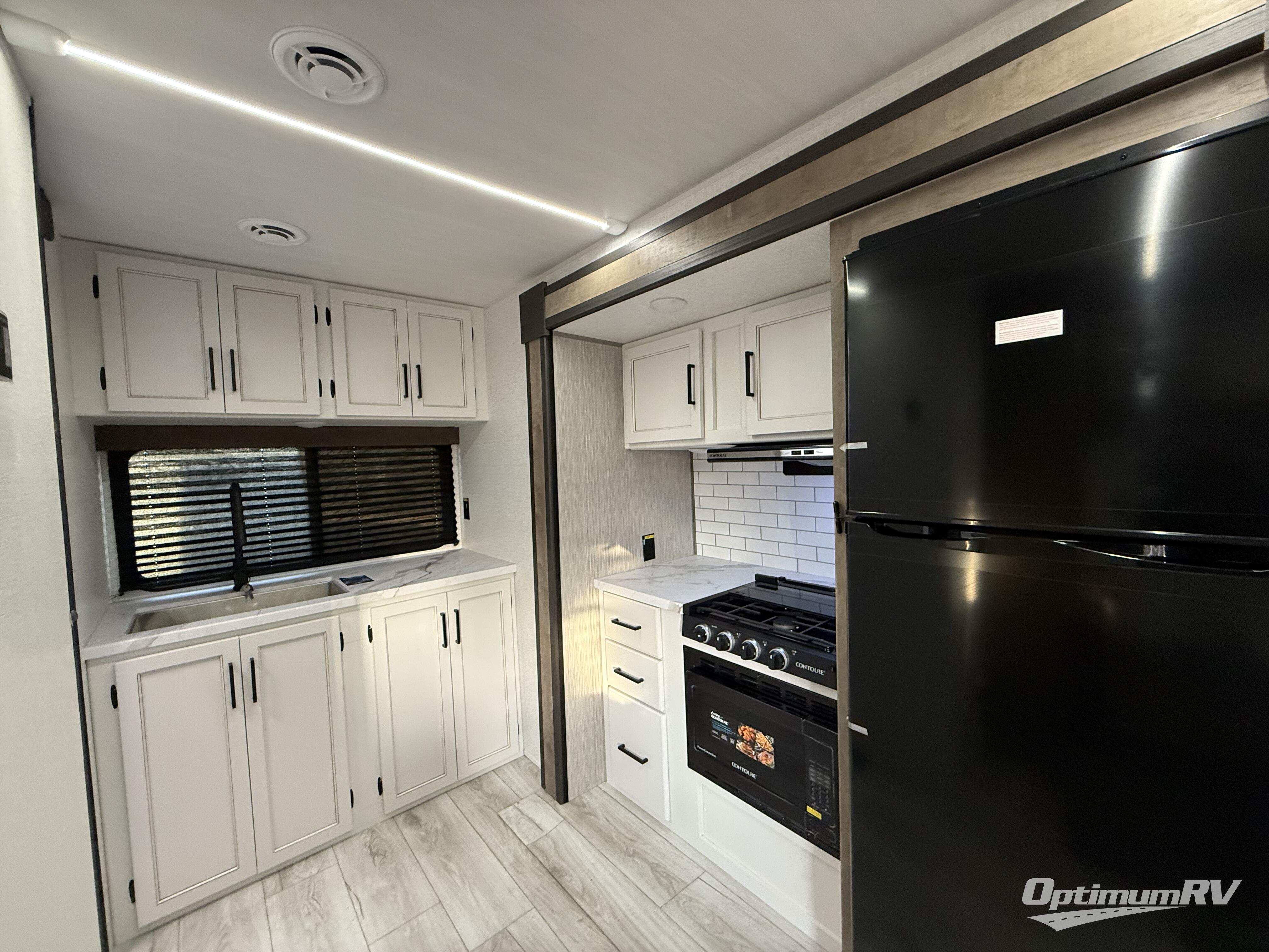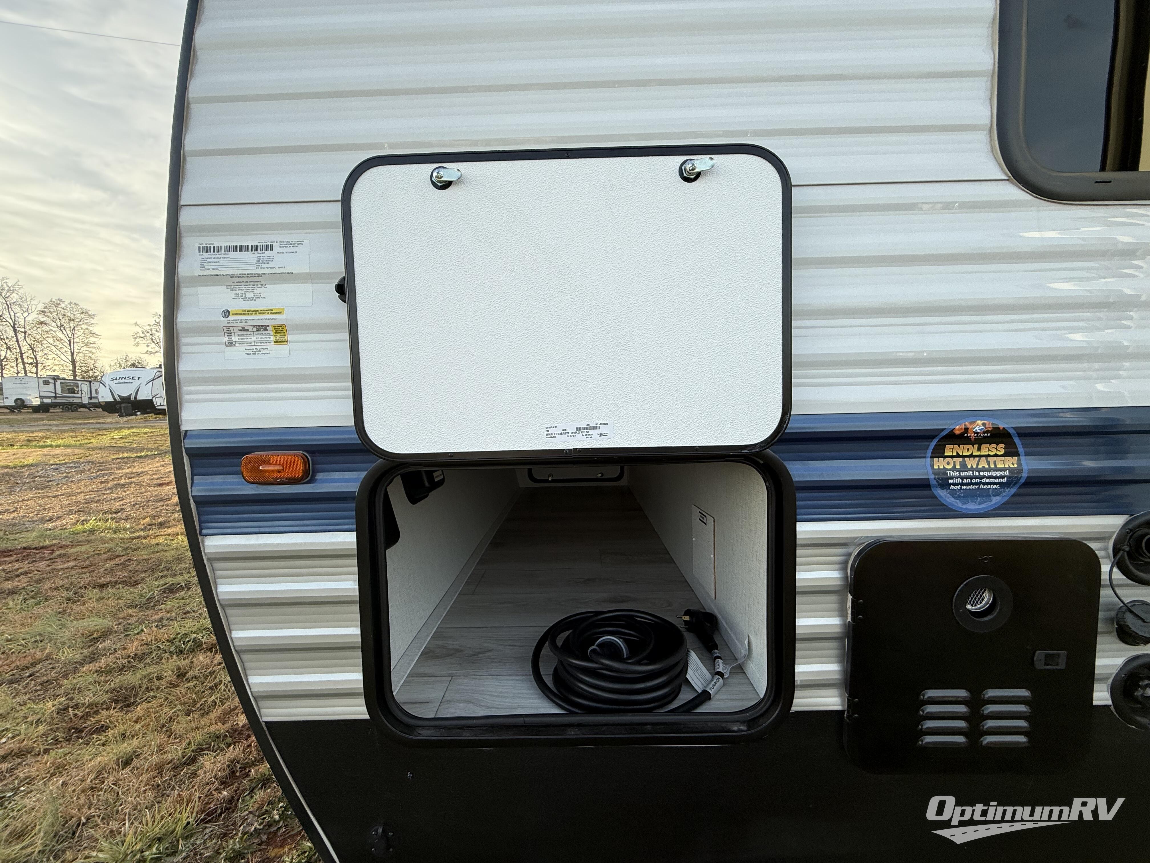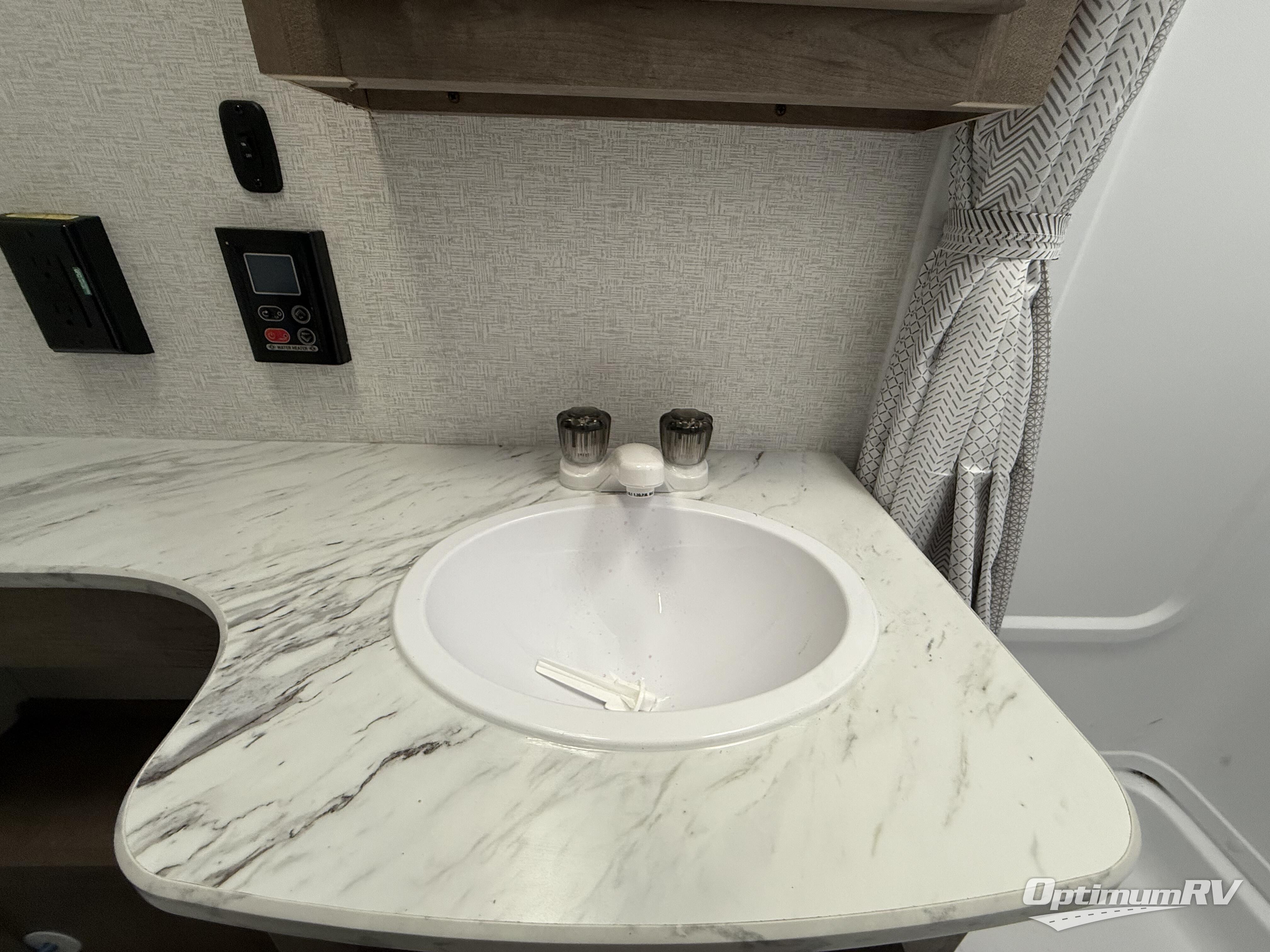 Trips to your favorite camping spot just got better in this open concept travel trailer. The large slide out houses the sofa with an end table, three burner cooktop, refrigerator, and overhead cabinet for storage. You can clean up each day in the rear corner full bath with a sliding door to save on space, and the other rear corner includes the spacious sink and counter space to prep meals. A booth dinette provides a place to dine, play games, and even let a guest sleep over. When you're ready to sleep, the queen bed up front is sure to bring a great night's rest, and there is a privacy curtain here for added convenience. You are sure to appreciate the laundry chute that allows you to throw clothes directly into the pass-through storage!