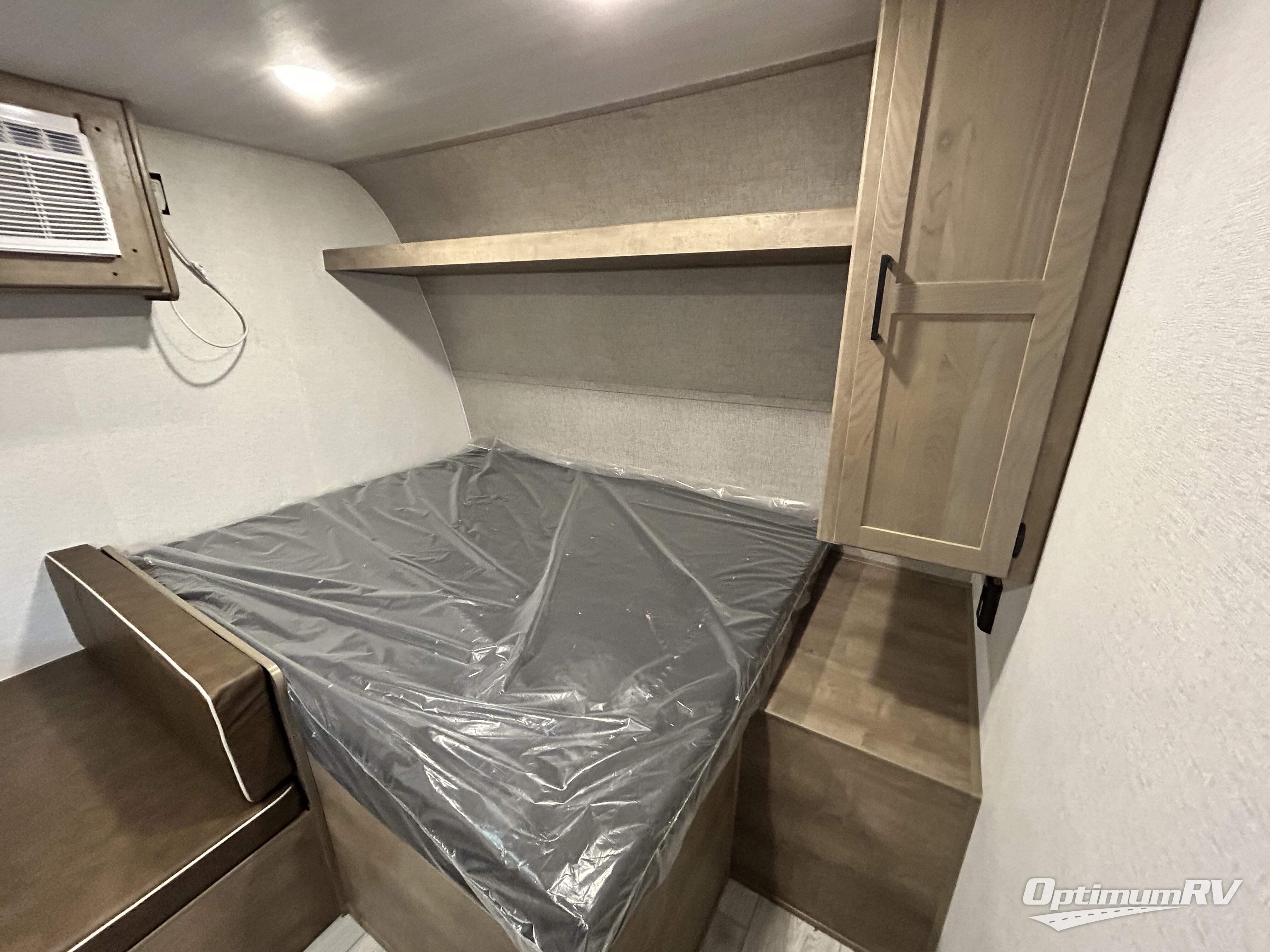Get ready for outdoor fun with your favorite people when you have this trailer in tow! Once at your campsite, you can easily setup the 10' power awning, grab your camping chairs from the pass-thru storage, and relax or start playing. The cook will love the galley kitchen with the two burner cooktop, plus a refrigerator for cold items. If you like, you can eat inside at the booth dinette which doubles as sleeping space, and of course the kids will love the bunk beds next to the full bathroom. And you will sleep soundly on the front queen bed.