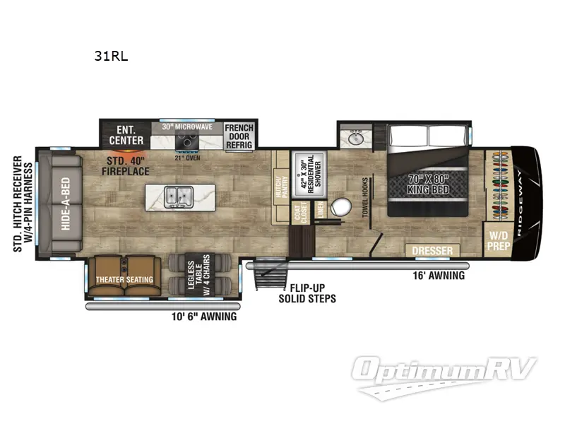 KZ Ridgeway fifth wheel 31RL highlights: