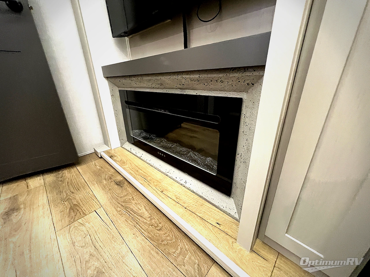Camping with friends and family just got a whole lot easier in this spacious fifth wheel! Up front, you'll find a private bedroom with a king bed slide out, a dresser, a wardrobe with a shelf, plus washer and dryer prep if you plan to go full-time. The master bedroom towards the back includes a queen bed slide out, a wardrobe and a dresser, plus a full rear bath with a unique rear entry door. There is also a loft bed with a ladder above this rear room for added sleeping or storage space! Everyone can meet in the middle kitchen and living room that includes a table and chairs, theater seat, kitchen island, and an entertainment center with a fireplace. There is even a pantry, hutch, and 3-door refrigerator for ample storage. You don't want to miss out on this fifth wheel!
