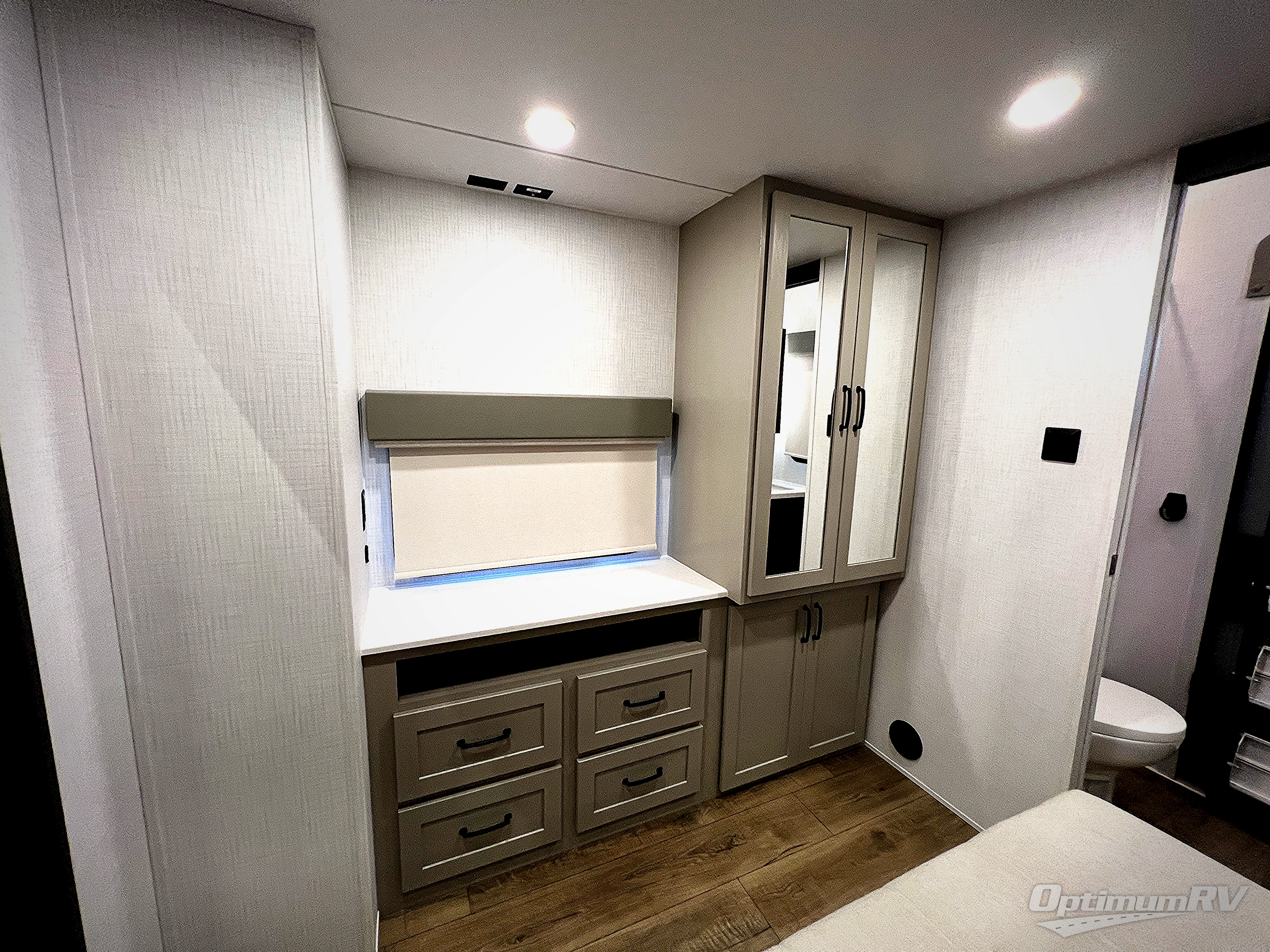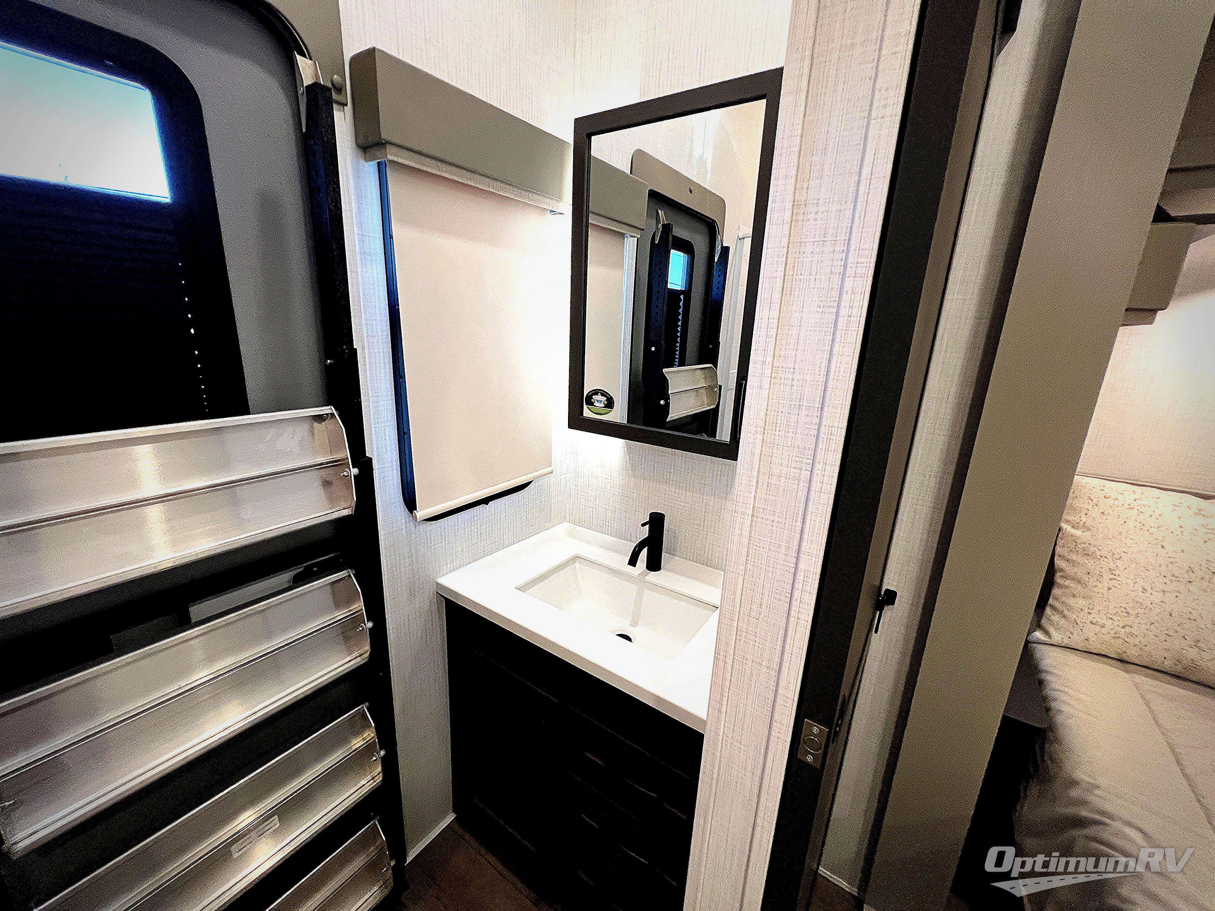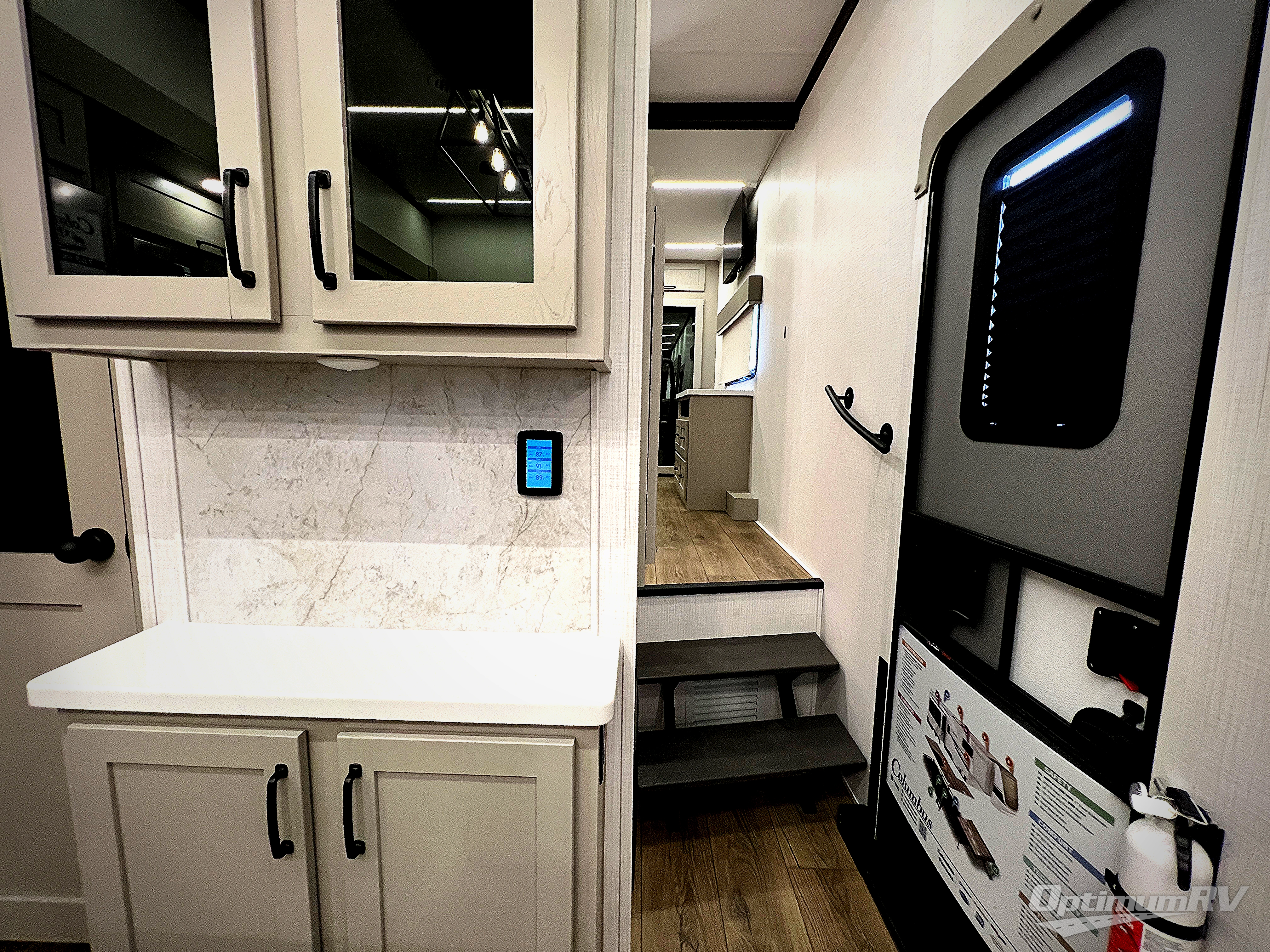 Experience a different camping life with residential furnishings and high end features in each one of these Palomino Columbus fifth wheels! The 101" wide body lets you walk around more throughout and the all-welded aluminum-frame superstructure has a snap-in ceiling molding to hold up through every adventure. Don't leave any of your gear behind either when you can easily store it in the climate controlled drop frame storage area. On the exterior, you'll find a heated utility convenience center, an outside sprayer to keep the dirt outside where it belongs, and magnetic compartment door holds to keep them from falling on you as you grab your items. Plus, there are some modern features that will really seal the deal like the Wi-Fi Booster with 4G LTE capability prep, upgraded true solid-surface countertops, power theater seating with USB charging, and a 260W solar panel for off-grid camping!