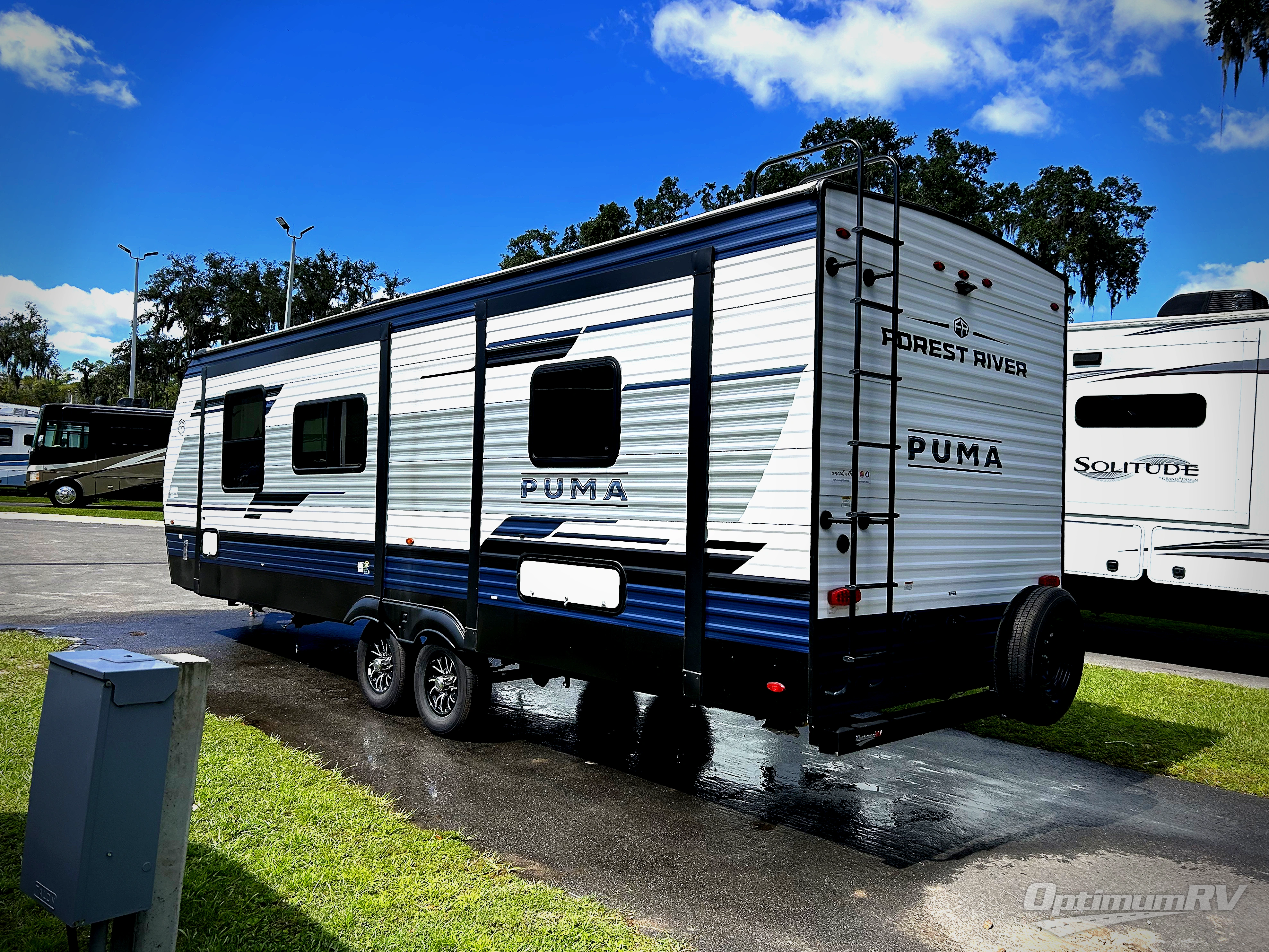 If you're looking for family-fun adventures then you need one of these Palomino Puma fifth wheels or travel trailers! They are built rugged, easy to tow, and jam packed with features. The Darco wrapped underbelly will protect your units vitals and the AlphaPly roofing membrane covers it. They also have new aluminum wheels and a powder coated steel I-beam frame. Inside, the Congoleum linoleum will be easy to keep clean, and the night roller shades will provide privacy when it's time to turn in. You'll also enjoy an electric awning with an LED light strip plus an AM/FM/Bluetooth stereo and two outside speakers to keep the party going!