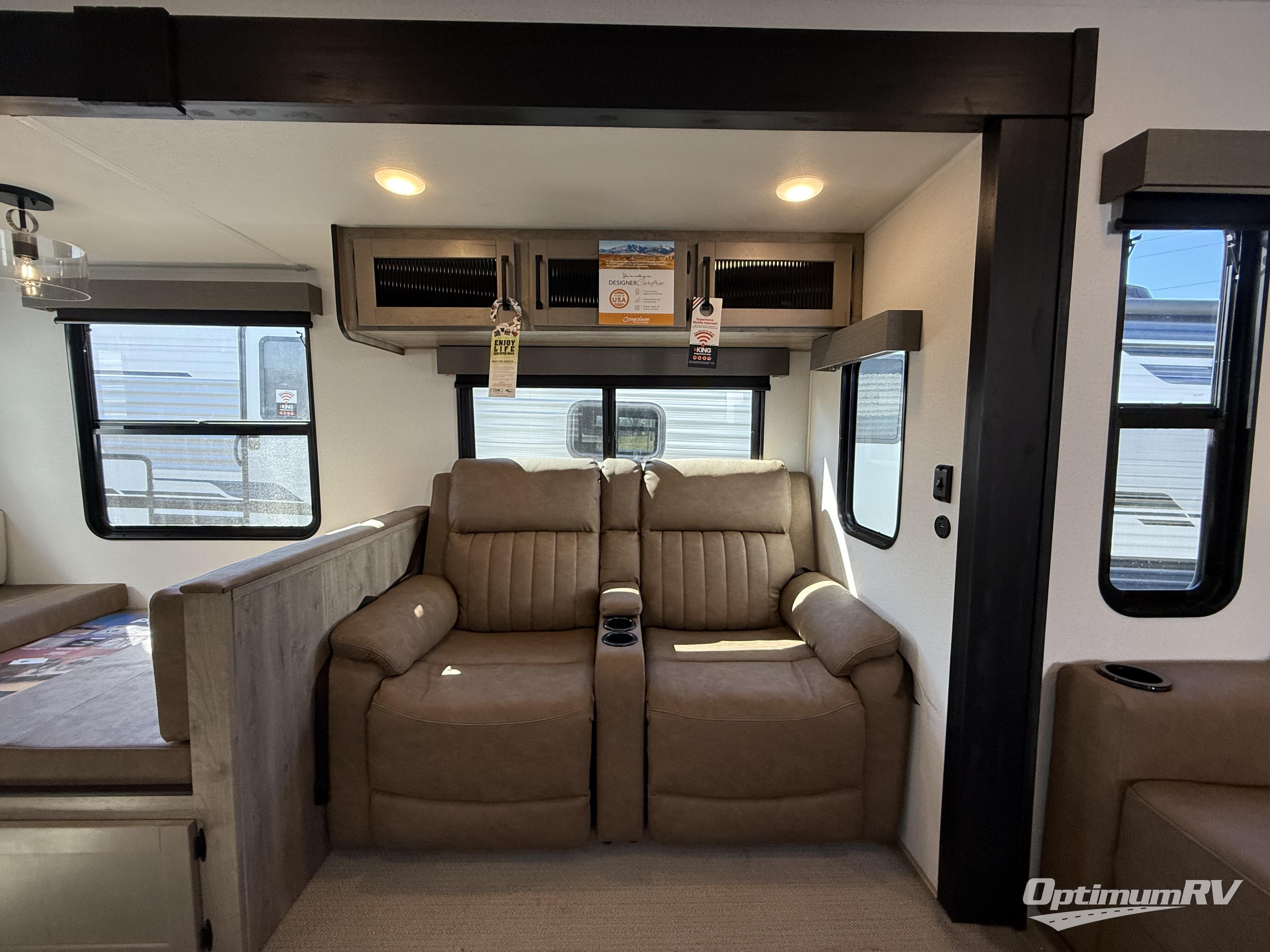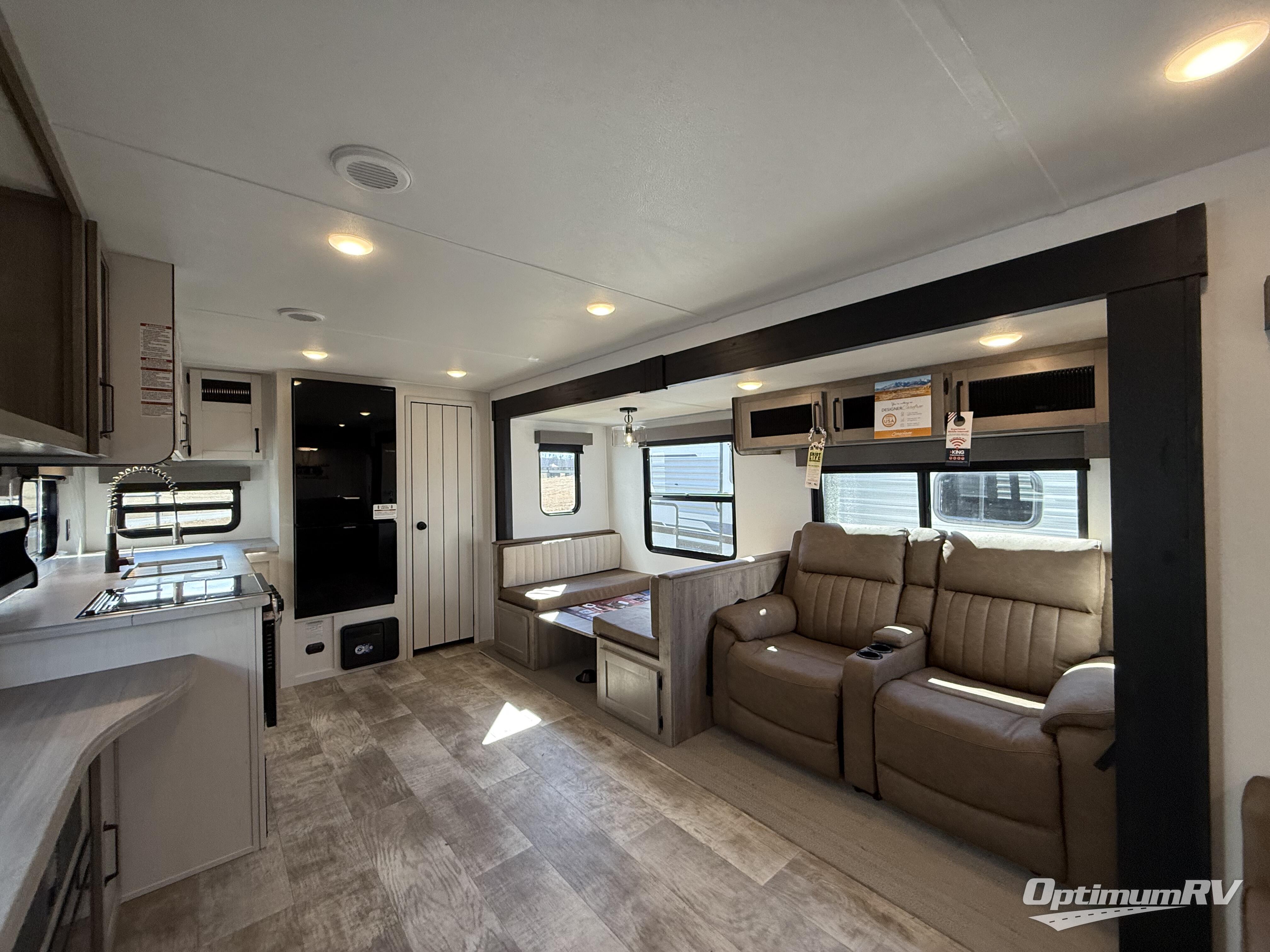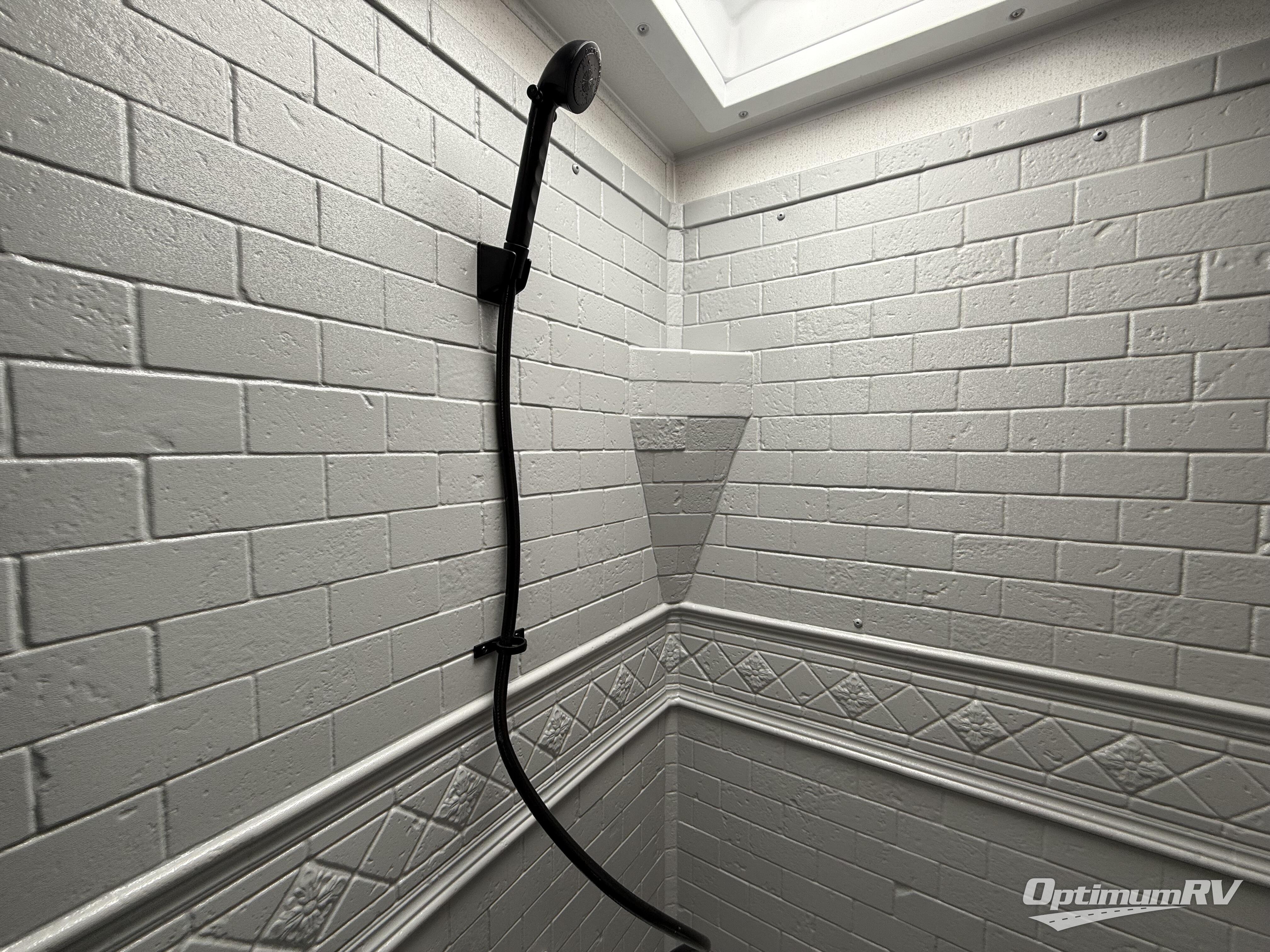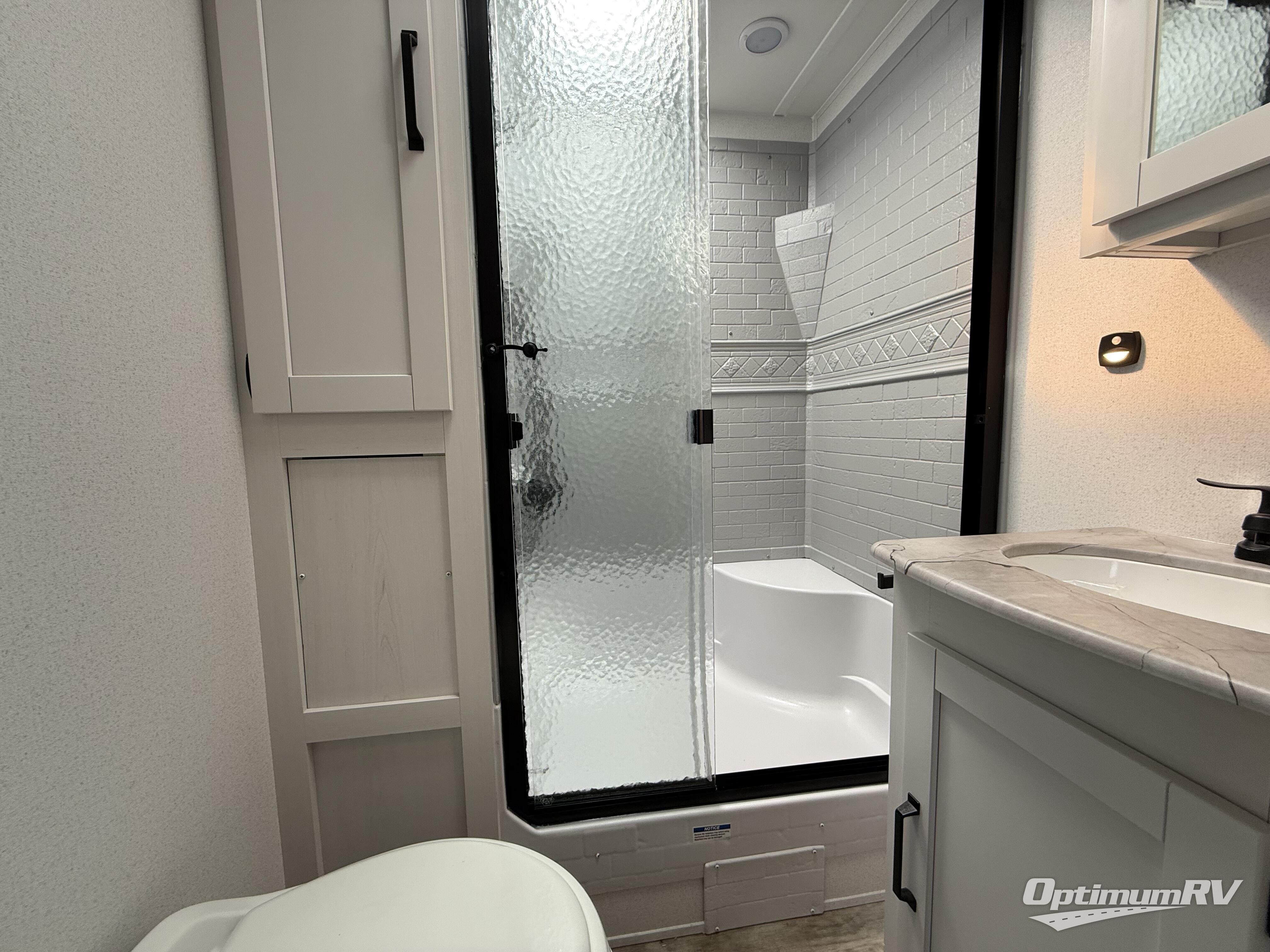 You won't want to camp any other way once you step inside this travel trailer! The rear kitchen has a stainless steel oven and range to prepare your best meals, a 12V refrigerator to keep your perishables fresh, and a walk-in pantry for your canned goods and snacks for movie night. After a fun day at the beach, you can play a card game at the booth dinette, relax in either one of the two recliners and sofa, or rinse the sand out of your hair in the 32" x 40" shower with a seat in the full bathroom. There is also a front private bedroom with a queen bed slide across from a dresser and a front closet with another closet with washer and dryer prep.