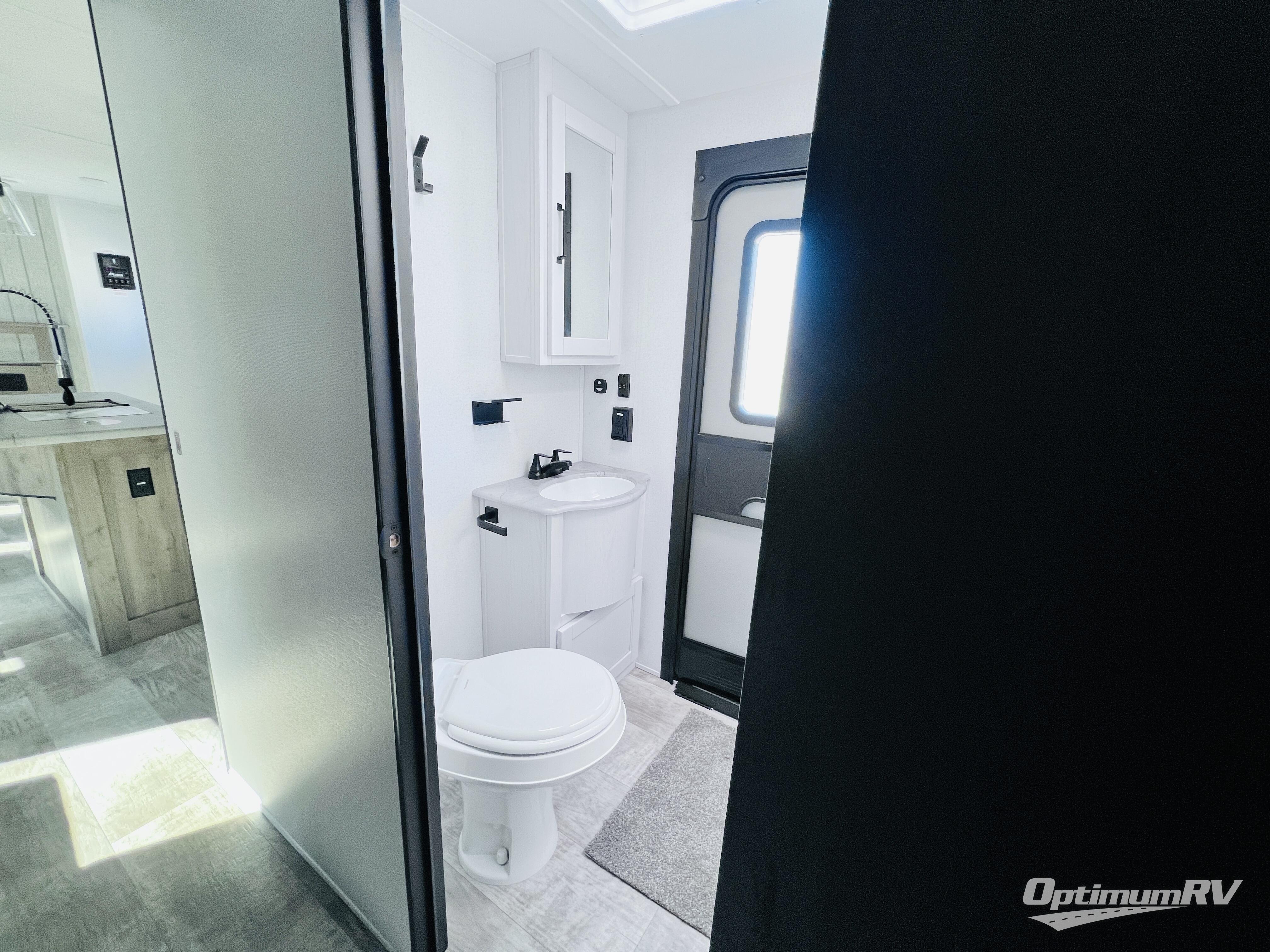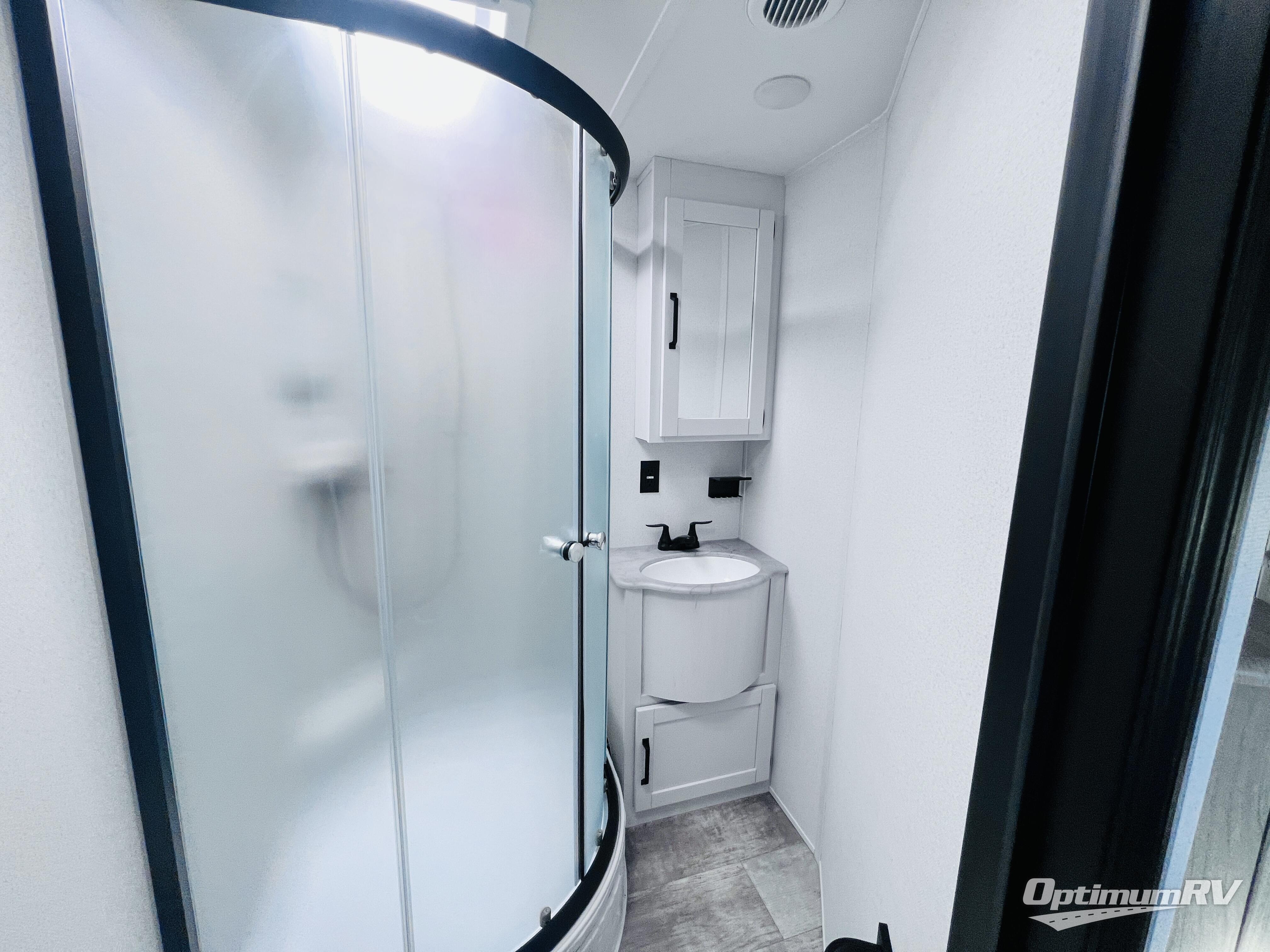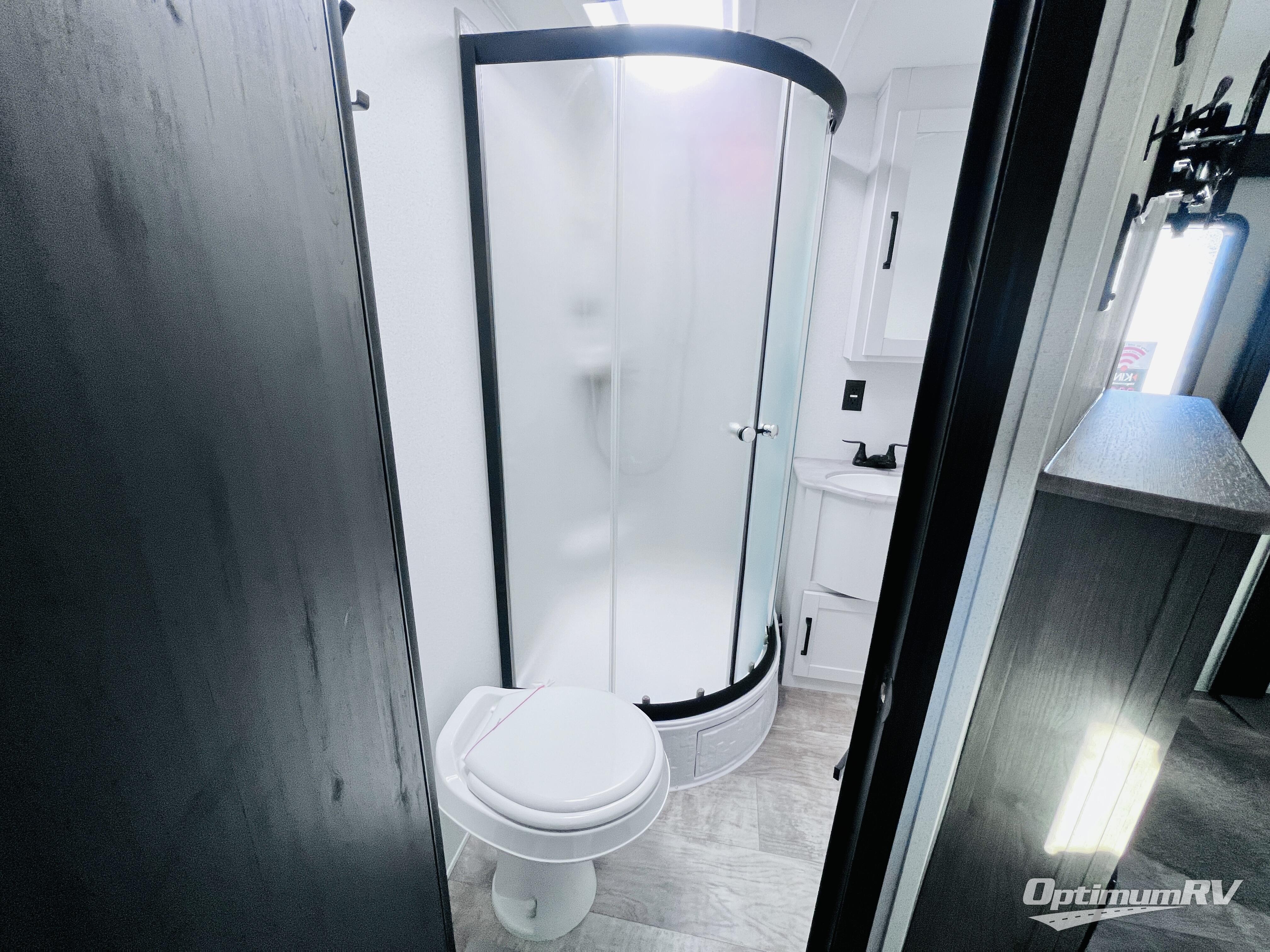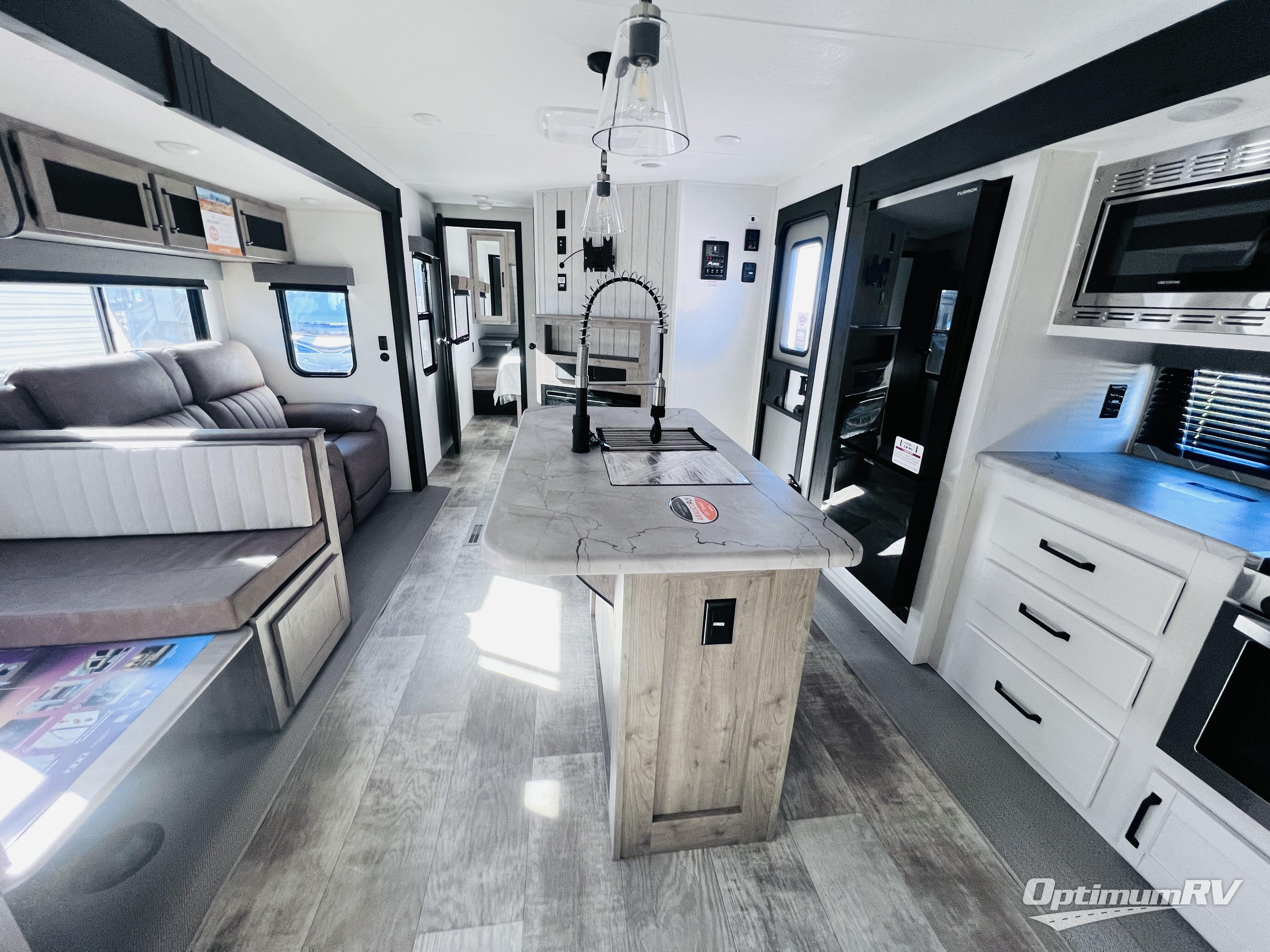 With two full bathrooms, it's a clean decision to take this travel trailer on your next family vacation! Start each morning feeling recharged after sleeping on the queen bed in the front private bedroom or in the rear private bunkhouse with an angled top bunk above a 32" x 69" double bunk bed and a 32" x 69" bunk above a 68" sofa slide. The bunkhouse also has a full bathroom with a 24" x 40" tub and one of the dual entry doors to the unit. You can relax on the sofa while enjoying the entertainment center and eat your meals prepared with the kitchen island at the booth dinette. You can also choose the outside kitchen option for more convenience!