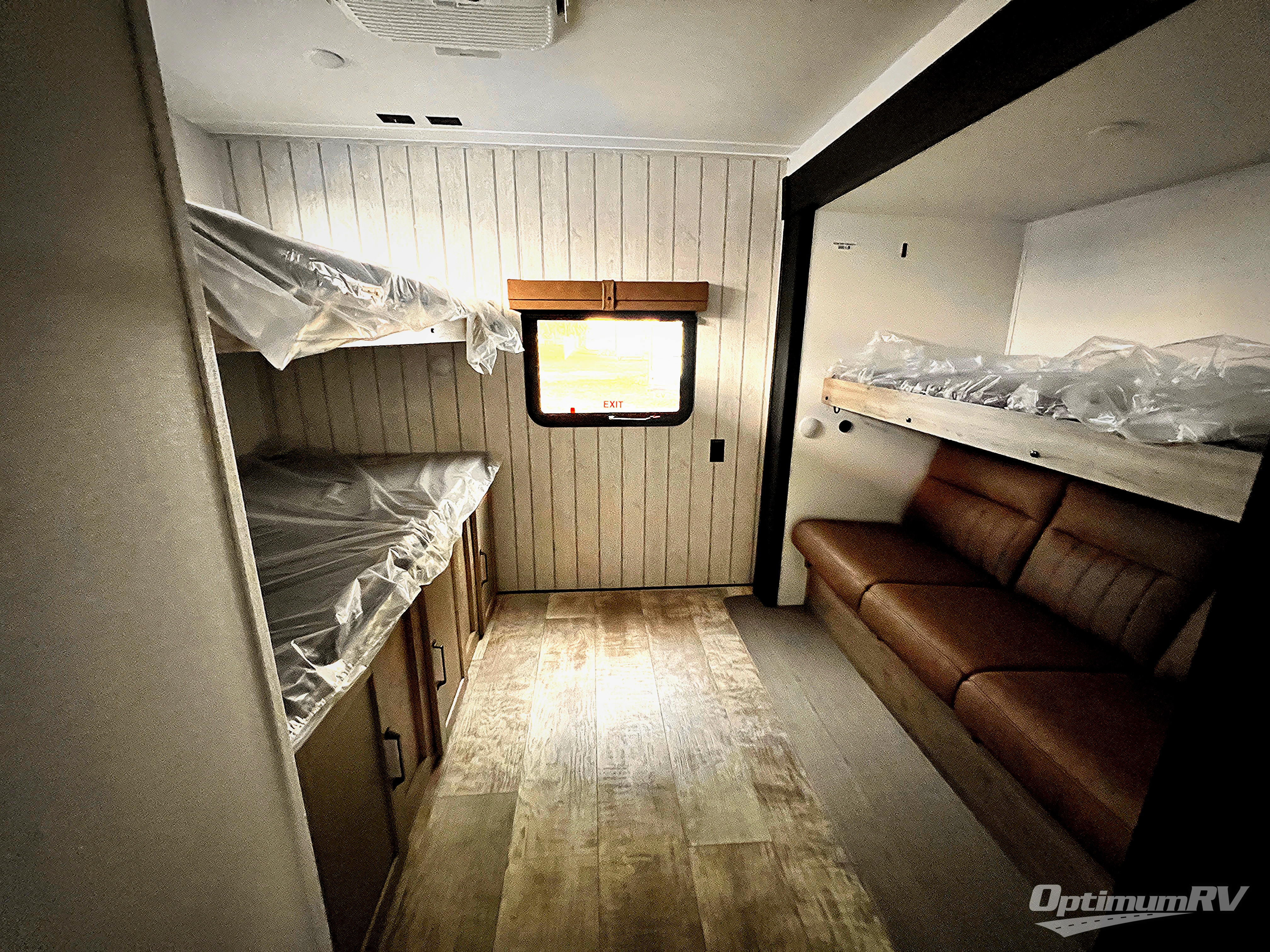 With dual entry doors and a bath and a half, you will have the ultimate in convenience with this travel trailer! The bedroom also has a front closet to keep your clothes looking their best and a queen bed slide for you to sleep your best. Everyone can freshen up in the full bathroom with the 34" x 34" radius shower and fill their bellies with scrambled eggs cooked with the stainless steel oven and range. Enjoy your meals, play games, and even sleep at the booth dinette or relax on the sofa while watching a movie with the entertainment center and fireplace. And your guests will love the rear private bunkhouse with three bunks, a jiffy sofa, and a slide out for more space! This model also includes an optional outside mini kitchen with a griddle!