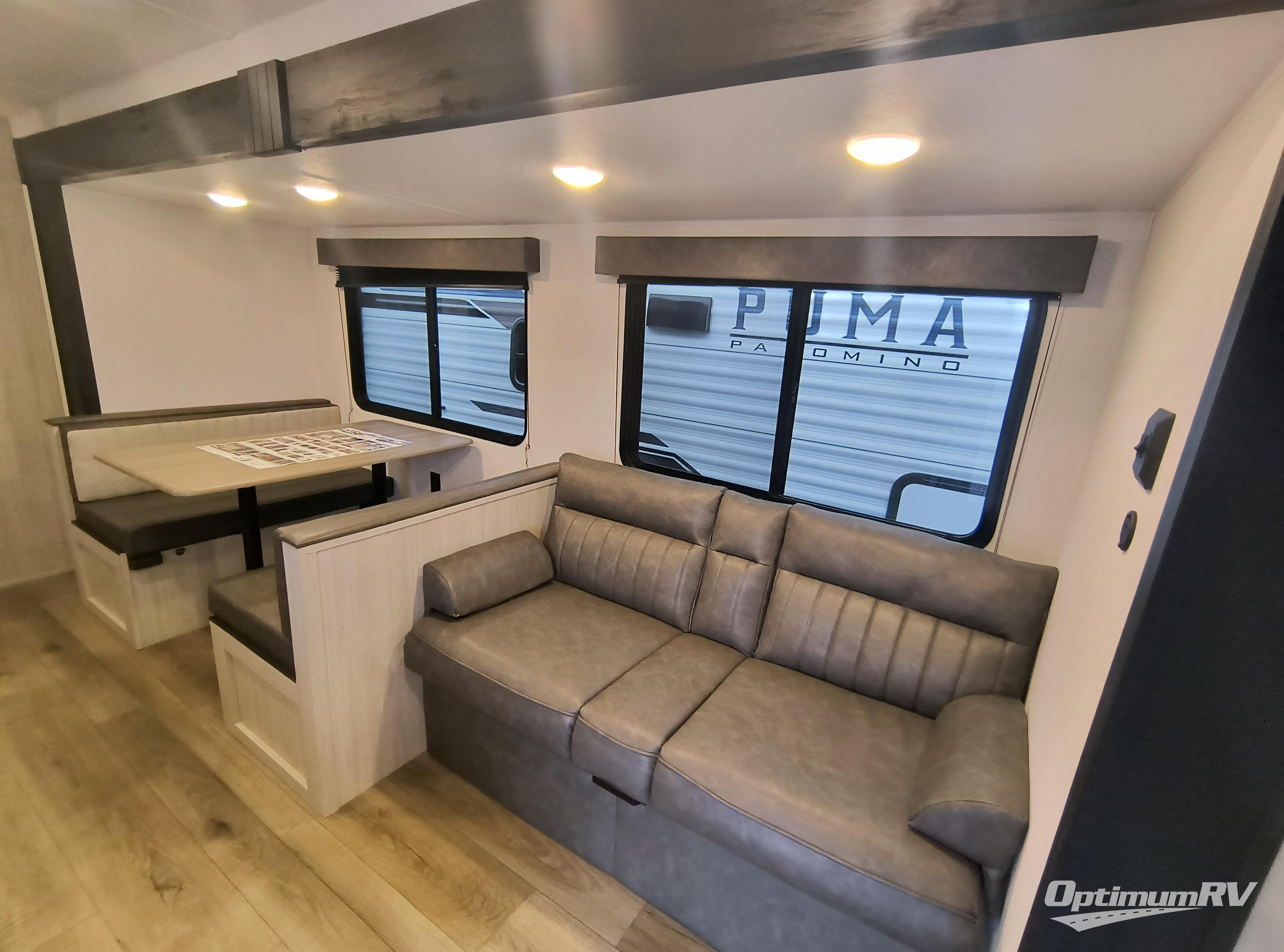 The Puma Camping Edition by Palomino offer an affordable travel trailer for rookie campers or seasoned RVers! They are built with 5/8" tongue and groove plywood flooring and a front diamond plate for added protection. There are also exterior clamp style door latches, back up camera prep, and 20 lb. LP bottles. Head inside to find Thermofoil countertops with a smooth drop edge, bedroom USB ports and outlets, and a GE appliance and kitchen package.