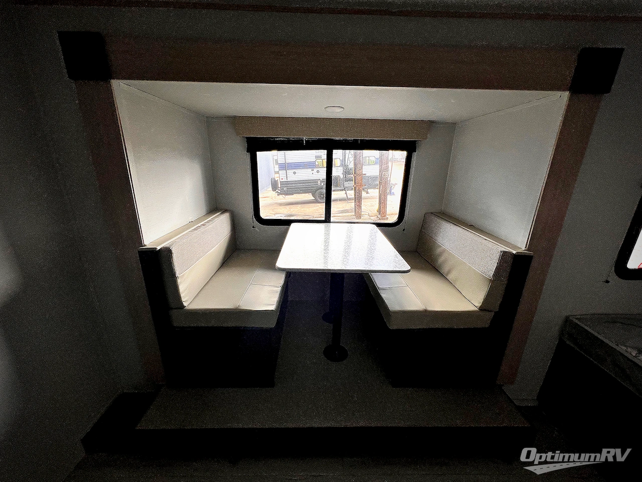 Go hiking, biking or exploring for new places when you have this trailer at the campgrounds! You will find sleeping for five between the rear corner bunk beds, and the front bed with a nightstand for your cellphones and such. And one more can sleep on the dinette slide. You'll be delighted with the kitchen skylight that gives natural lighting as you cook a meal. The LED-lit power awning provides a protected outdoor living area as you visit or make s'mores around the campfire.