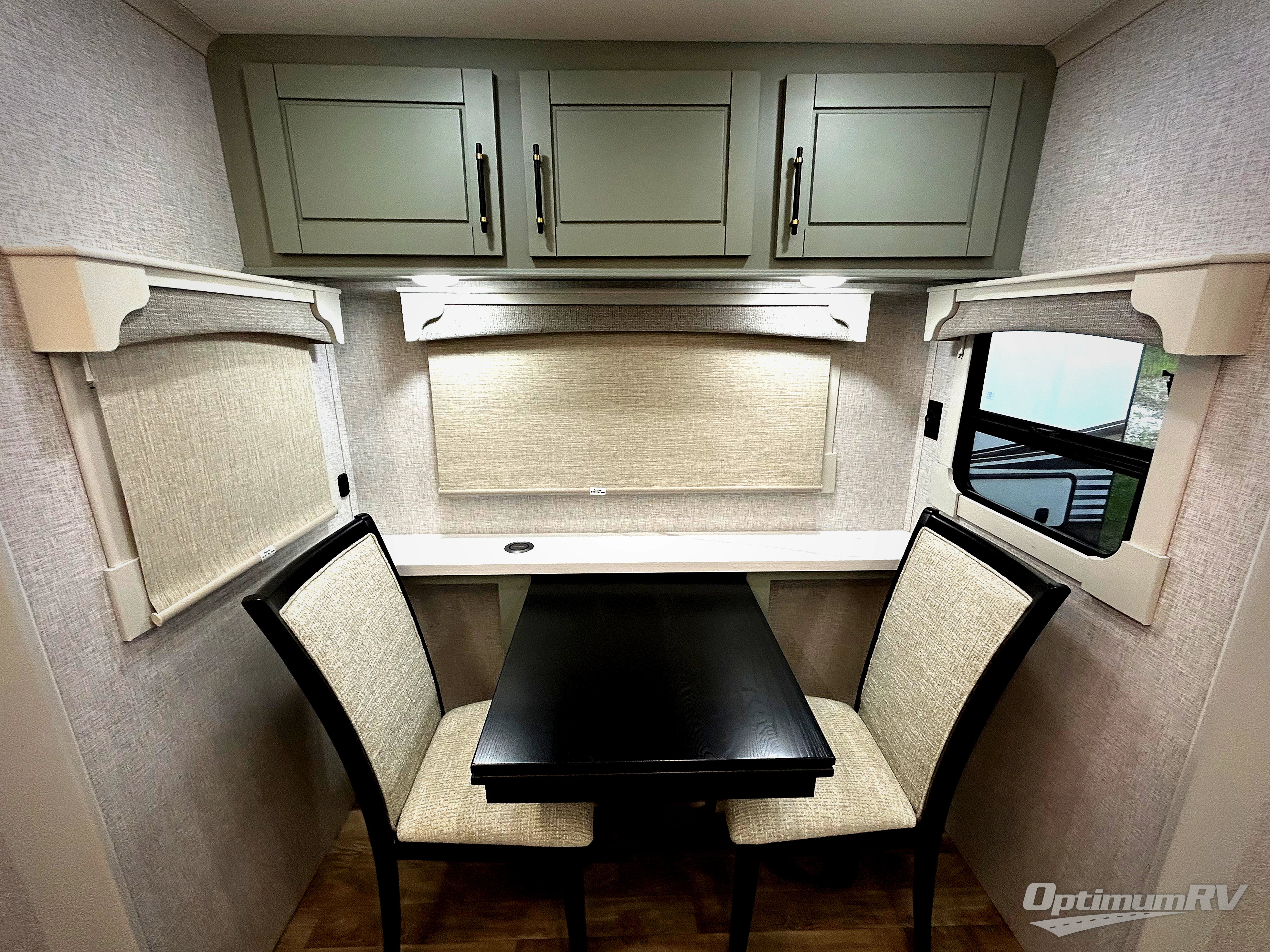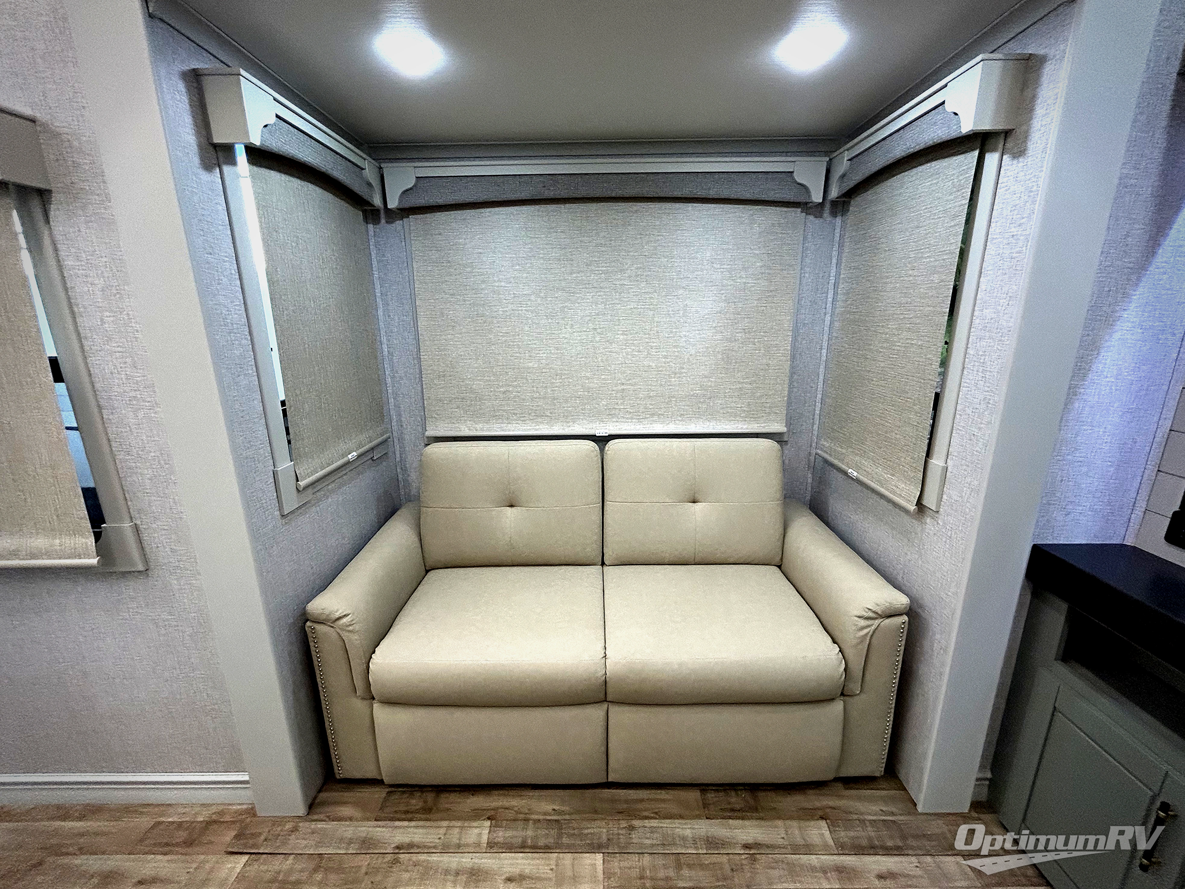 You are going to wish you found the Redwood fifth wheels sooner! With all of the residential comfort and modern luxury, you will be impressed. The Williamsburg Furniture Collection includes two premium dinette chairs, a buffet-style adjustable dinette with leaf extension, a residential-style sofa, and powered theater seating. The luxury further extends to the bedroom where you will find a gel-foam king bed with tilt and C-PAP shelves on both sides of the bed. The straight roof line gives a luxury profile, and there are preparations for a wireless backup camera as well as solar power. The seamless residential insulated heat ducts will efficiently heat your unit, and there is an exterior radio in the fully finished and heated pass-through with slat board storage.