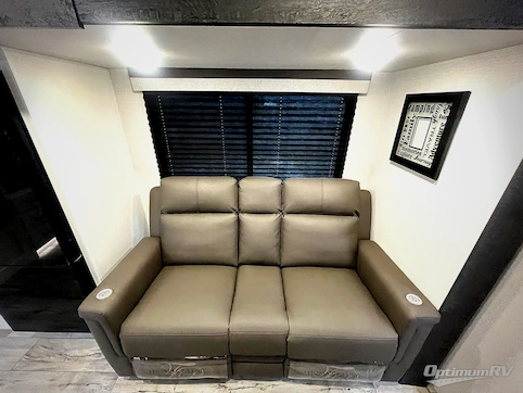 You'll love every minute spent in this dual entry travel trailer. The front master bedroom includes one of these doors, along with a Sleep Tight queen bed, dual wardrobes, and easy access into the walk-thru bath. Your crew can relax on the theater seating within the large slide out, play a game at the Sit N' Slide table with flipside reversible cushions, or dine at the bartop with stools. There is also a rear kitchen with ample counter space. Head outdoors to enjoy the 20' power awning in your camp chairs!