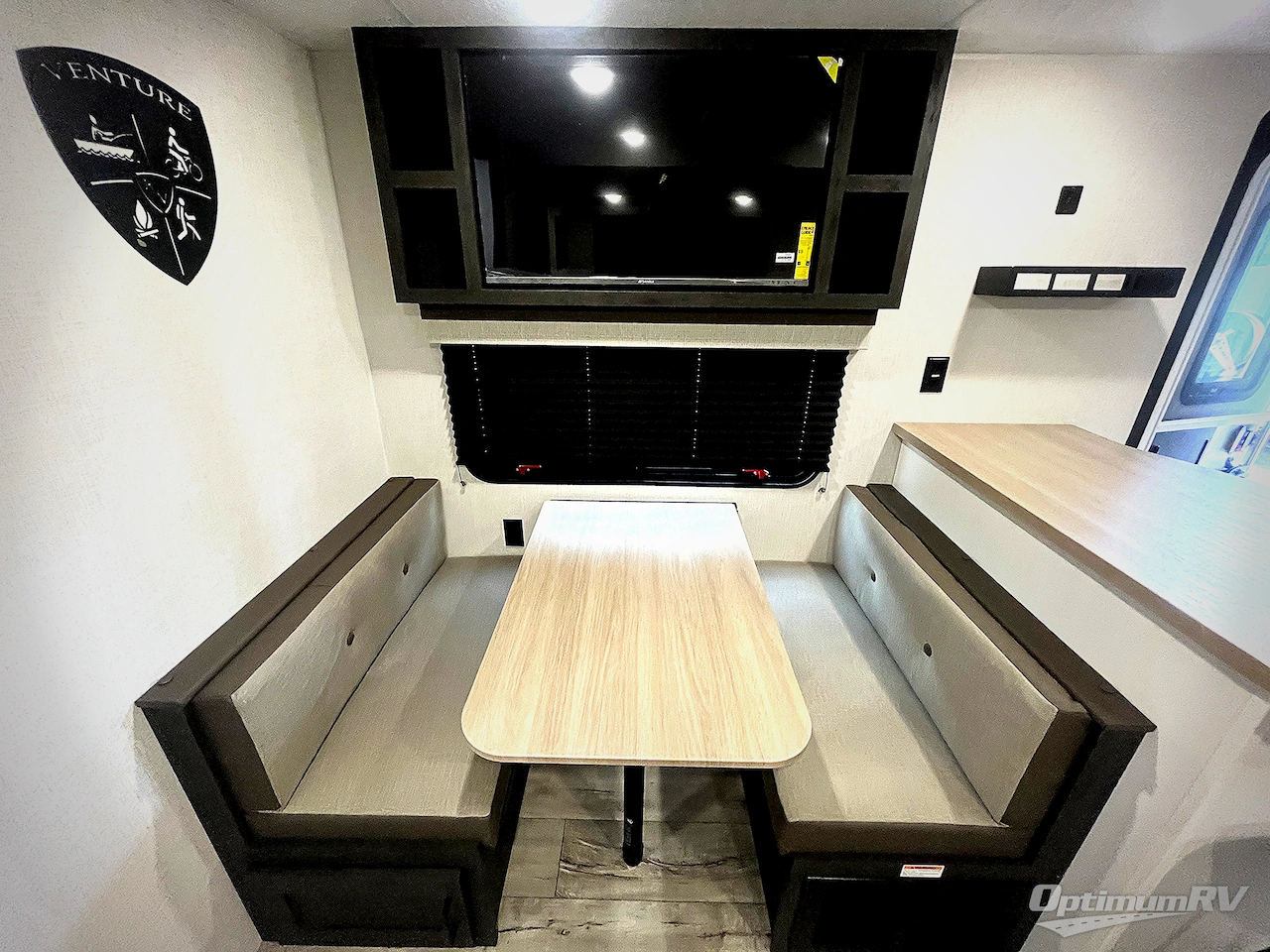 With any Sienna travel trailer by Venture RV, you will enjoy a lightweight unit, convenient amenities, and a durable construction that includes a BAL NXG-bolted frame. There is also a heated and enclosed one-piece underbelly, residential fiberglass insulation, and a reflective PVC roof membrane within the Weather-Shield Package to help extend your camping season. Outside, the BAL 5.0 power stabilizer jacks and power tongue jack will have you set up in no-time, and the Venture RV bottle opener/dog tie down will make it easy to bring your furry friends along. Head inside to enjoy the modern farmhouse design, along with Beauflor throughout with no carpet, custom backsplash, large underbed storage, and a bath skylight to name a few comforts!