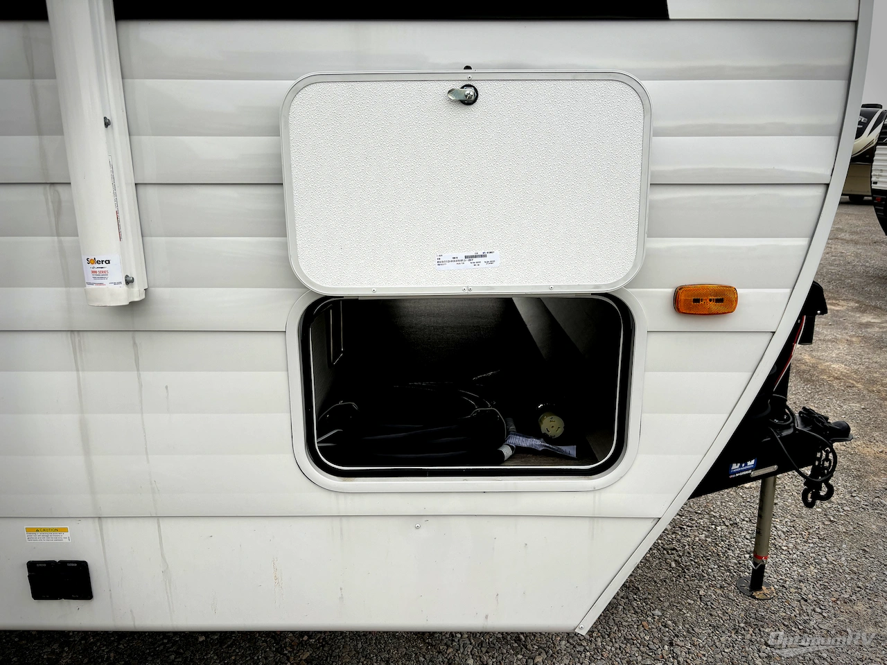 With any Sienna travel trailer by Venture RV, you will enjoy a lightweight unit, convenient amenities, and a durable construction that includes a BAL NXG-bolted frame. There is also a heated and enclosed one-piece underbelly, residential fiberglass insulation, and a reflective PVC roof membrane within the Weather-Shield Package to help extend your camping season. Outside, the BAL 5.0 power stabilizer jacks and power tongue jack will have you set up in no-time, and the Venture RV bottle opener/dog tie down will make it easy to bring your furry friends along. Head inside to enjoy the modern farmhouse design, along with Beauflor throughout with no carpet, custom backsplash, large underbed storage, and a bath skylight to name a few comforts!