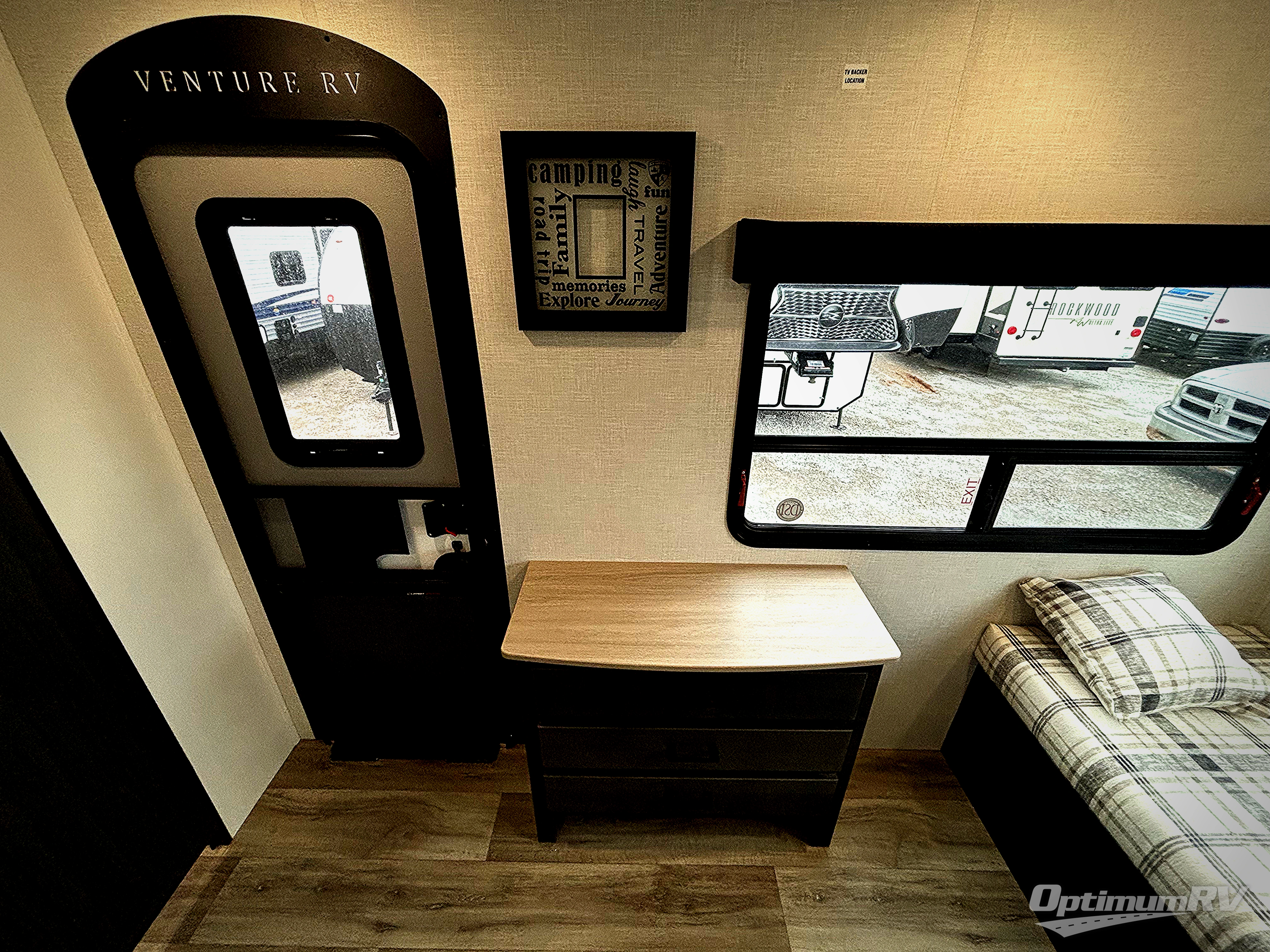 Every Venture RV SportTrek lightweight travel trailer is constructed to offer peace of mind and the comforts of home! Their purposeful residential kitchens are packed with handy features like a Furrion oven and three burner cooktop, a large stainless steel sink with a cover and dish drying rack, plus a 12V refrigerator. You will find plenty of storage throughout, including Safe-Tek hidden storage with a charging center and StorMore nightstands on either side of the bed behind the full-length closets. And the magnetic slam-latch baggage doors and spacious pass-through storage area will hold your outdoor gear in place. They even come with a hot and cold exterior shower and SporTrek's Weather Shield which includes a forced air heated and enclosed underbelly, high output A/C ducting, and more features that will let you extend your camping season. You will also love the new residential upgraded furniture, Serta memory foam mattress, barn style passage doors, and many more comforts!