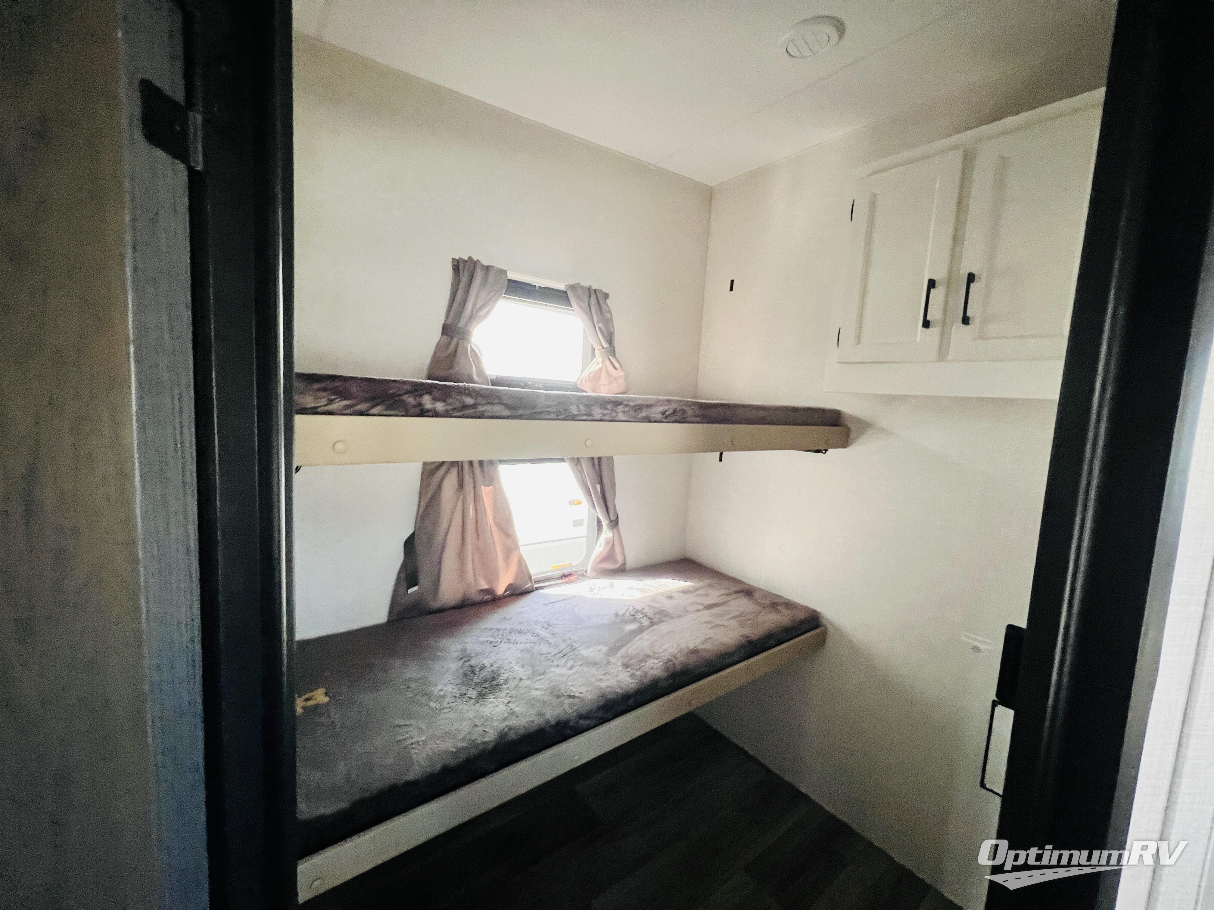 Luxury is found throughout this fifth wheel, so come take a look! The combined living area and kitchen is made spacious by the dual opposing slides, and your crew will enjoy relaxing on the theater seating, rear tri-fold sofa, plus the table with chairs. The chef of your group will love having extra counter space provided by the kitchen island, and the dishwasher is icing on top! Head to the middle bunkhouse which could also be used as an office or den, making it the perfect flex room. There is also washer and dryer prep here for the option to add these appliances. And you're sure to enjoy your own space in the front bedroom. Here, you'll find a front window seat with closets on either side, a dresser, and even more storage space!