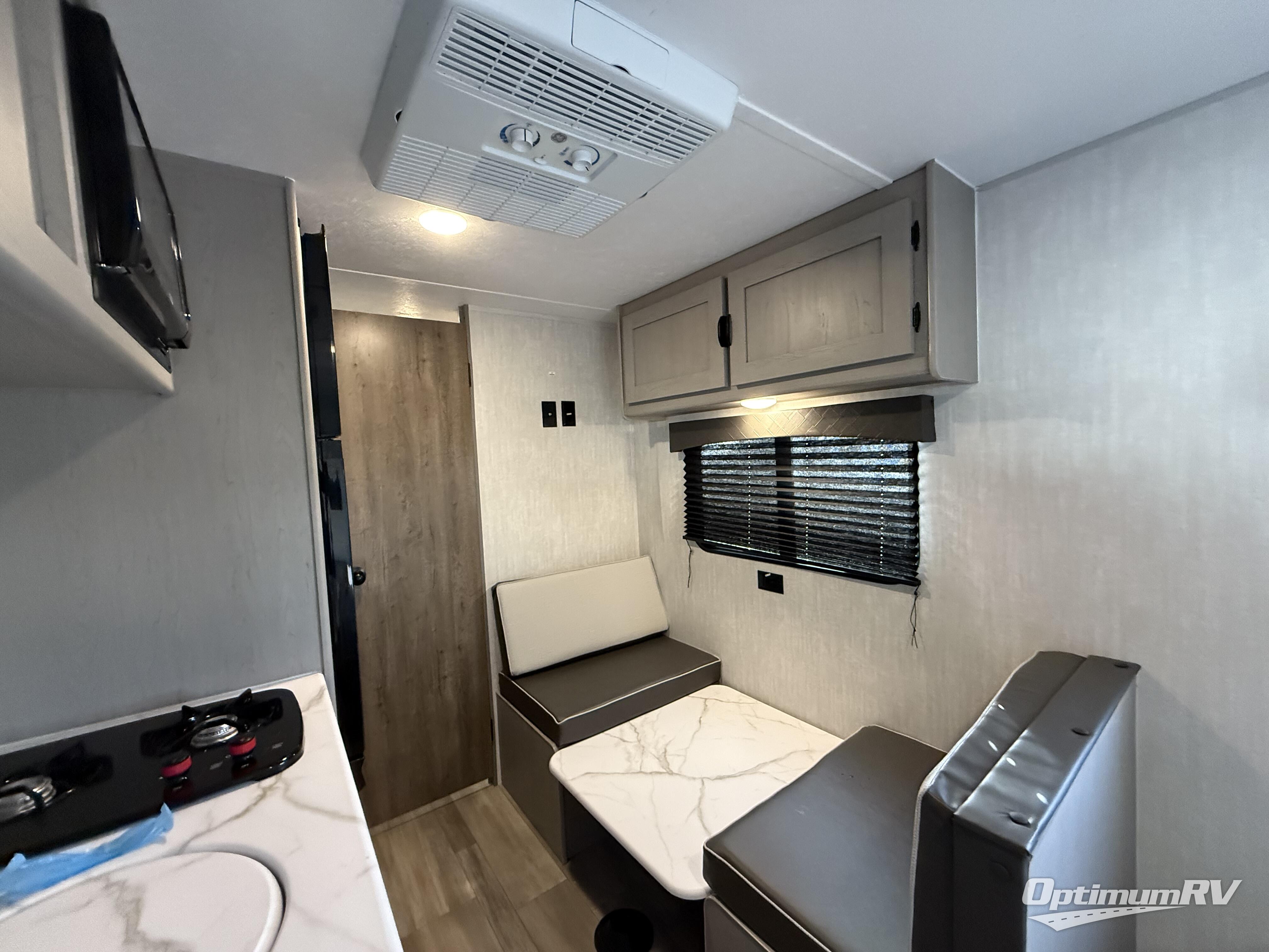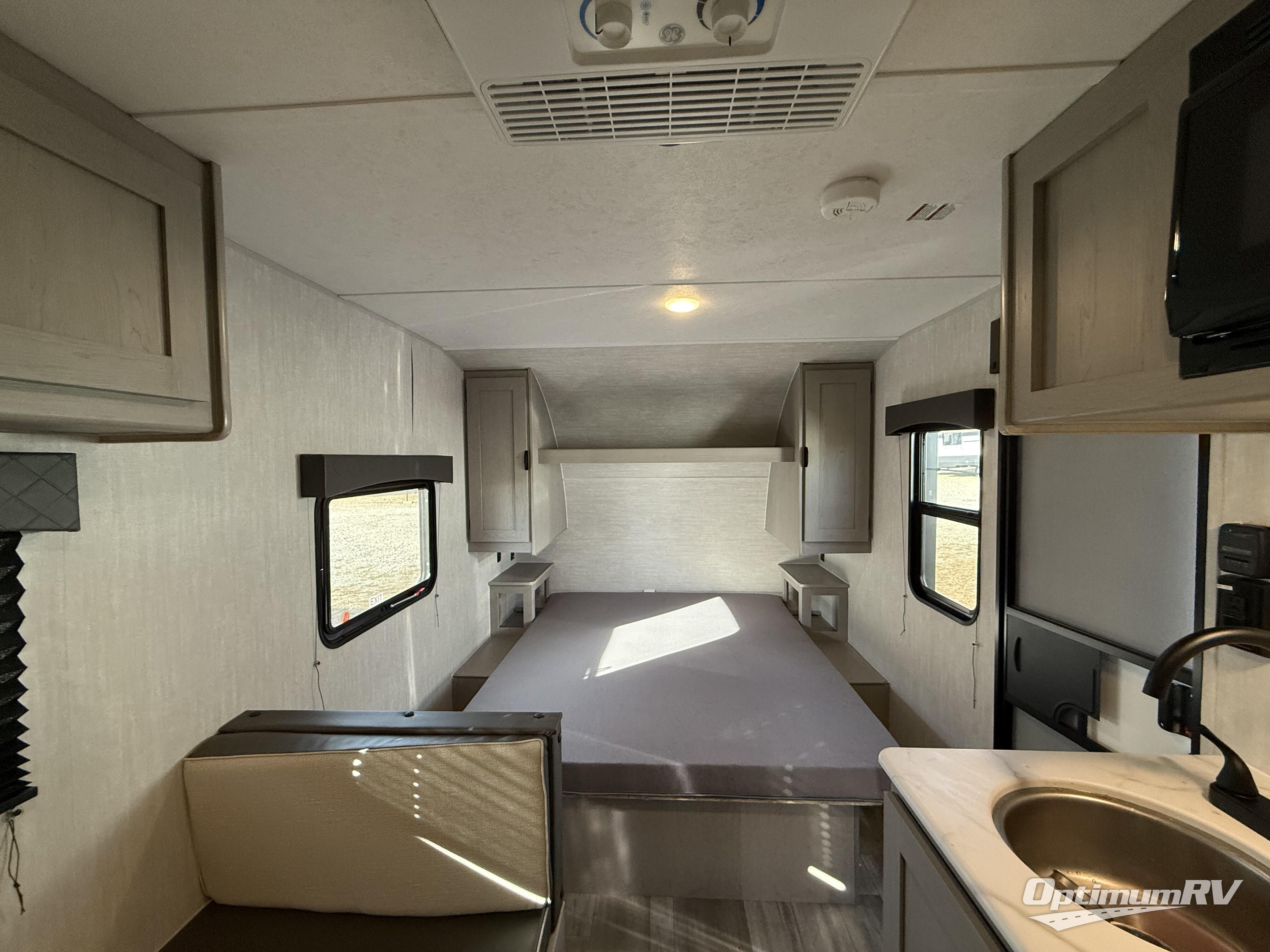 This Viking 3K Series is a cozy couples trailer or one perfect for a small family of three or four featuring a queen bed up front with overhead storage. The booth dinette also features additional storage and can be converted to sleeping space for one or two more depending on size. You will have a two burner cooktop and sink with cover to provide a bit more counter space when the sink is not being used. A rear full bath including a 24" x 36" shower, toilet, and vanity with a sink, as well as an overhead medicine cabinet for your toothbrushes and other toiletries. On the outside, a 10' power patio awning will provide added protection from the sun and rain giving you added living space outside to enjoy with camp chairs. And, a front pass-through compartment for your outdoor camping gear, plus so much more!