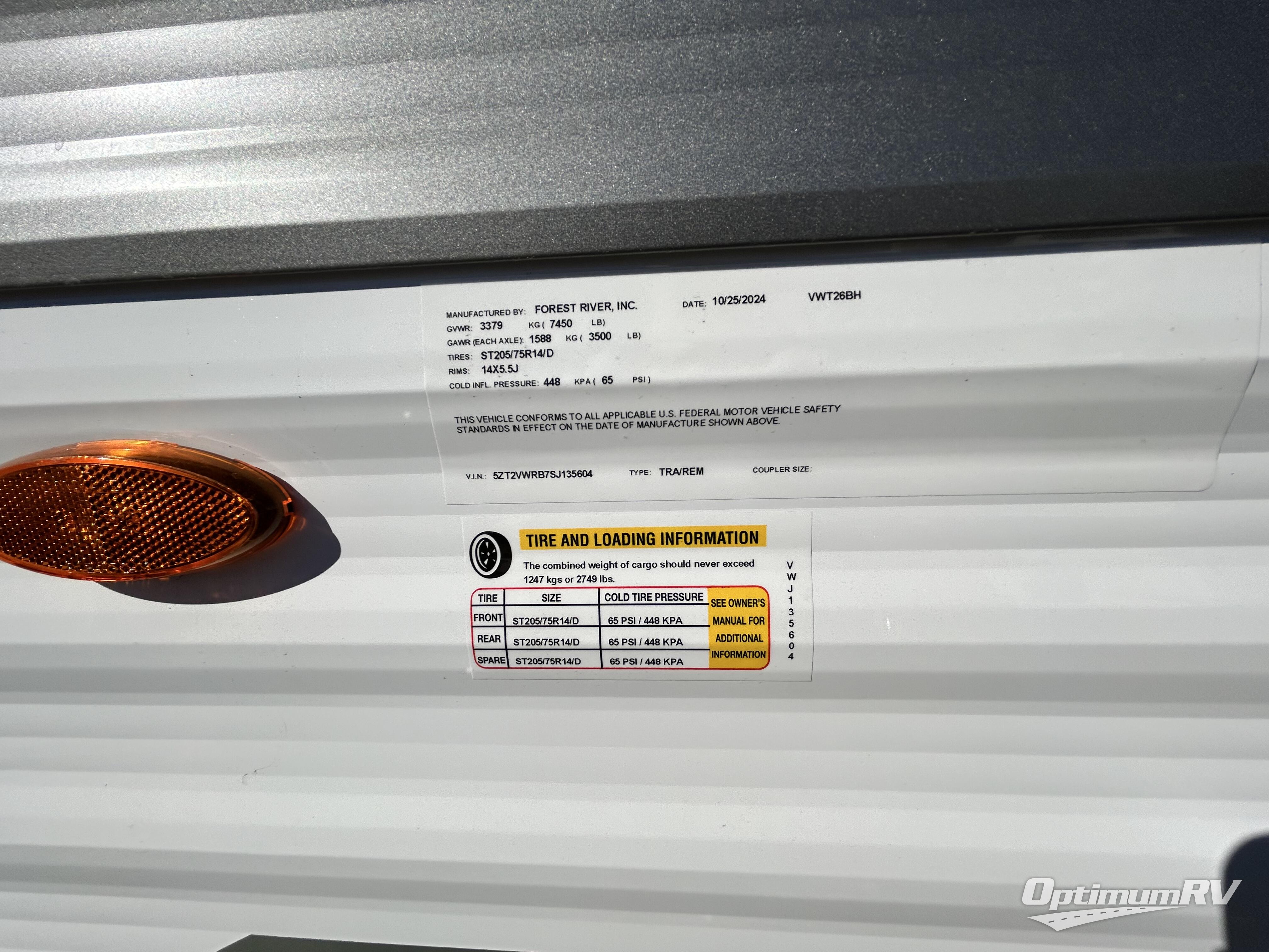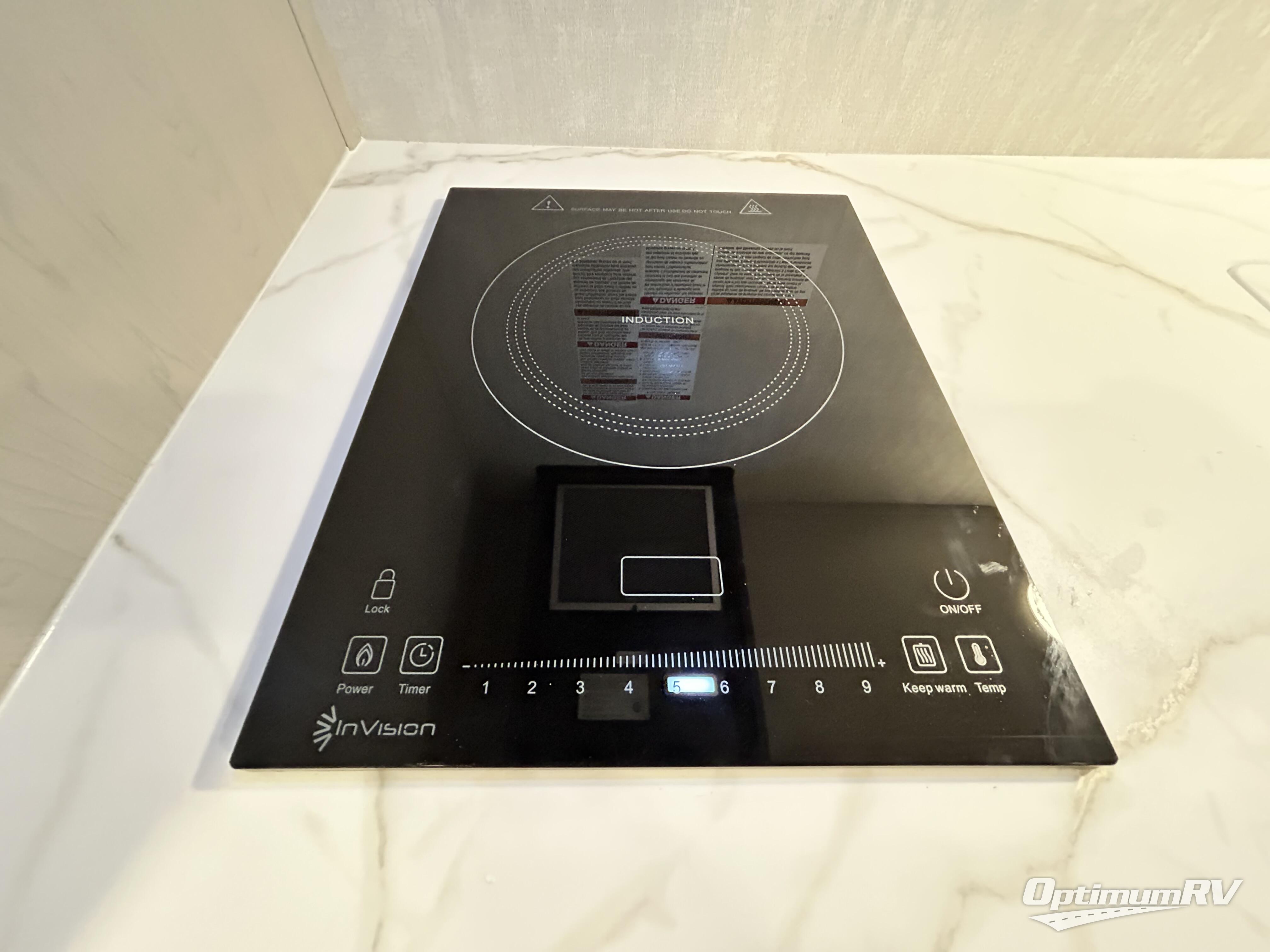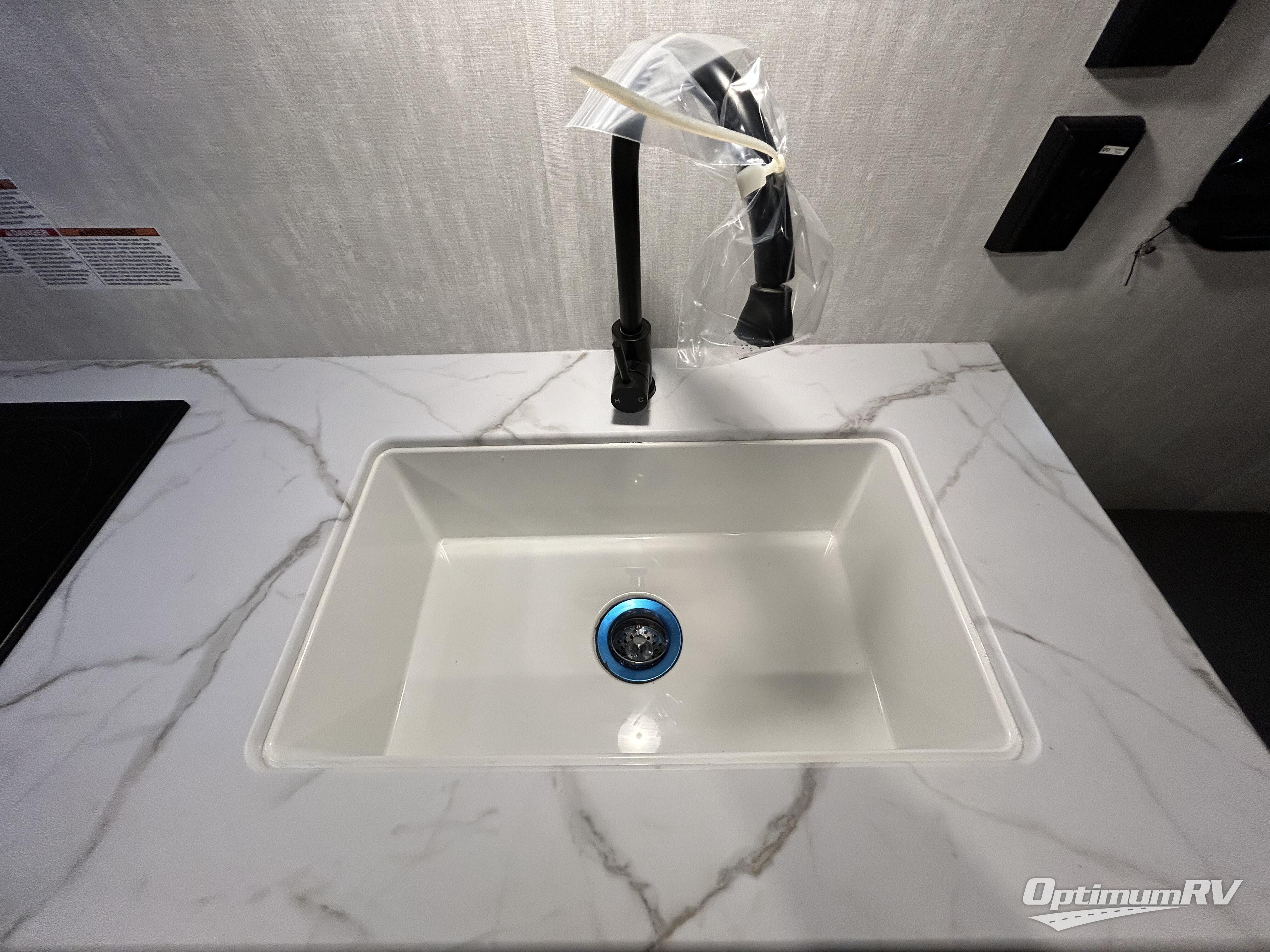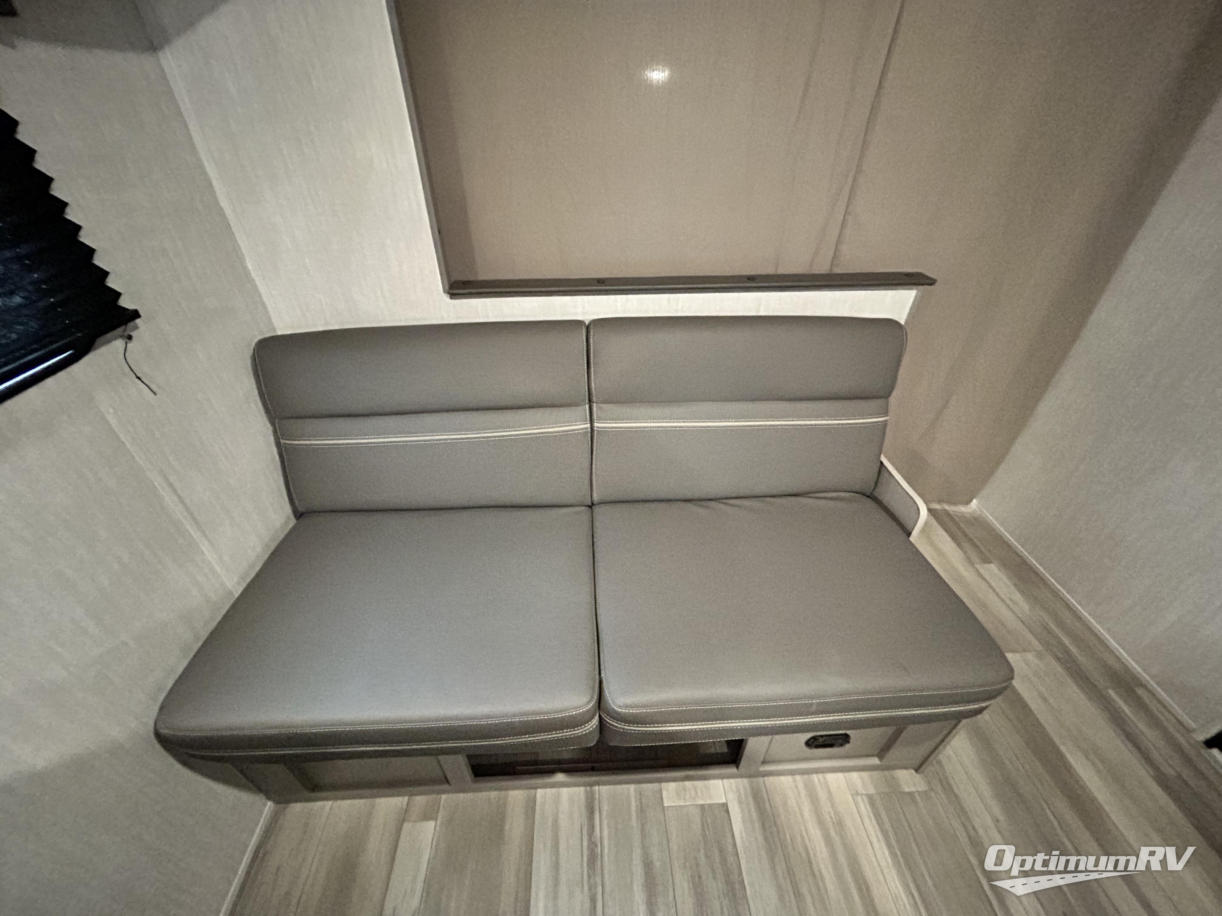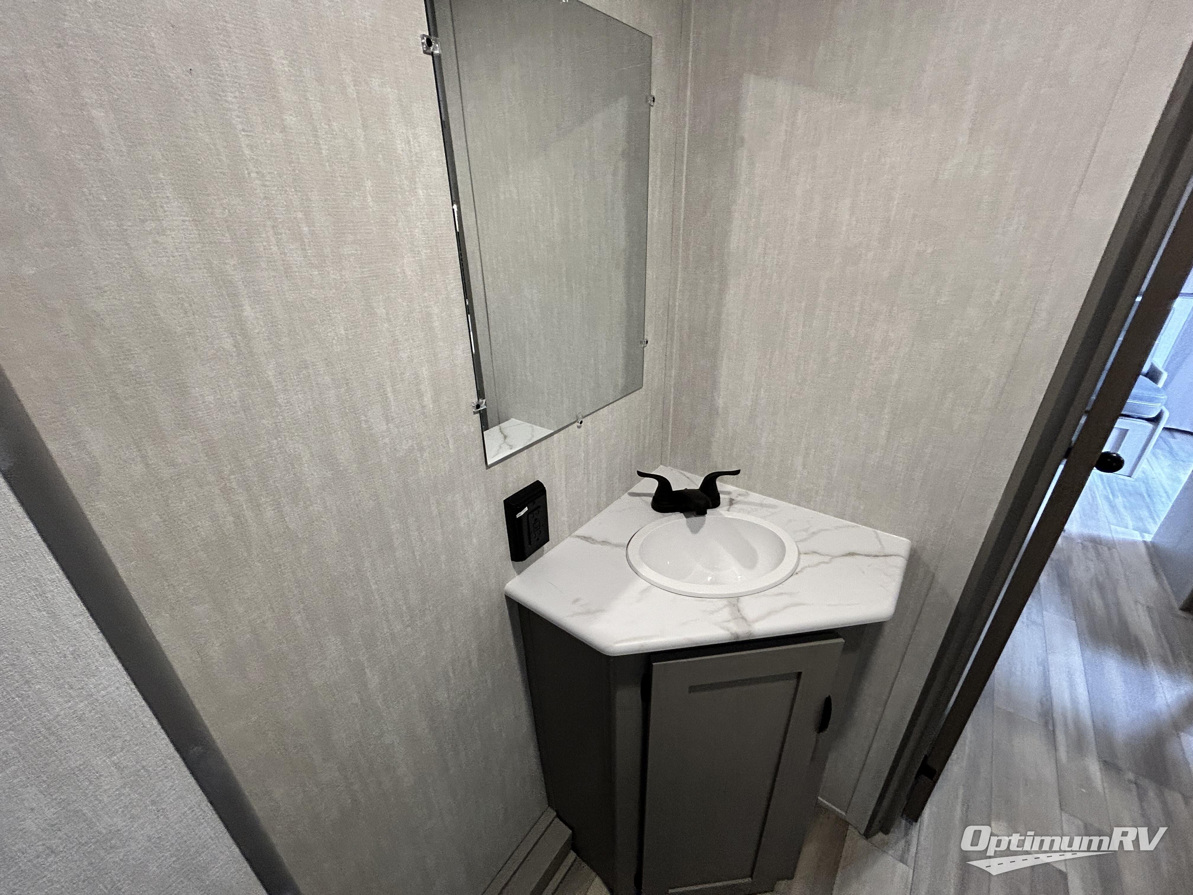 Bring the whole family with you in this travel trailer! The kiddos can sleep on the rear corner set of double bed bunks. The opposite rear corner features a full bath including a 24" x 36" shower, linen cabinet, toilet, and vanity with medicine cabinet overhead. In the main living space, you will find plenty of seating with a booth dinette and jackknife sofa which can also transform into an extra sleeping space if needed. Everyone's bellies will stay full with the two burner cooktop, 11 cu. ft. 12-volt refrigerator, and microwave which you can use to pop a bag of popcorn for movie night. You will enjoy the front bedroom for a bit of privacy including a queen bed and large overhead cabinet for your things. On the outside, a large front pass-through for lawn chairs and camp gear. There is more storage beneath the double bed bunks in back and a nice 10' awning to provide protection from the elements when outdoors.