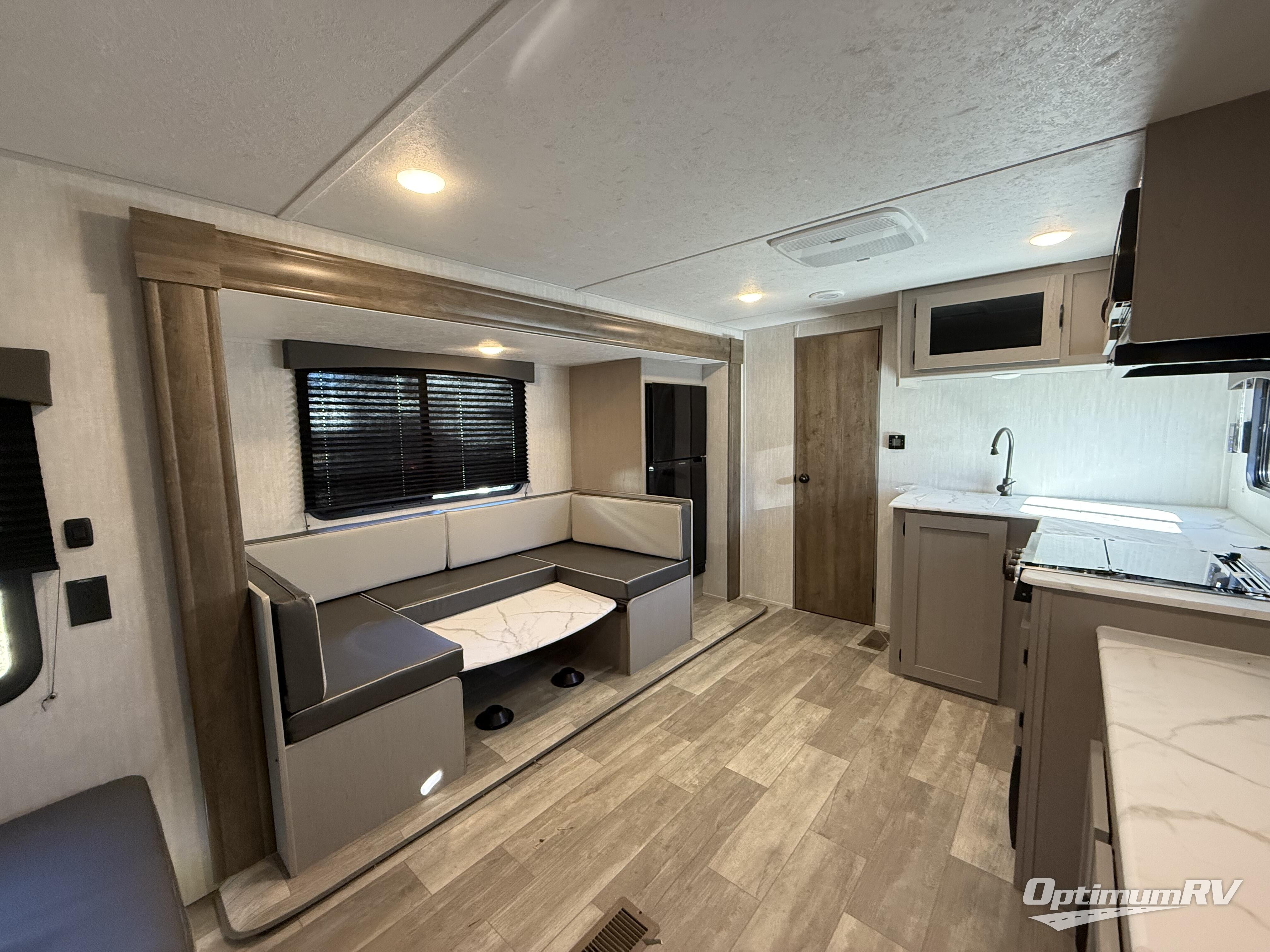 Start planning your trip and loading up your clothes for a fun family or friend get-away with this trailer in tow! The kids or your guests will pack the wardrobe by the double bunk beds in the rear which include steps leading up to them, and you can place your clothes in the wardrobes in the front private bedroom which includes the second entry/exit door for convenience. The main kitchen and living area is spacious with a slide out, and everyone can gather around the U-shaped dinette and sofa to visit, eat, and plan their day. The outside camp kitchen allows you to make meals easily outdoors, and you'll find a three burner range with an oven indoors to bake a casserole for dinner. The exterior also offers an outside shower to wash off the dirt from the day, and a 16' power awning to relax in the shade!