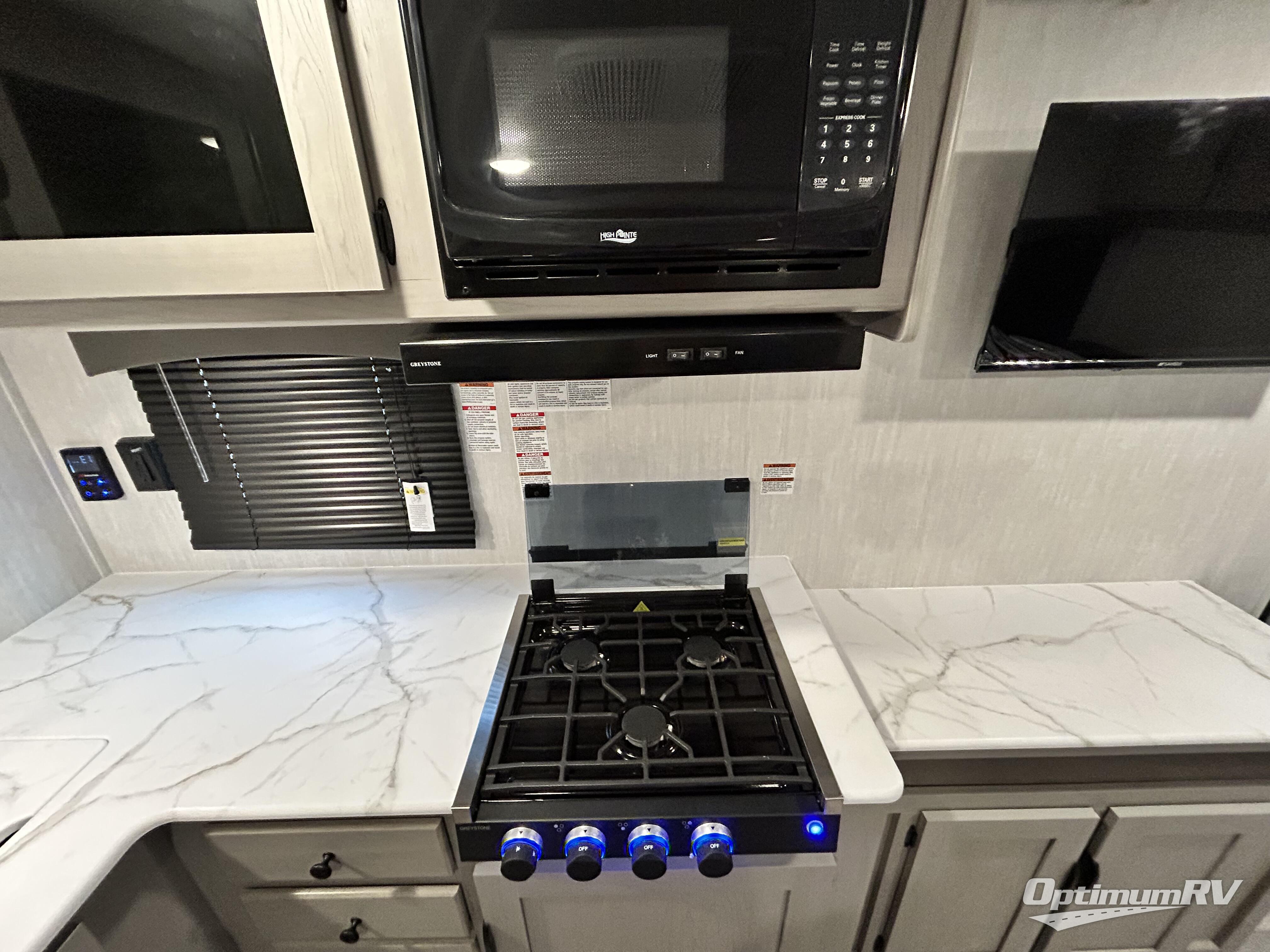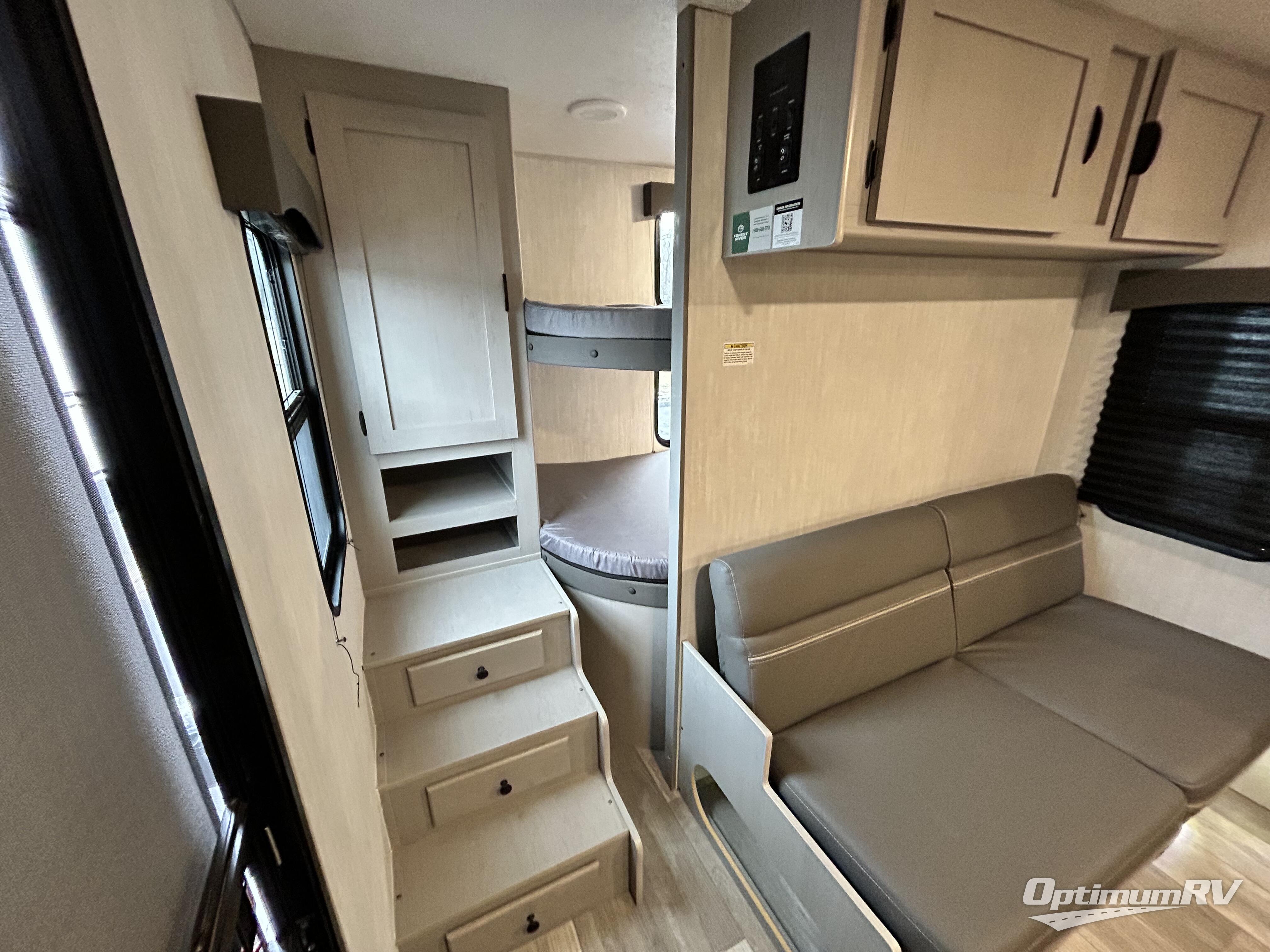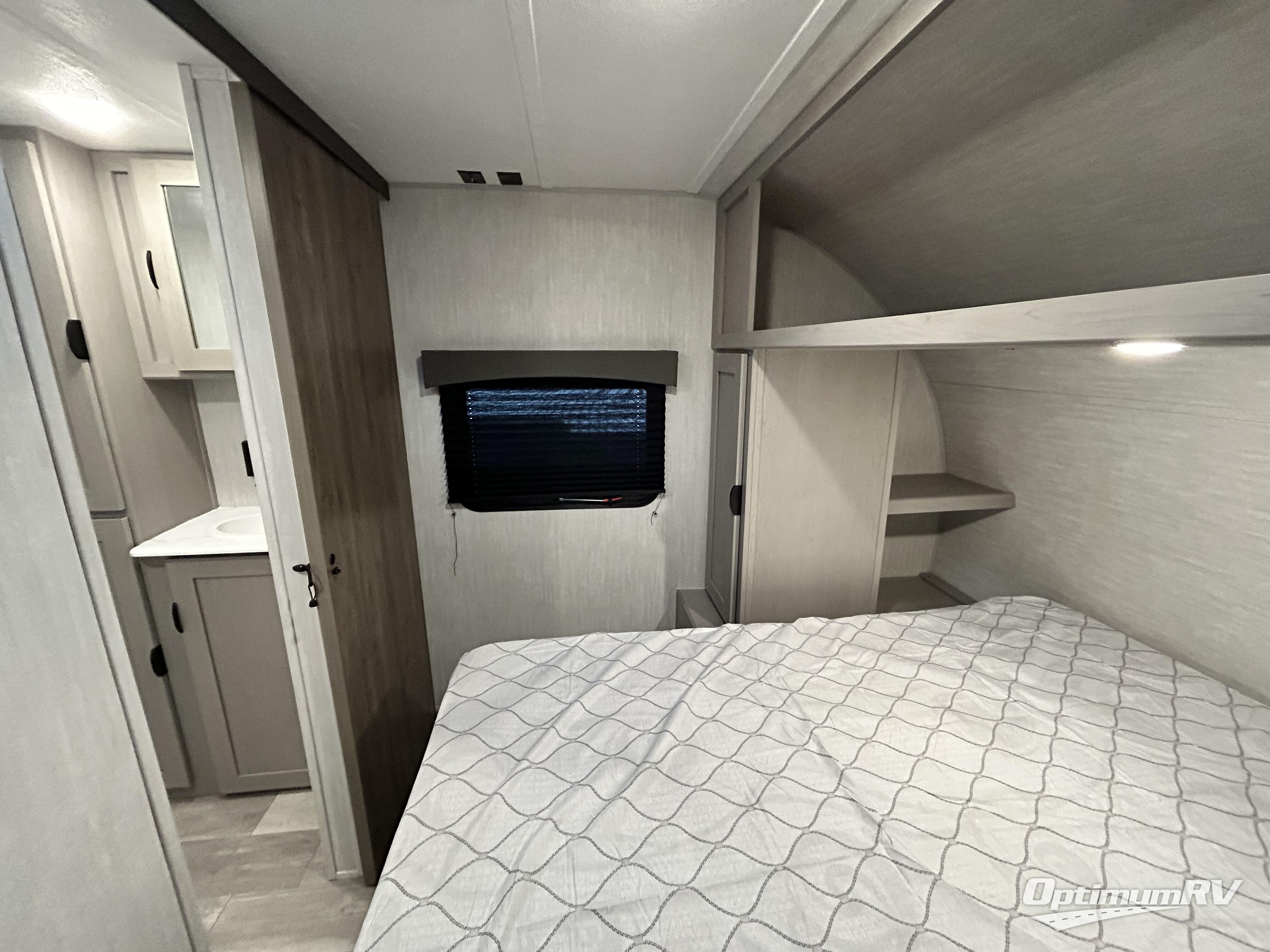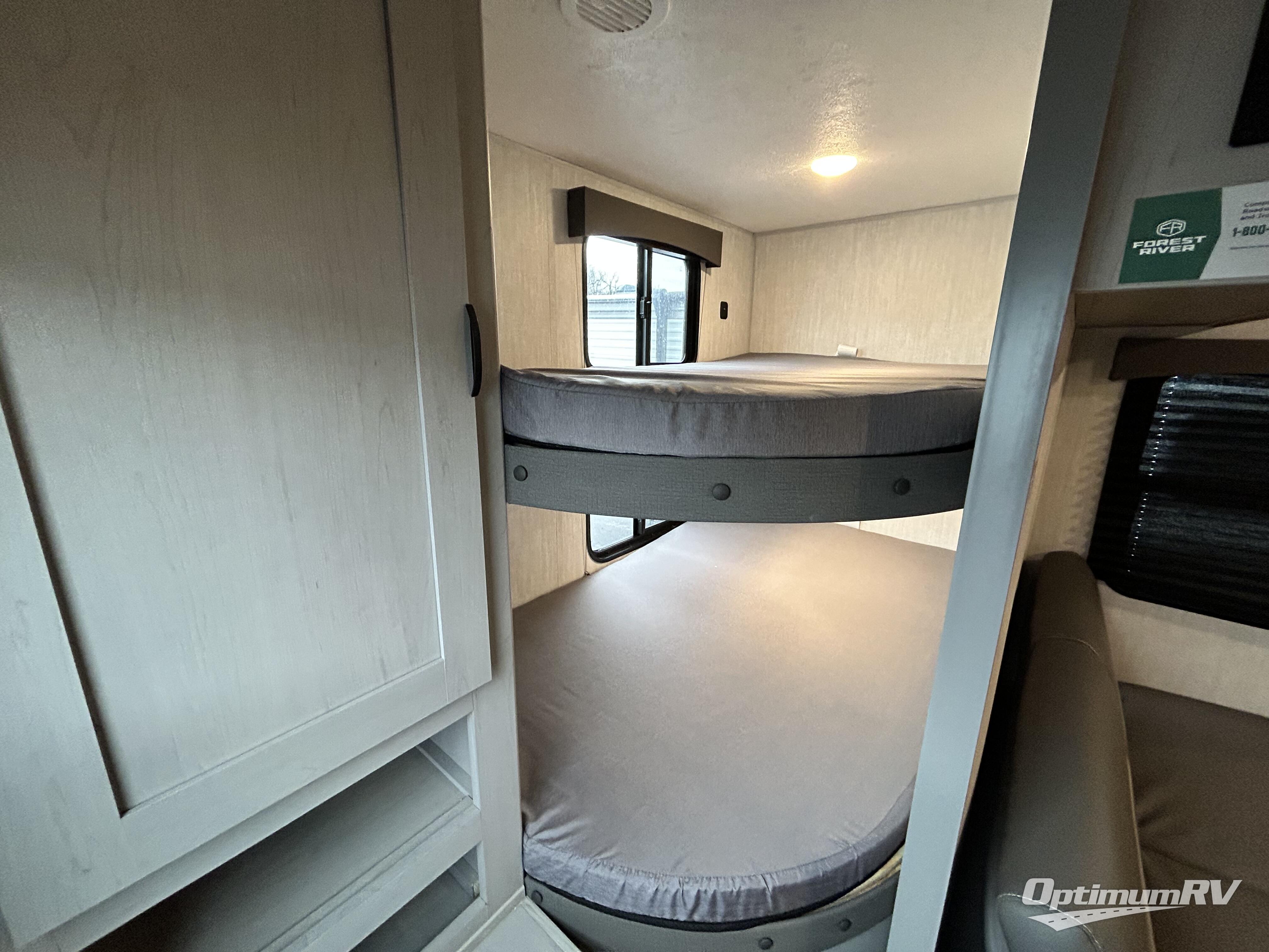 Start planning your trip and loading up your clothes for a fun family or friend get-away with this trailer in tow! The kids or your guests will pack the wardrobe by the double bunk beds in the rear which include steps leading up to them, and you can place your clothes in the wardrobes in the front private bedroom which includes the second entry/exit door for convenience. The main kitchen and living area is spacious with a slide out, and everyone can gather around the U-shaped dinette and sofa to visit, eat, and plan their day. The outside camp kitchen allows you to make meals easily outdoors, and you'll find a three burner range with an oven indoors to bake a casserole for dinner. The exterior also offers an outside shower to wash off the dirt from the day, and a 16' power awning to relax in the shade!