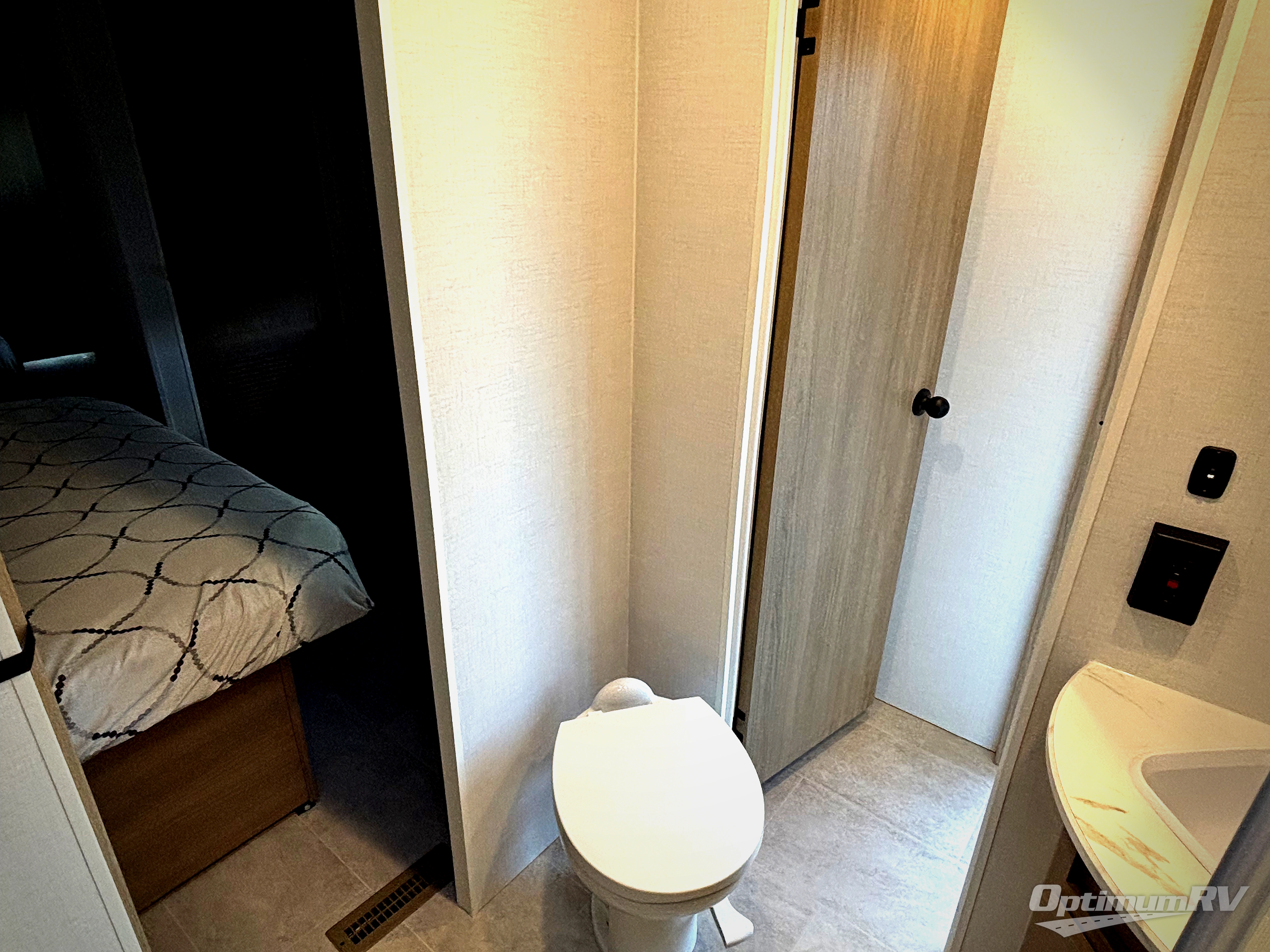 With any Aspen Trail travel trailer by Dutchmen, you will find comfort at every turn! There is a heated and enclosed underbelly outside, along with a power awning with LED lights, fender skirts, and smooth front metal for added protection. There is also a 100-watt roof solar panel with a 30amp charge controller for some off grid power. Head inside to enjoy the 6' 10" interior height, pleated shades throughout, dual shelf nightstands plus seamless thermofoil countertops in the kitchen.