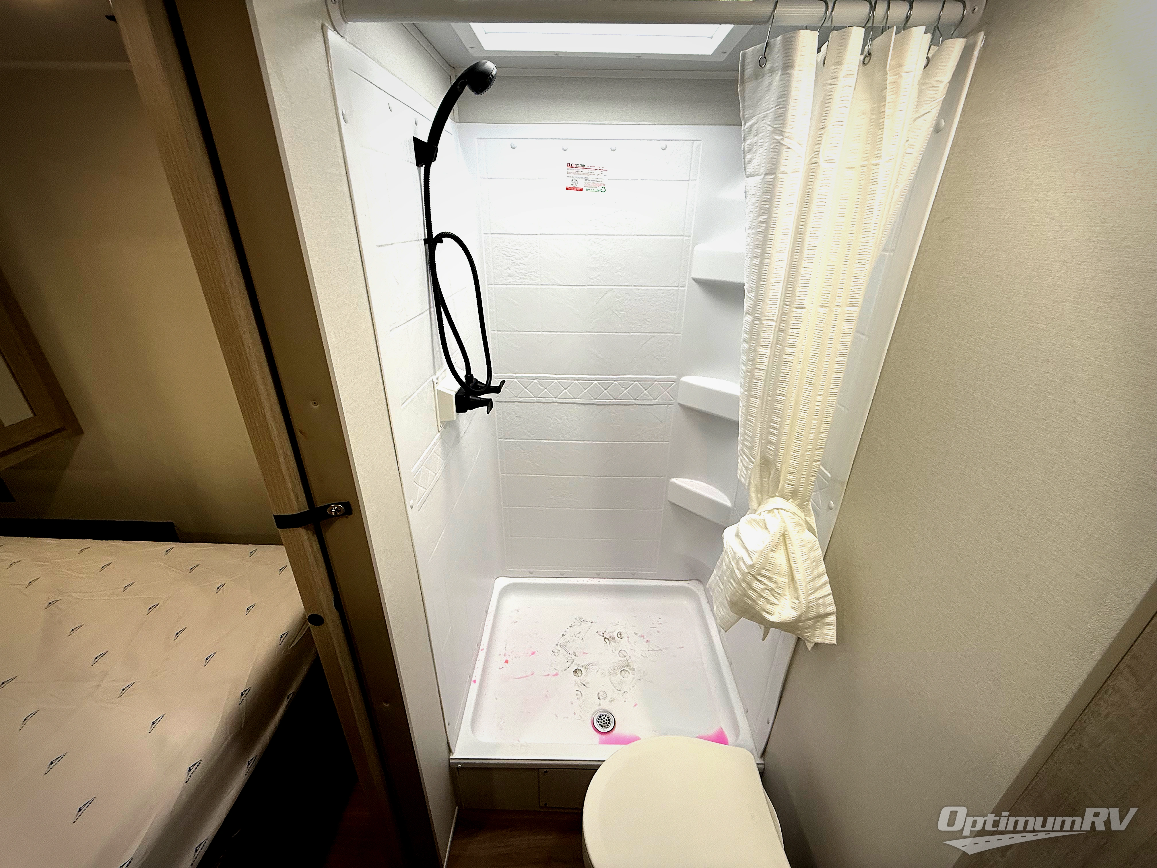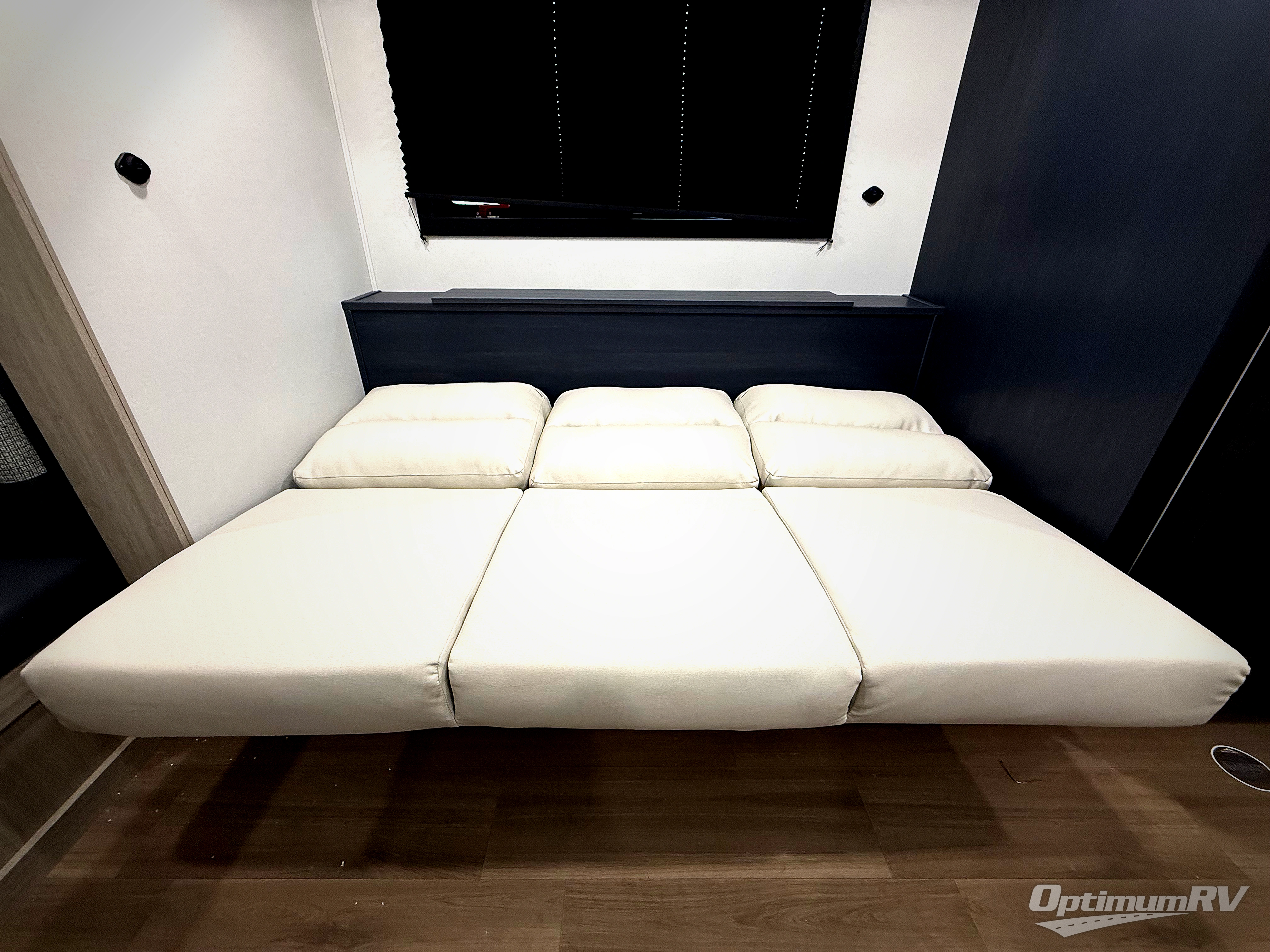 Gather around the U-shaped dinette, perfect for meals, games, or planning your next adventure. The jackknife sofa’s a comfy spot to lounge, binge-watch shows, or chill with the crew. The kitchen’s got you covered with a refrigerator to keep snacks chilled, a pantry for dry goods, plus a two-burner cooktop and microwave to prep meals. Plenty of overhead cabinets keep things tidy. Refresh and recharge in our convenient walk-through bathroom—no backtracking needed. Relax in the spacious front bedroom’s king bed, with ample wardrobes to stash your gear and handy nightstands for those midnight reads. Two entry doors allow for effortless flow in and out, perfect for grabbing gear or stretching your legs.