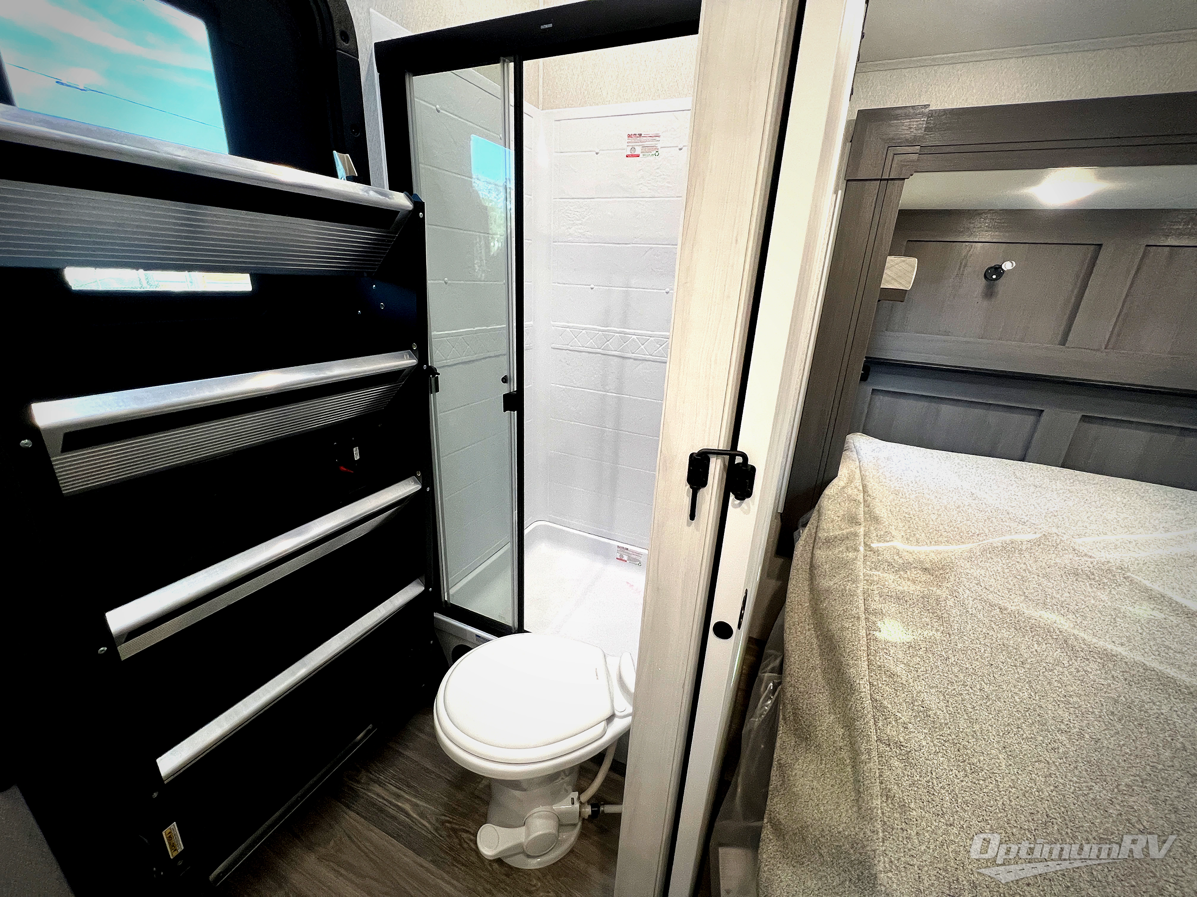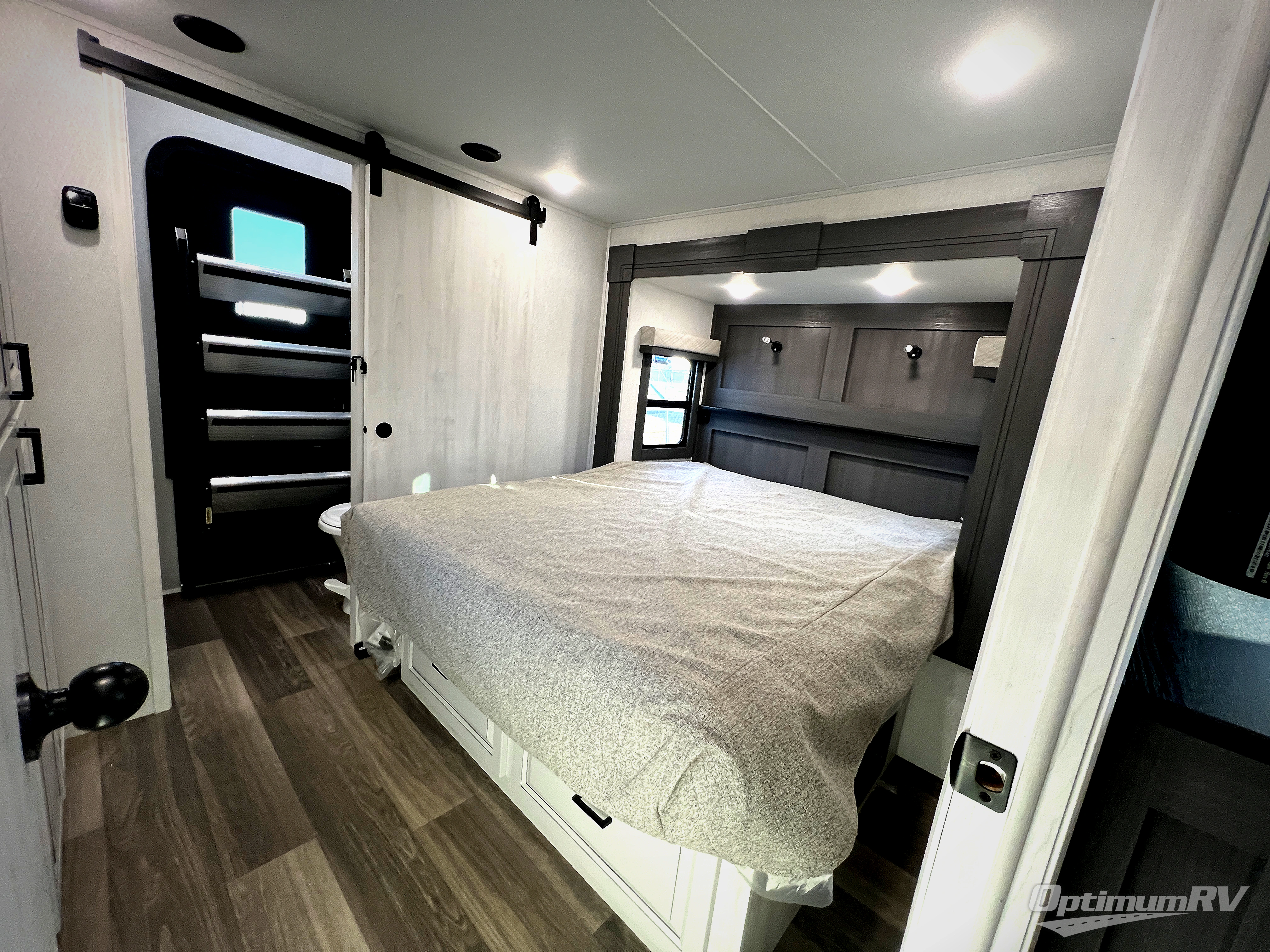 There is just too much luxury to name on the EAST TO WEST Ahara fifth wheel! These units are quite impressive, and once you see them, you'll know what we mean. The Ahara first grabs your attention with its fully painted aerodynamic fiberglass front cap, 102" wide-body chassis, and deep tint square frameless windows. For towing, you'll find a MORryde CRE 3000 suspension, LED marker lights, LED taillights with back-up lights, and rear view camera prep. Traveling in different climates is also made easy with the high-efficiency triple A/C system, 40,000 BTU high-capacity furnace, plus heated, insulated, and enclosed underbelly found within the Climate Package. Head inside to enjoy Slow Rise roller shades, a flush floor kitchen slide to help prevent trips, and solid surface countertops in the kitchen and bath to name a few luxuries!