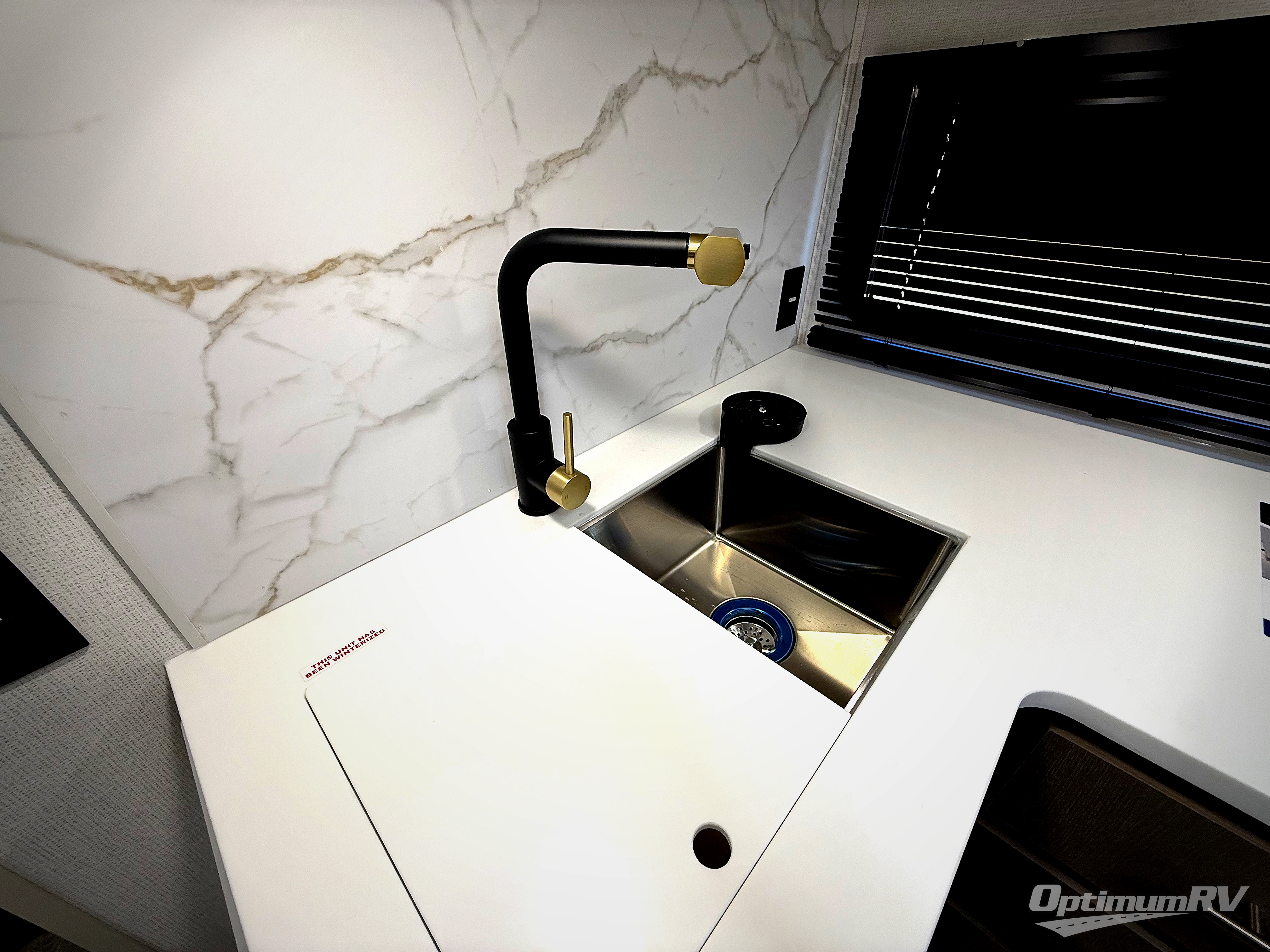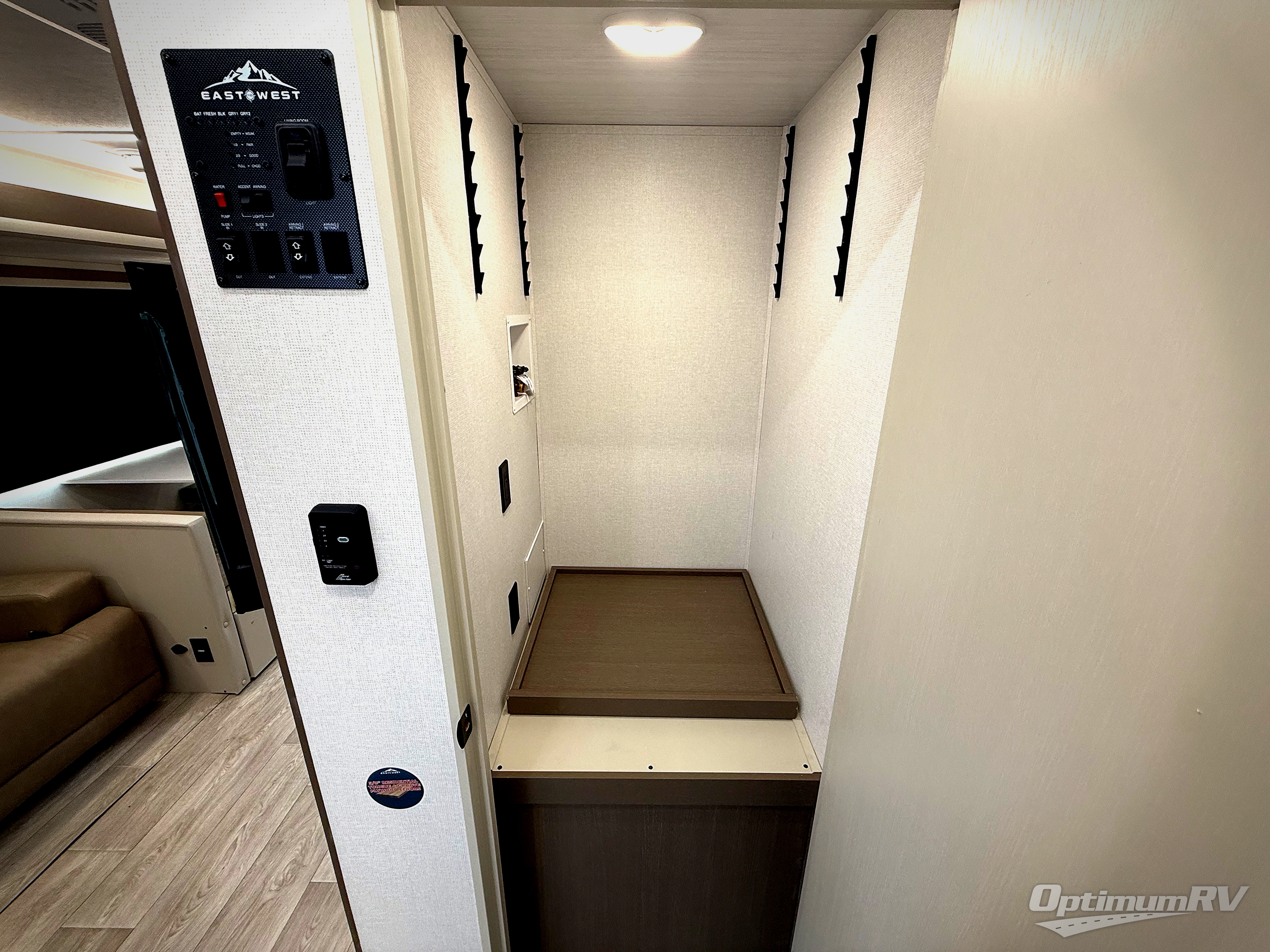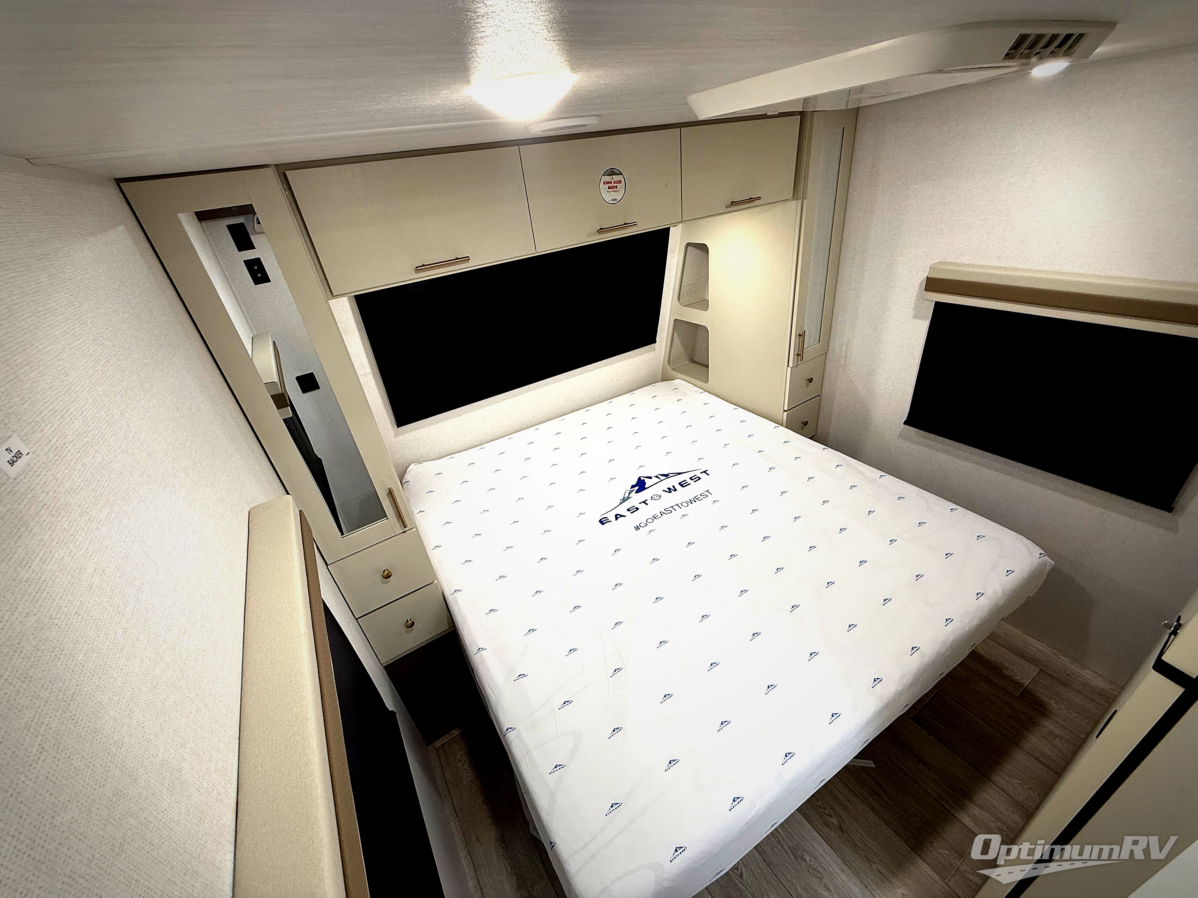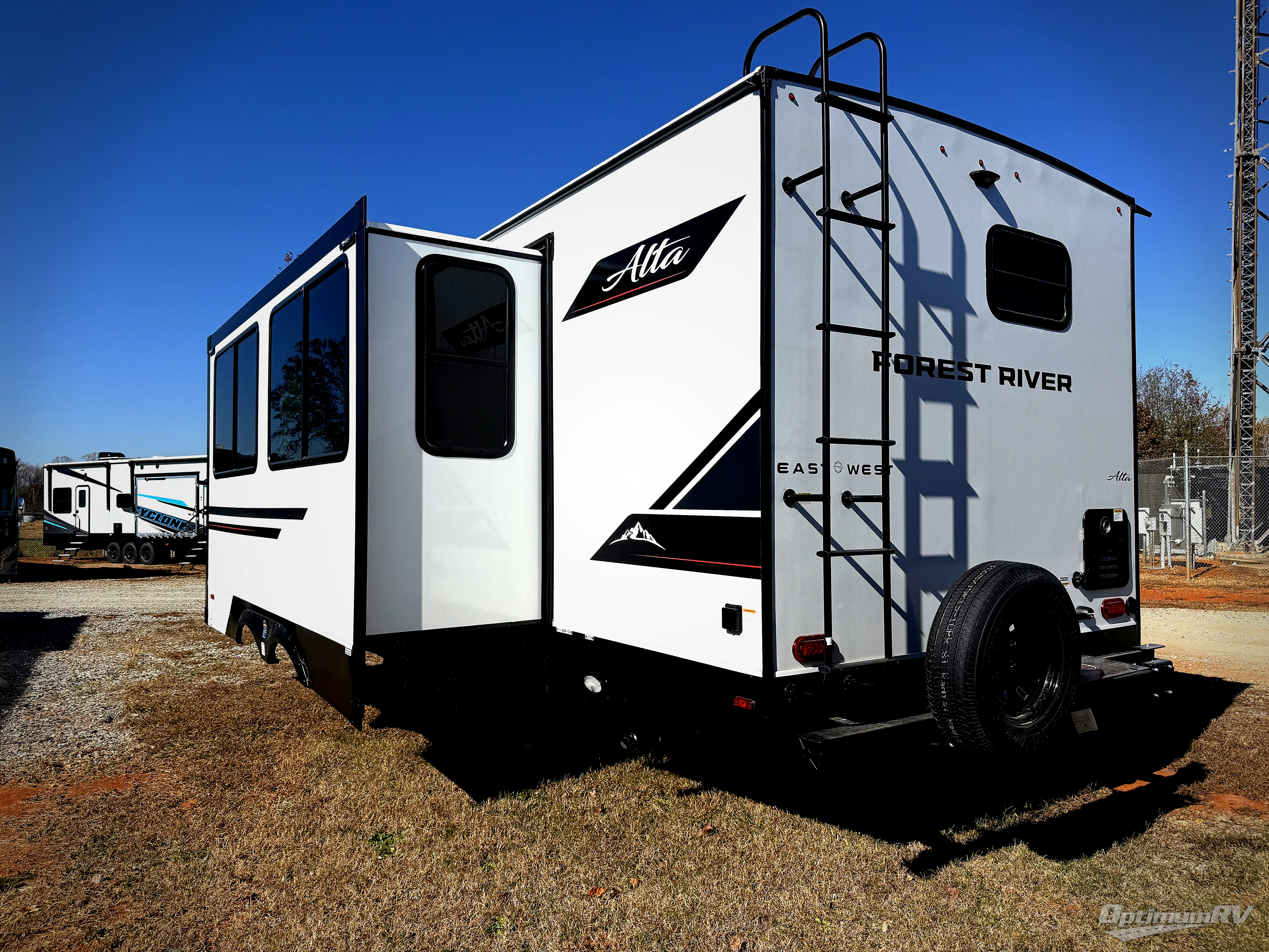 Each Alta travel trailer or toy hauler by EAST TO WEST is constructed with a 5" vacuum bonded roof, an enclosed and heated underbelly, and diamond plate front rock guard for added protection. Outside, you'll find marine-grade exterior speakers, a universal docking station, and back-up camera prep that can be added to make maneuvering in and out of campgrounds easier than ever. Inside, there are 4k interior LED lights, solid pressed membrane countertops, black roller shades, and many more interior comforts you are sure to love.