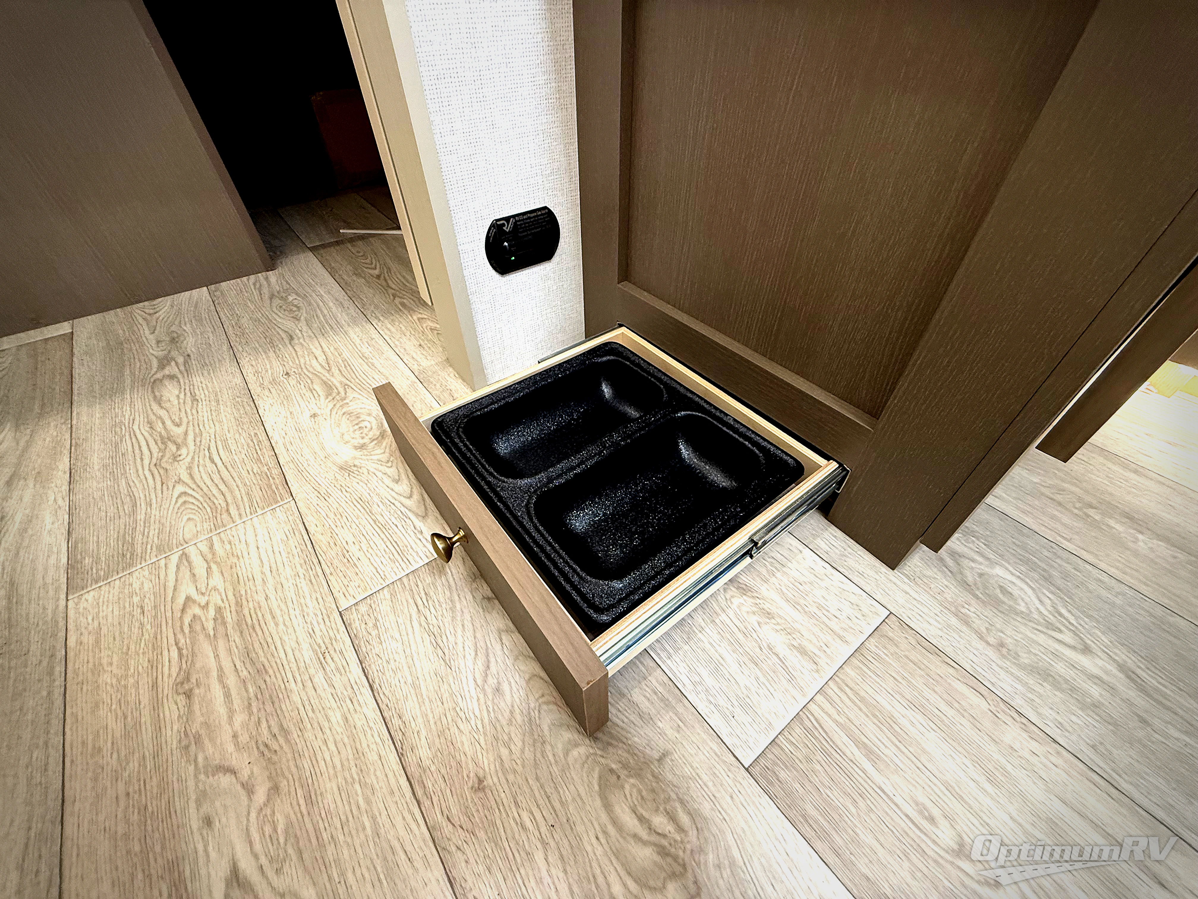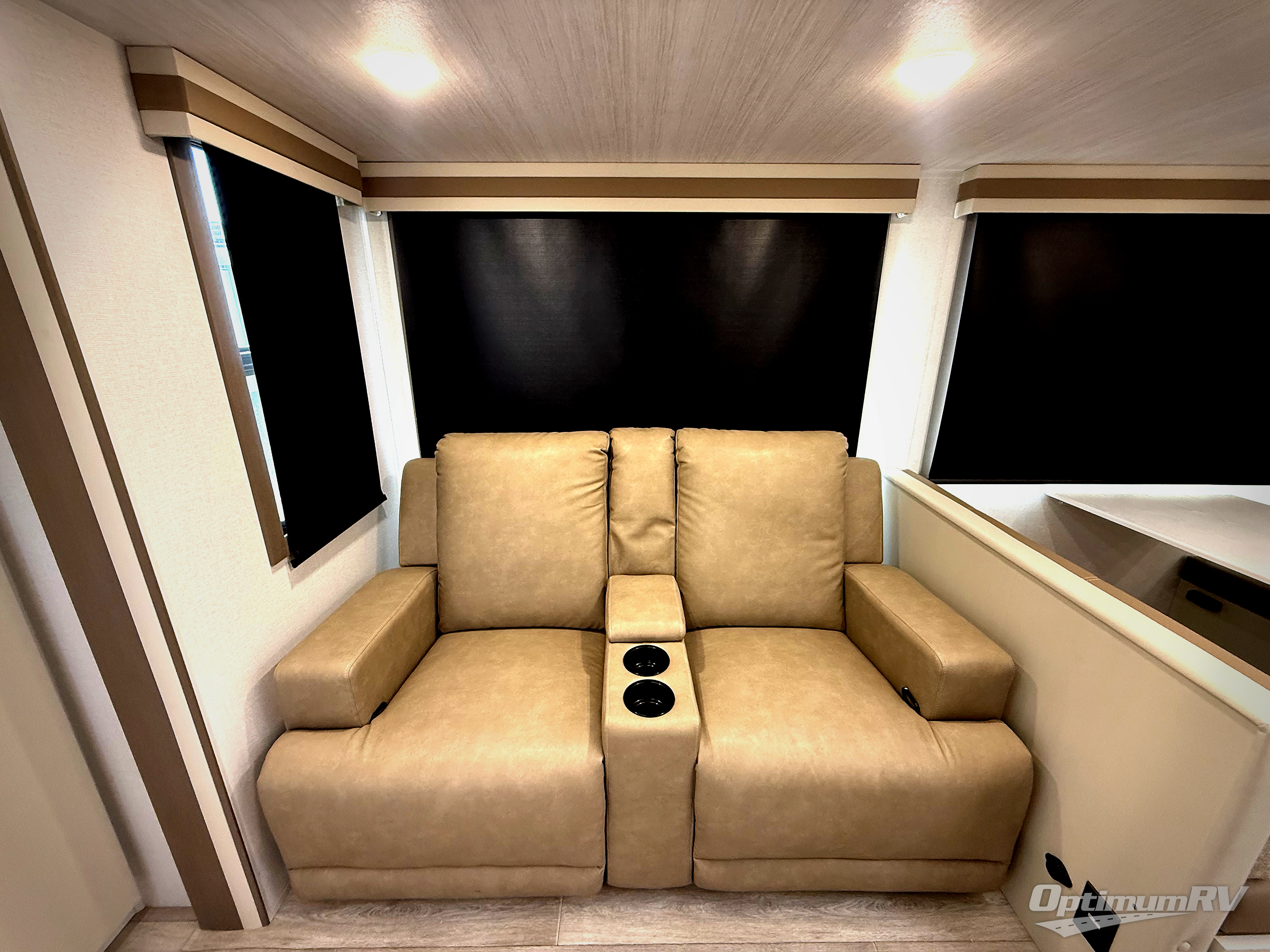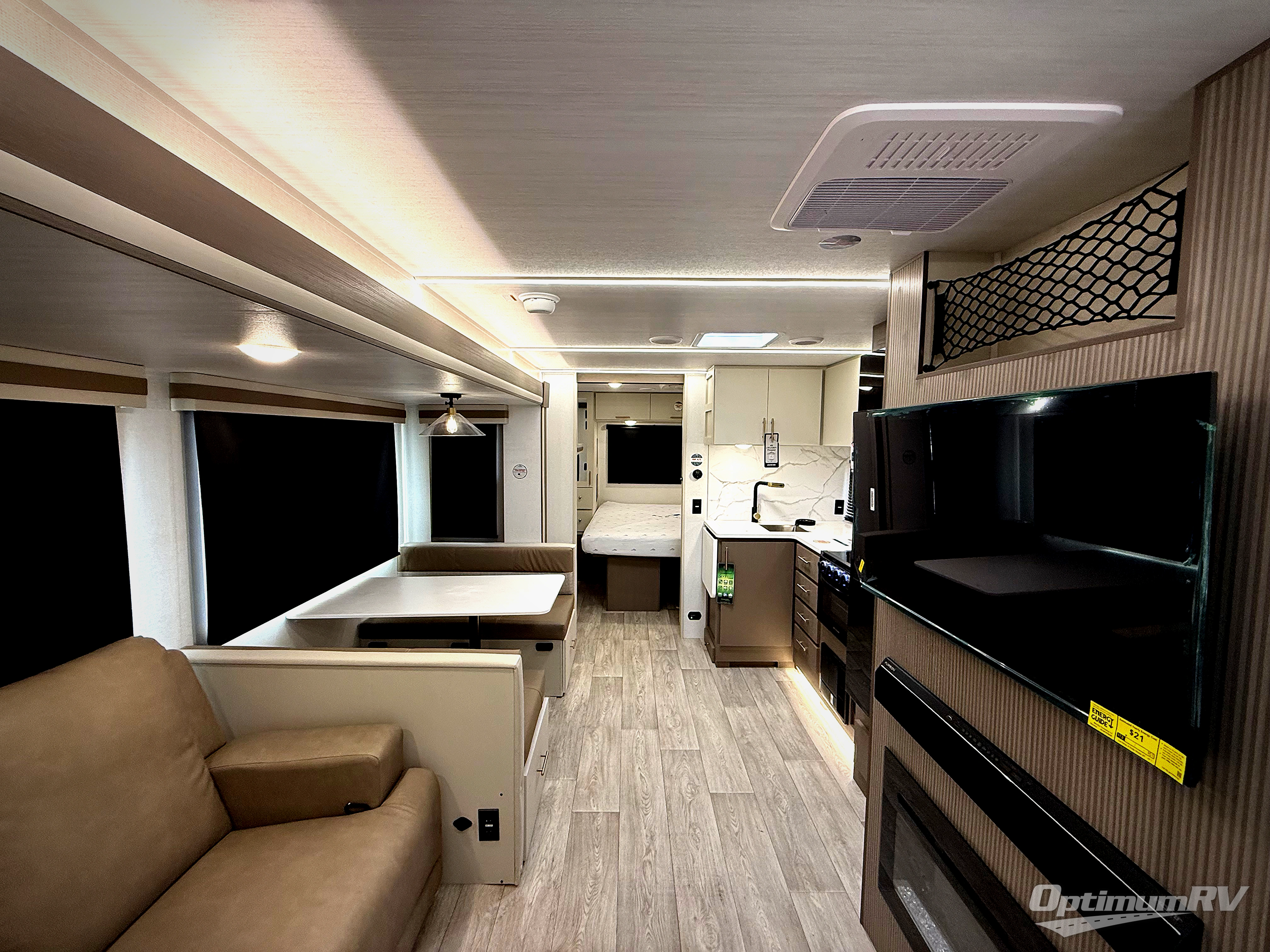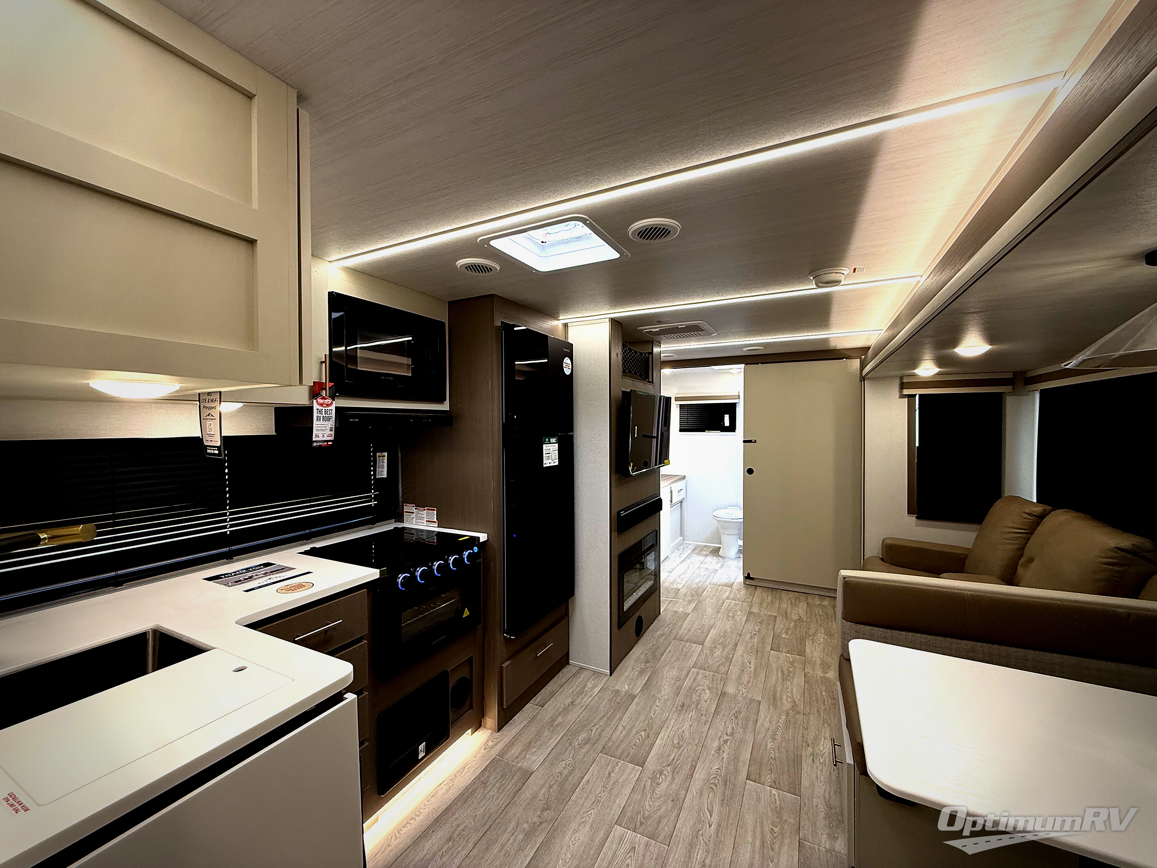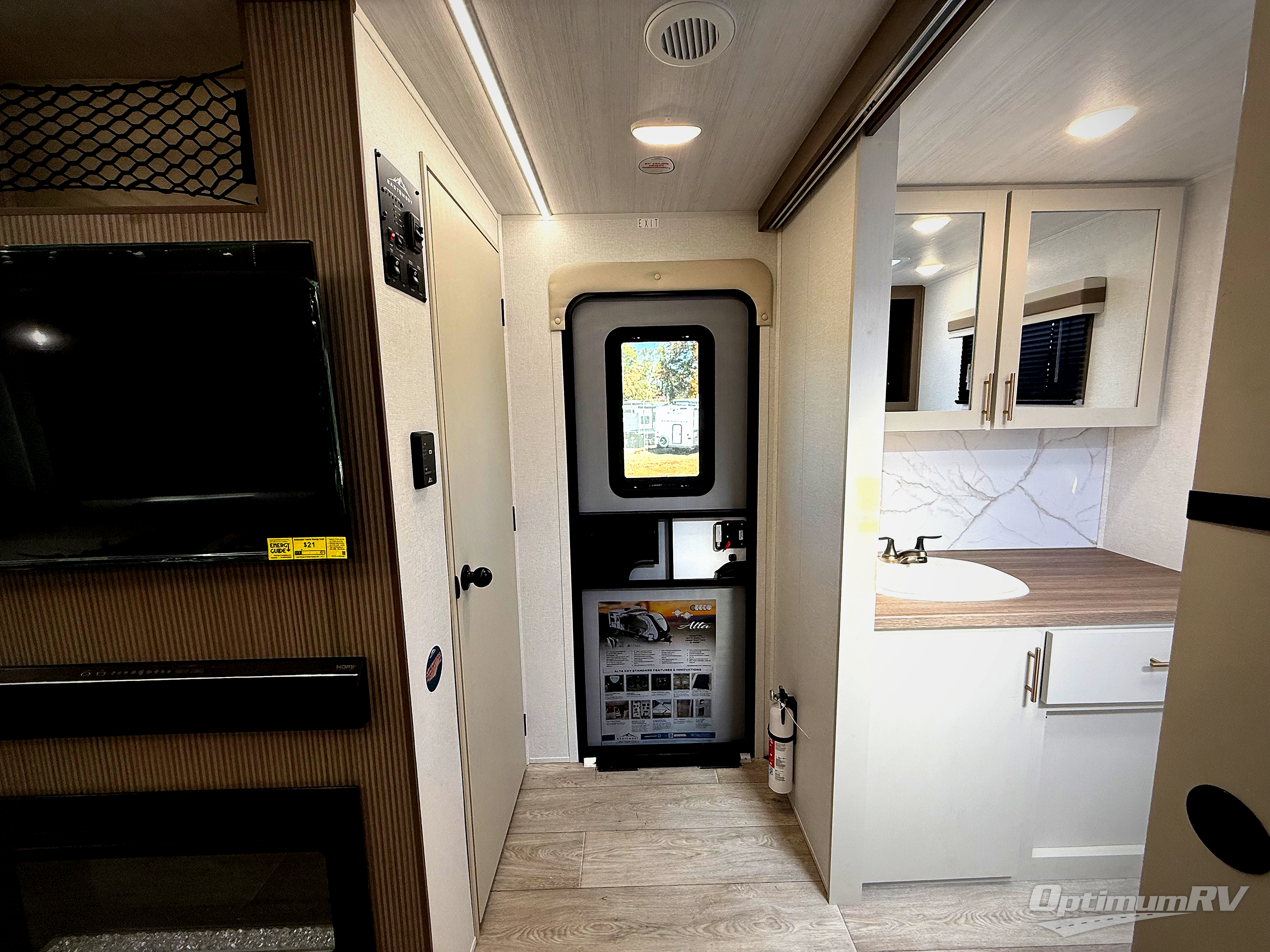 Each Alta travel trailer or toy hauler by EAST TO WEST is constructed with a 5" vacuum bonded roof, an enclosed and heated underbelly, and diamond plate front rock guard for added protection. Outside, you'll find marine-grade exterior speakers, a universal docking station, and back-up camera prep that can be added to make maneuvering in and out of campgrounds easier than ever. Inside, there are 4k interior LED lights, solid pressed membrane countertops, black roller shades, and many more interior comforts you are sure to love.
