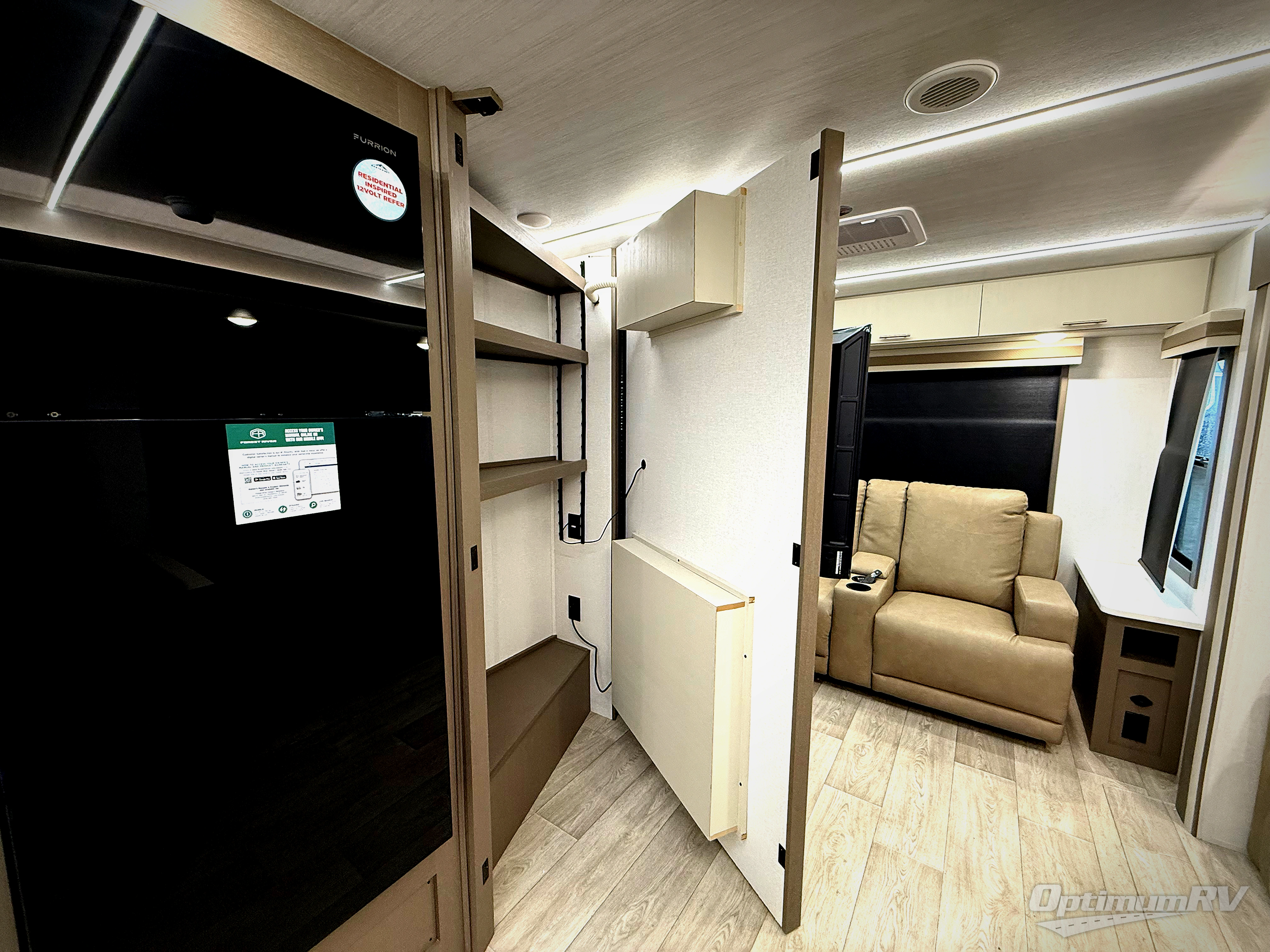 You'll feel right at home in this rear living travel trailer that includes theater seats and a front master bedroom with a king bed. The walk-through bath includes a medicine cabinet and a shower skylight to let natural light in, and the bedroom includes its own exterior entry door for convenience. When you're not relaxing outdoors under the 21' power awning with LED lights, you can play a game at the booth dinette or relax on the tri-fold sofa. This model also includes a pass-through storage for your larger camp gear and a universal docking station for easy access to your hookups.