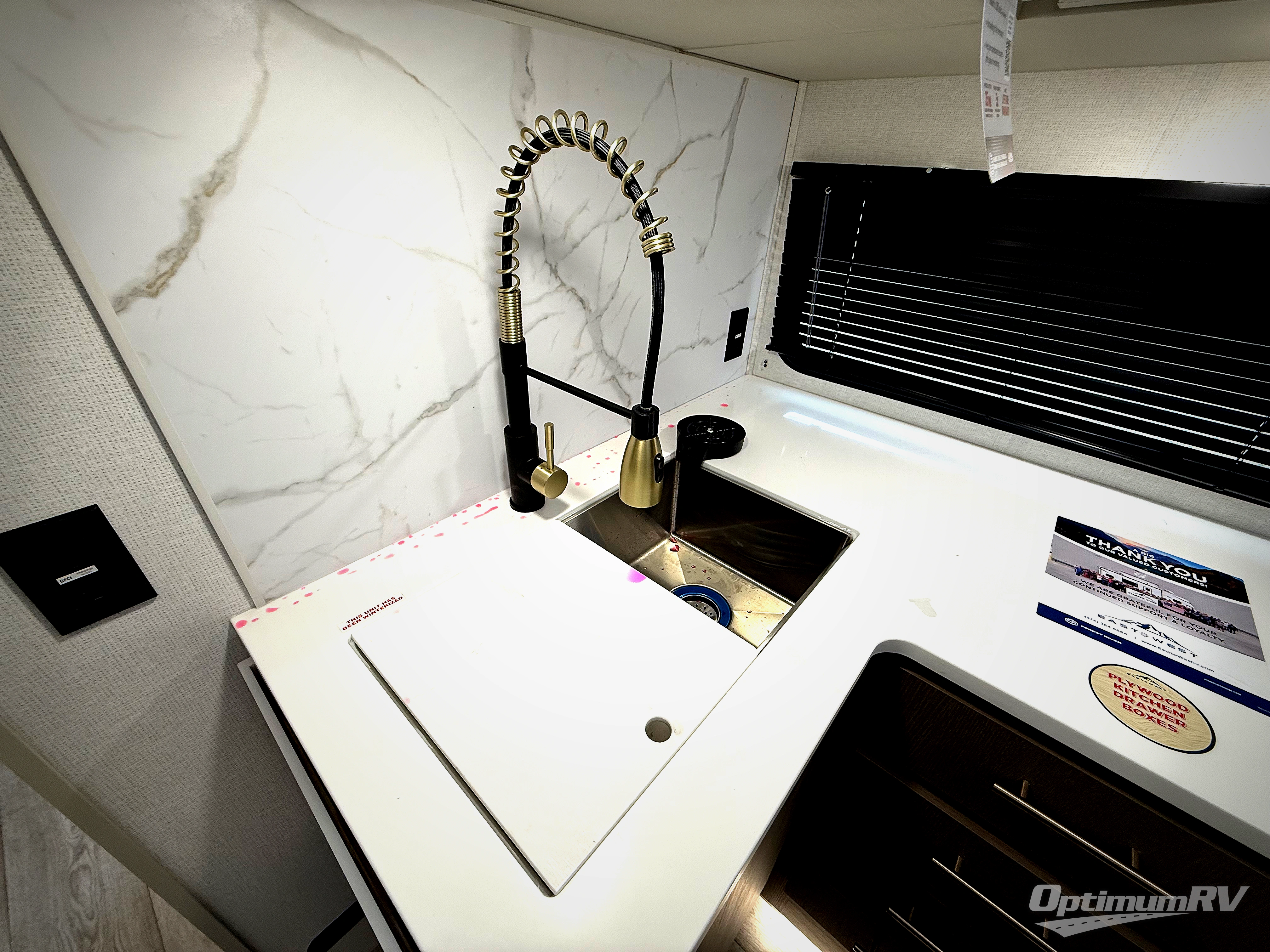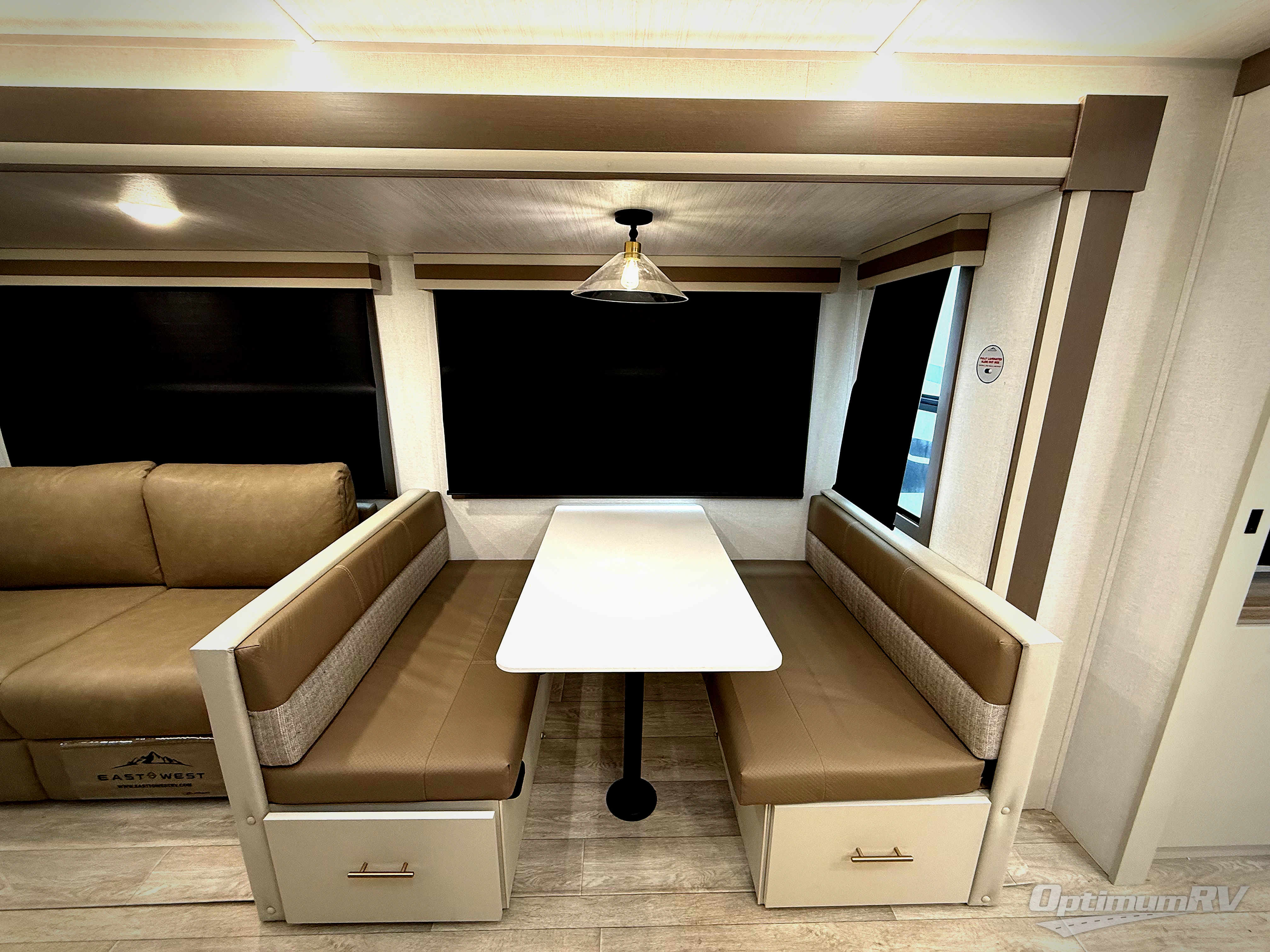 Each Alta travel trailer or toy hauler by EAST TO WEST is constructed with a 5" vacuum bonded roof, an enclosed and heated underbelly, and diamond plate front rock guard for added protection. Outside, you'll find marine-grade exterior speakers, a universal docking station, and back-up camera prep that can be added to make maneuvering in and out of campgrounds easier than ever. Inside, there are 4k interior LED lights, solid pressed membrane countertops, black roller shades, and many more interior comforts you are sure to love.