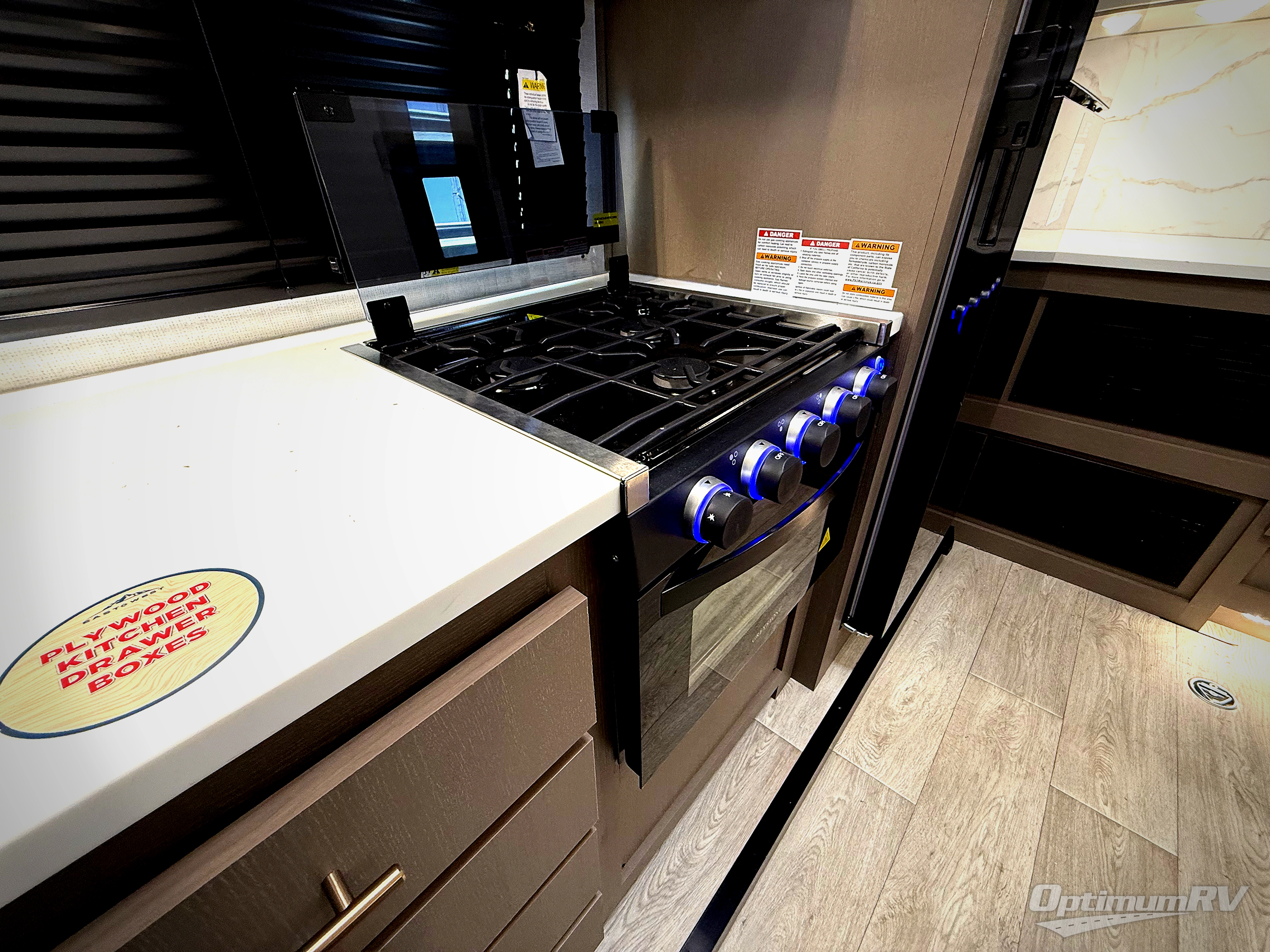 Each Alta travel trailer or toy hauler by EAST TO WEST is constructed with a 5" vacuum bonded roof, an enclosed and heated underbelly, and diamond plate front rock guard for added protection. Outside, you'll find marine-grade exterior speakers, a universal docking station, and back-up camera prep that can be added to make maneuvering in and out of campgrounds easier than ever. Inside, there are 4k interior LED lights, solid pressed membrane countertops, black roller shades, and many more interior comforts you are sure to love.