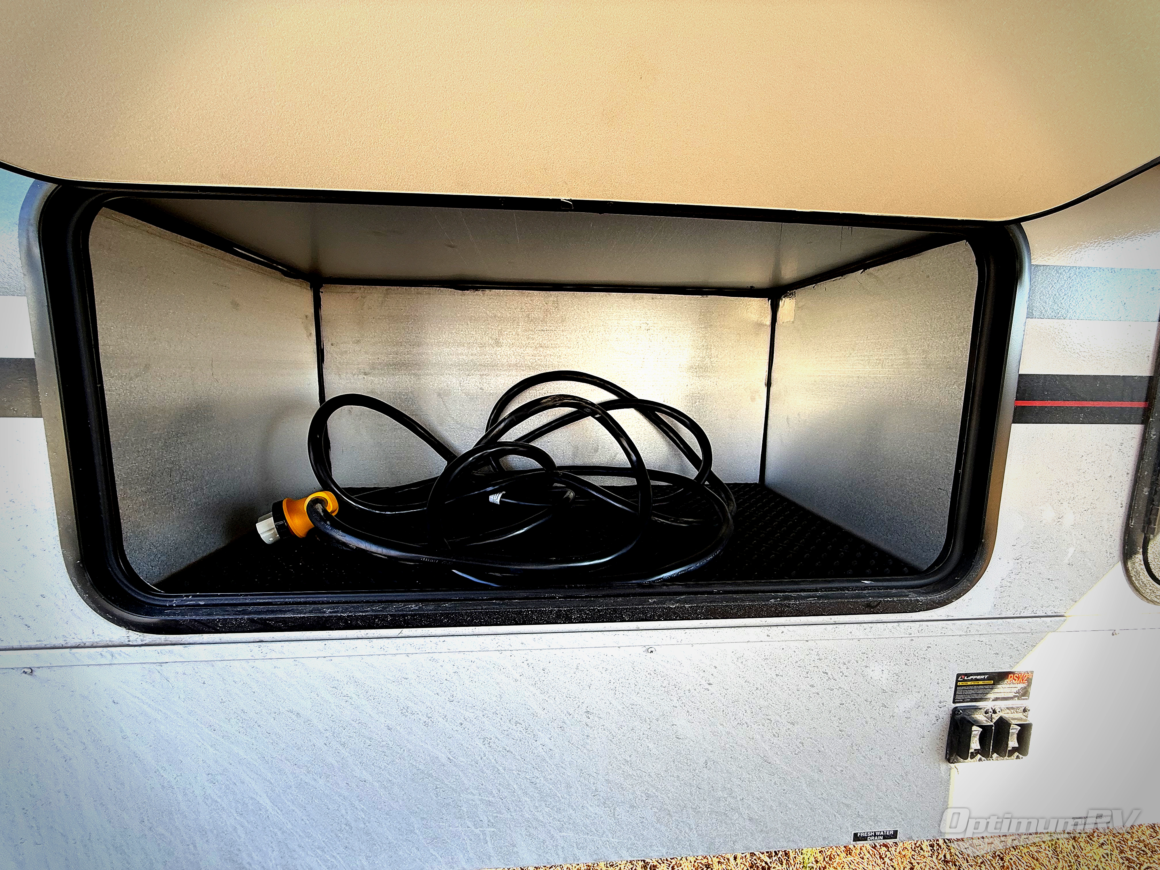 Take your favorite toys and favorite people to your favorite camping spots in this toy hauler! It offers a 14' garage so there is plenty of room for all your toys with a 97" x 92" ramp door with patio kit for easy loading and unloading. A Happi-jack with bunk above opposing sofas with a table in between means you will get lots of flexible use out of the space. The kitchen comes with a 10.7 cu. ft. 12V black glass refrigerator and three-burner range, and you can relax in one of the two recliners after dinner. At night retire to the front bedroom with its king bed slide, wardrobe, dresser, and dual entry bath with shower and skylight. This model also comes with the mandatory West Coach Power Package with a 400 watt solar panel, a 30 Amp controller and a second battery to keep you going!