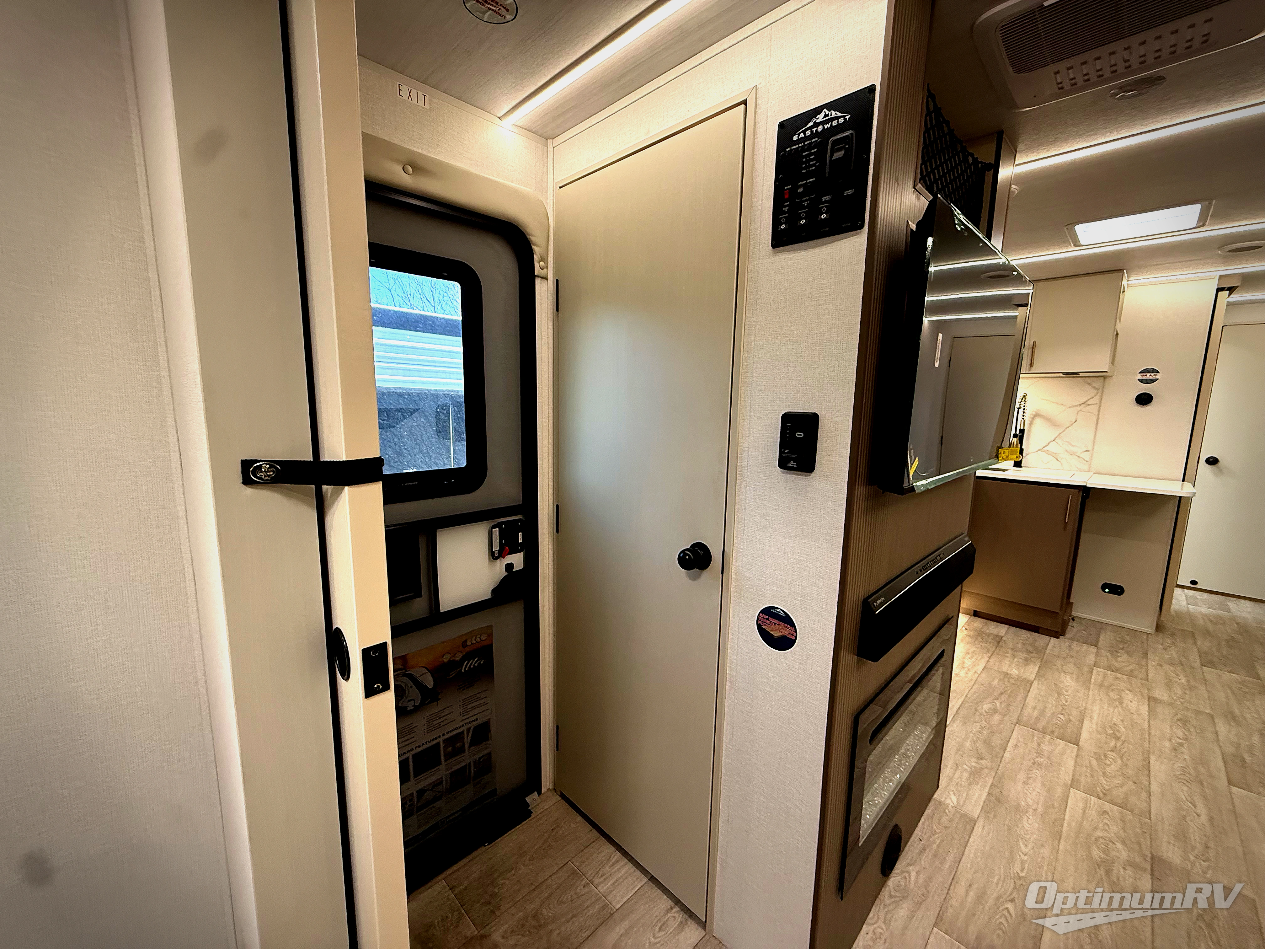 If you're looking for a travel trailer to take tailgating, this Alta model is the one! After you've unloaded the pass-through storage and set up the 21' power awning, start lunch on the outside kitchen! Since there are dual entry doors you can enter in through the main living area, or the full bath for convenience. The little ones are sure to spend most of their time in the rear bunkhouse that includes a flip-up bunk under the sofa, plus a second bunk across the room. The adults can visit at the booth dinette or on the tri-fold sofa, and check out the front private bedroom with sliding doors and a king bed for all-around comfort!