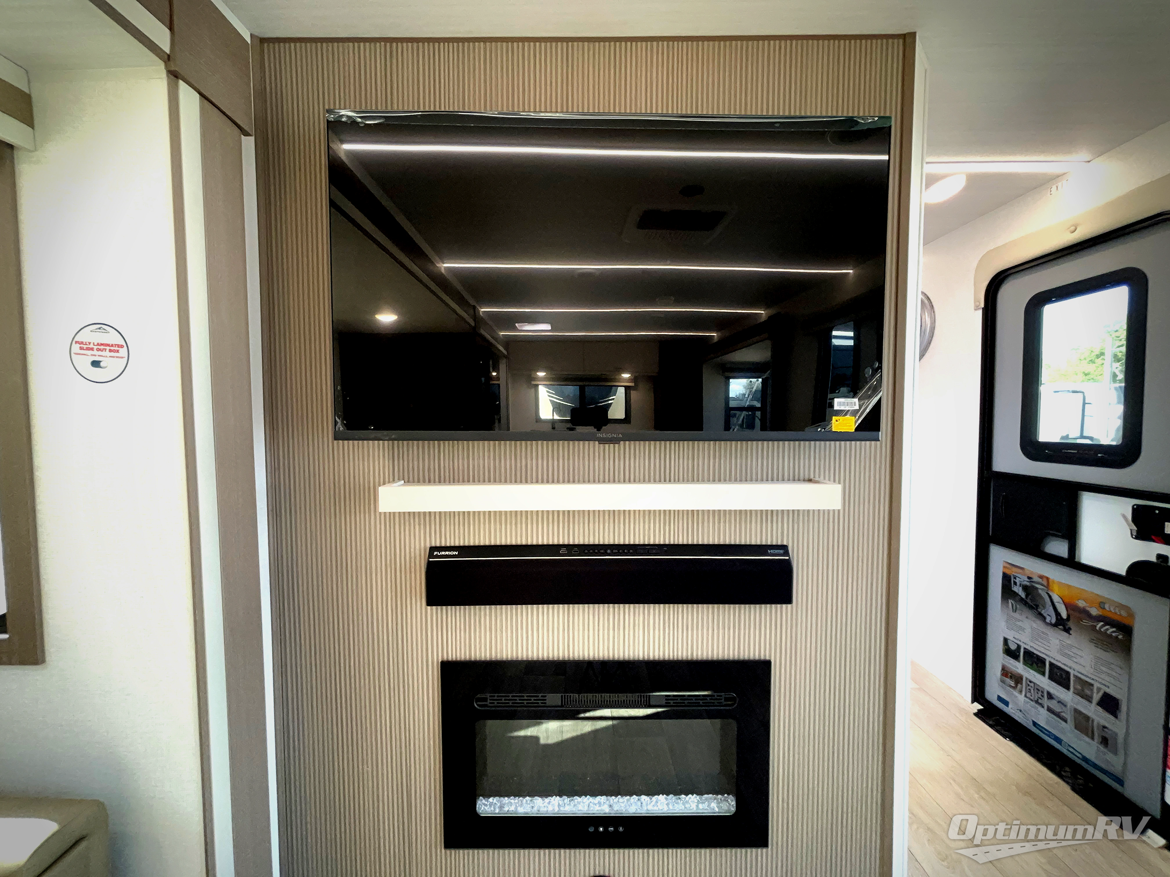 Experience a luxurious ride in this travel trailer. The rear kitchen is equipped with everything you need to whip up a culinary masterpiece. Enjoy ample storage in the pantry, a 12V refrigerator for keeping your favorite drinks and snacks chilled, a three-burner cooktop for cooking up a storm, and a microwave for quick reheating. The sink provides a convenient spot for washing up, and the spacious countertops offer plenty of room for food preparation. Relax and unwind in the heart of the trailer, a comfortable living area features a tri-fold sofa and a sofa with recliners. Gather around the fireplace on chilly evenings, or enjoy your favorite shows on the TV. Further, the full bathroom is equipped with everything you need for a comfortable stay, and the front bedroom boasts a queen-sized bed, large wardrobe, dresser, and overhead cabinets. Finally, take your living space outdoors with the fold-down patio, perfect for alfresco dining or simply enjoying the fresh air.