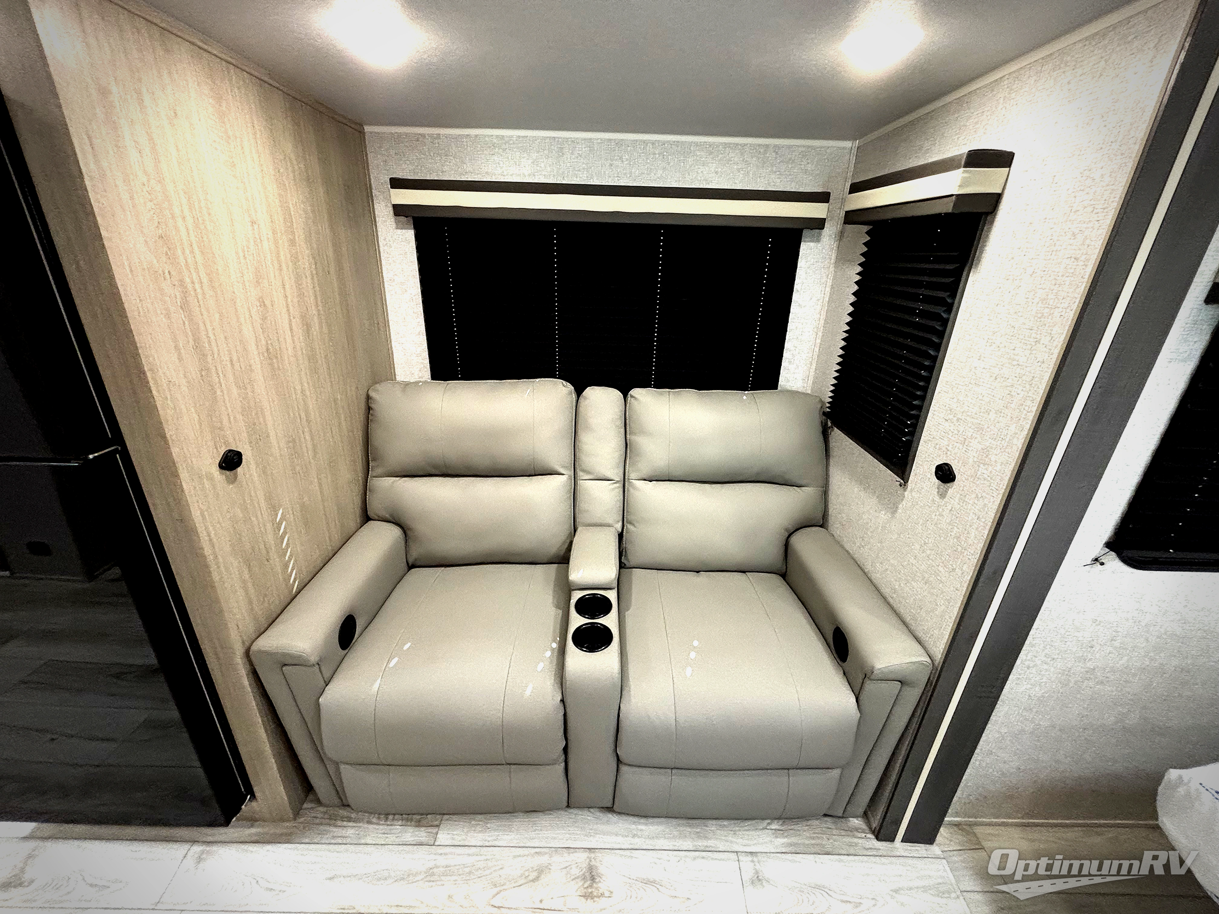Head to the lake in this travel trailer with a large slide out for more space and comfort! Once you arrive, you can put out the 18' power awning, unload the pass-through storage, and make lunch on the outdoor kitchen with a pull-out griddle and refrigerator. The booth dinette inside can be used as dining space, and there is storage underneath here for added convenience. A jiffy sofa within the slide can be switched out for an optional theater seat if you don't need the extra sleeping space. You will also find a full interior kitchen in the rear corner, and the full bath in the other rear corner is sure to come in handy. When you're ready for some shut-eye, the king bed in the front bedroom will feel just like home. There are also dual wardrobes and nightstands to keep your things tidy!