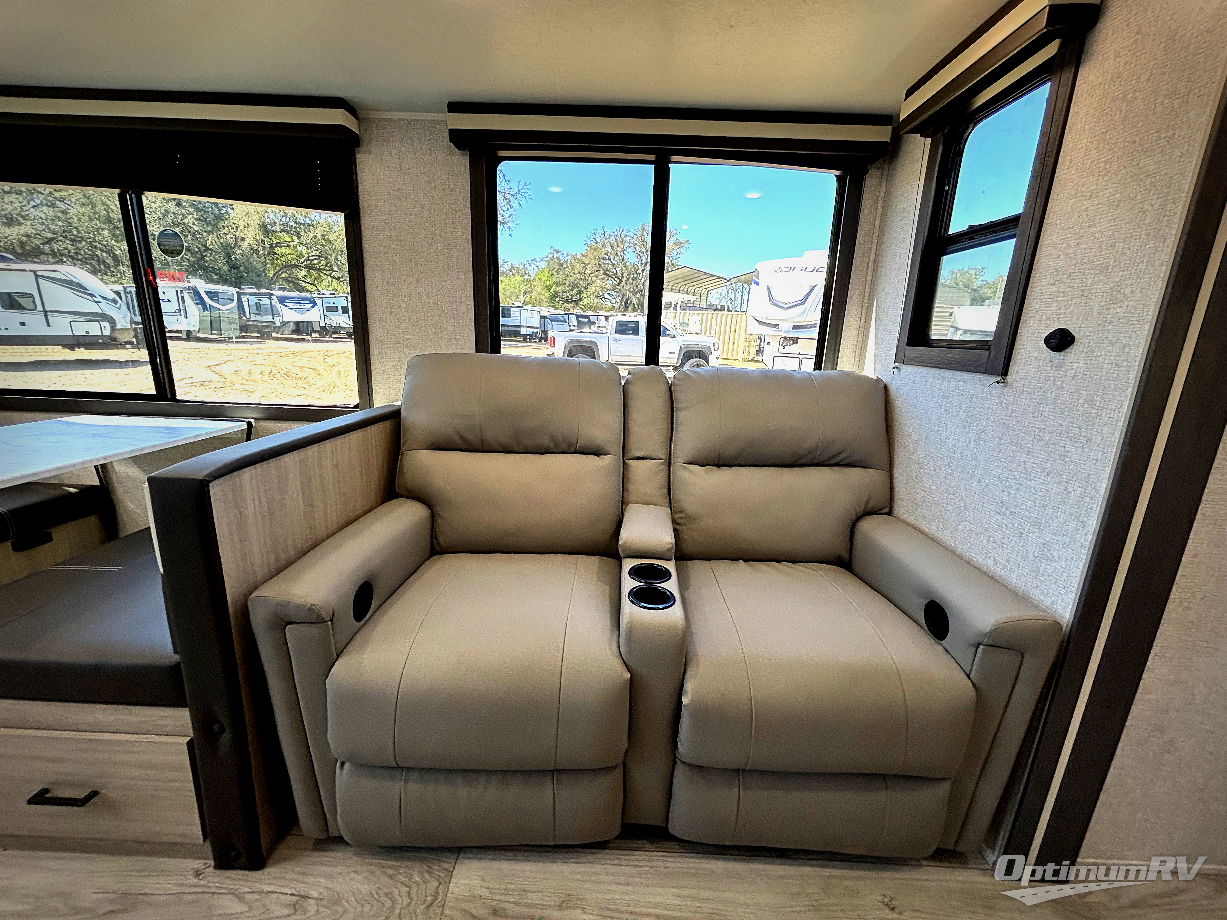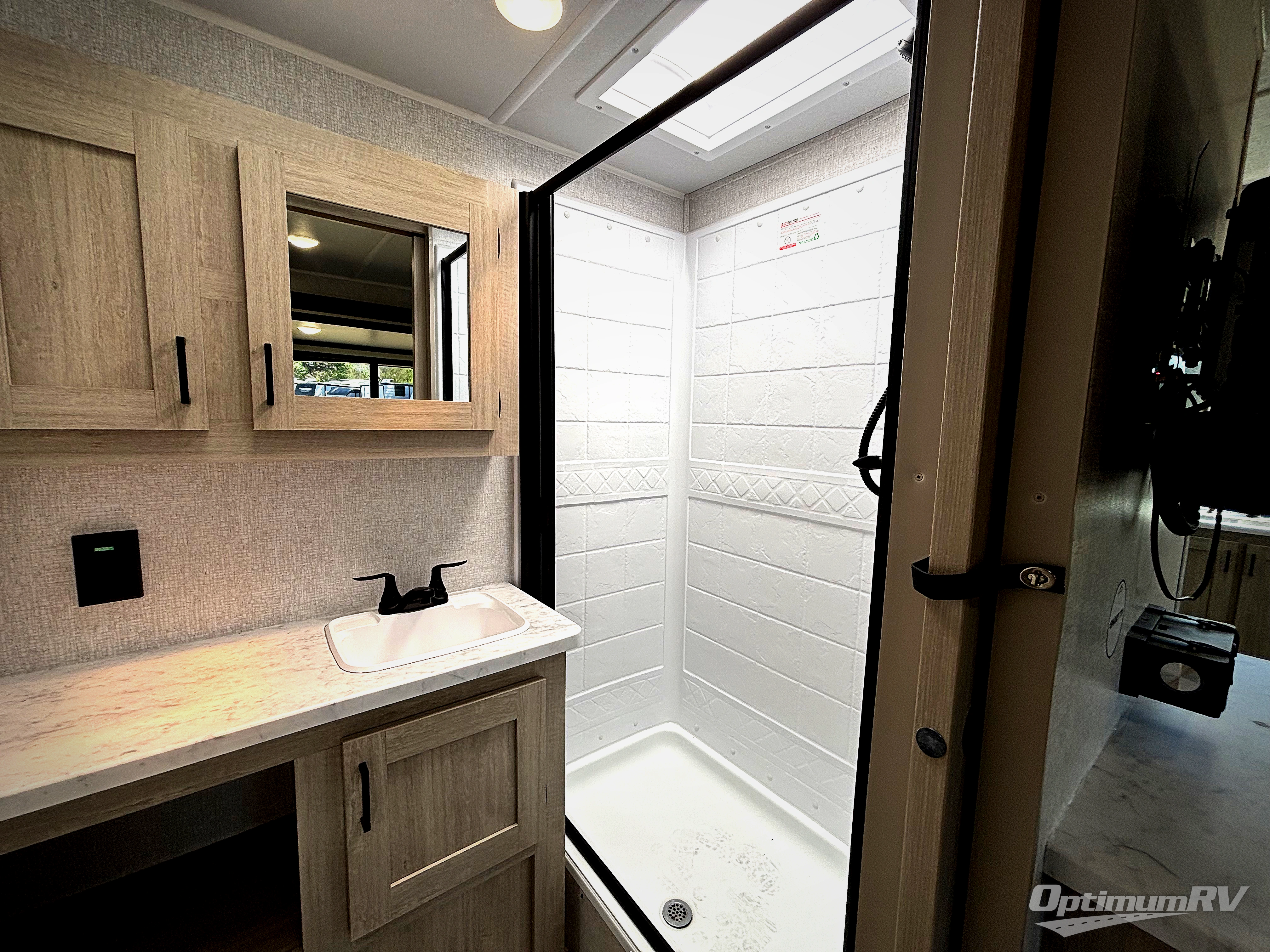 This travel trailer will feel just like home with its spacious interior and at-home comforts. Since there are dual entry doors, you can enter in through the front bedroom or the rear kitchen and living area. A king bed slide in the bedroom is sure to bring comfort, and there is a closet to keep your clothes wrinkle-free, plus washer and dryer prep. The second slide out is found in the living room, and here you can relax on the jiffy sofa or dine at the booth dinette. The chef of your group will love cooking in the rear kitchen, and there is generous counter space here to set out snacks. An entryway pantry and closet will provide additional storage for snacks, jackets, and more!