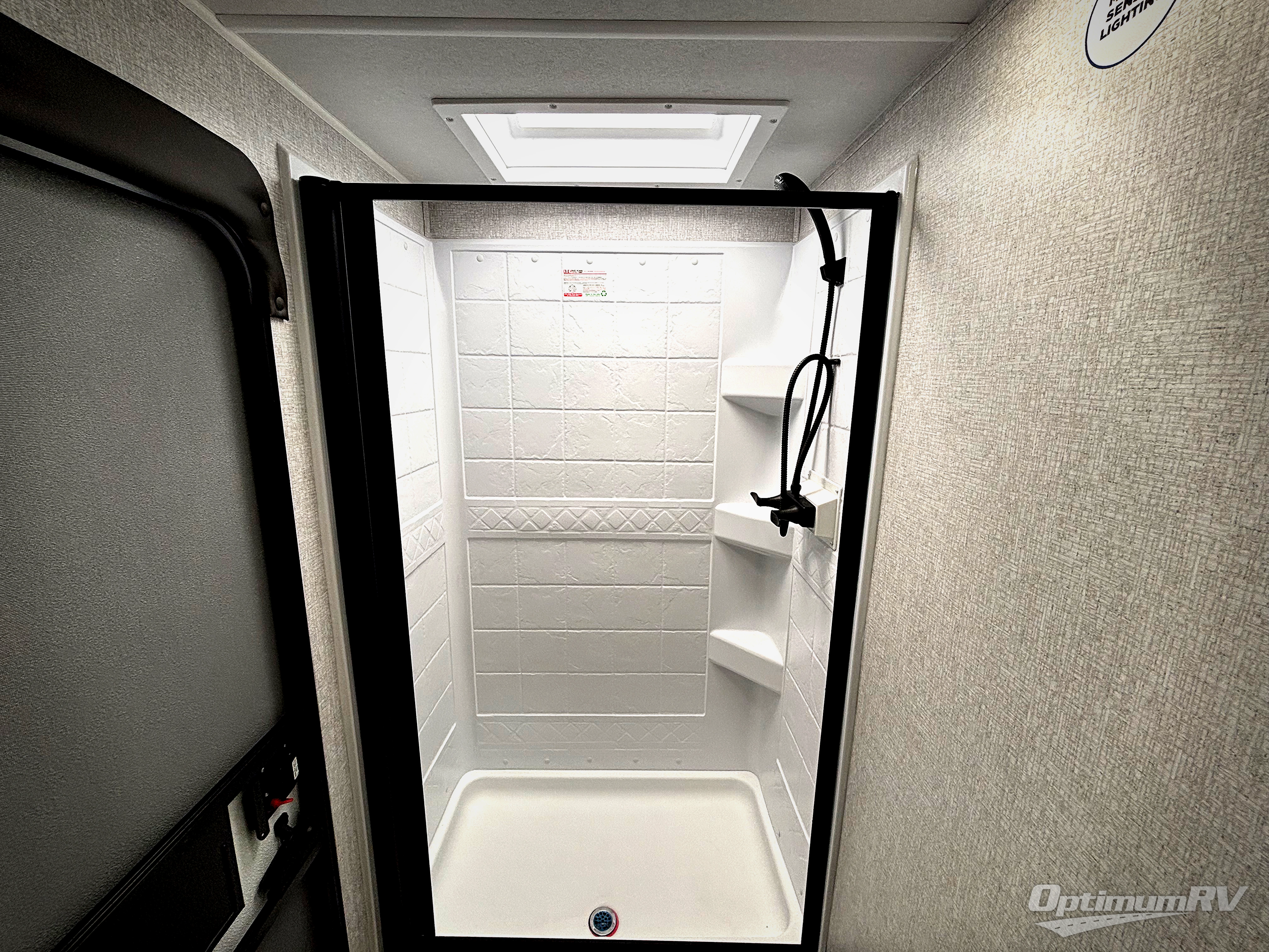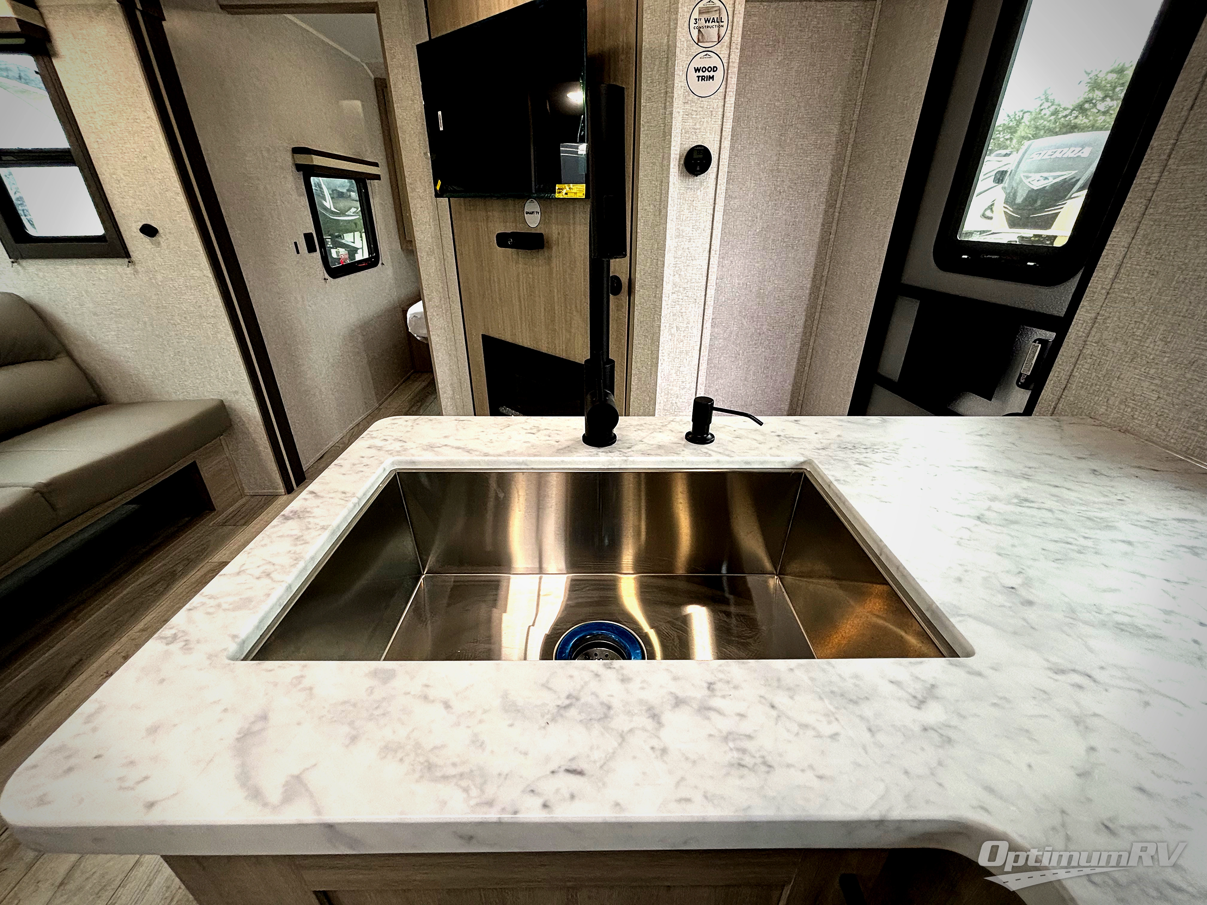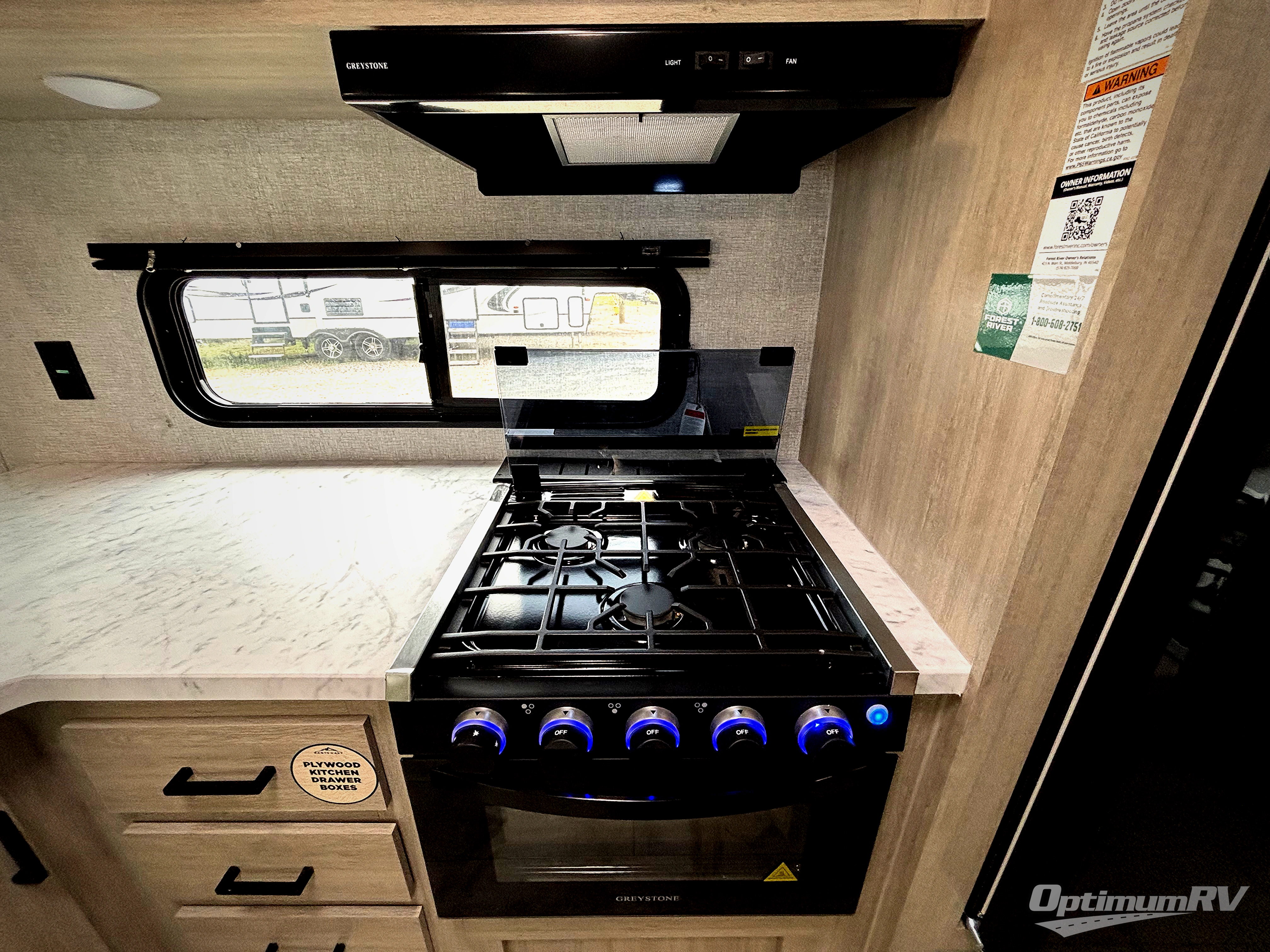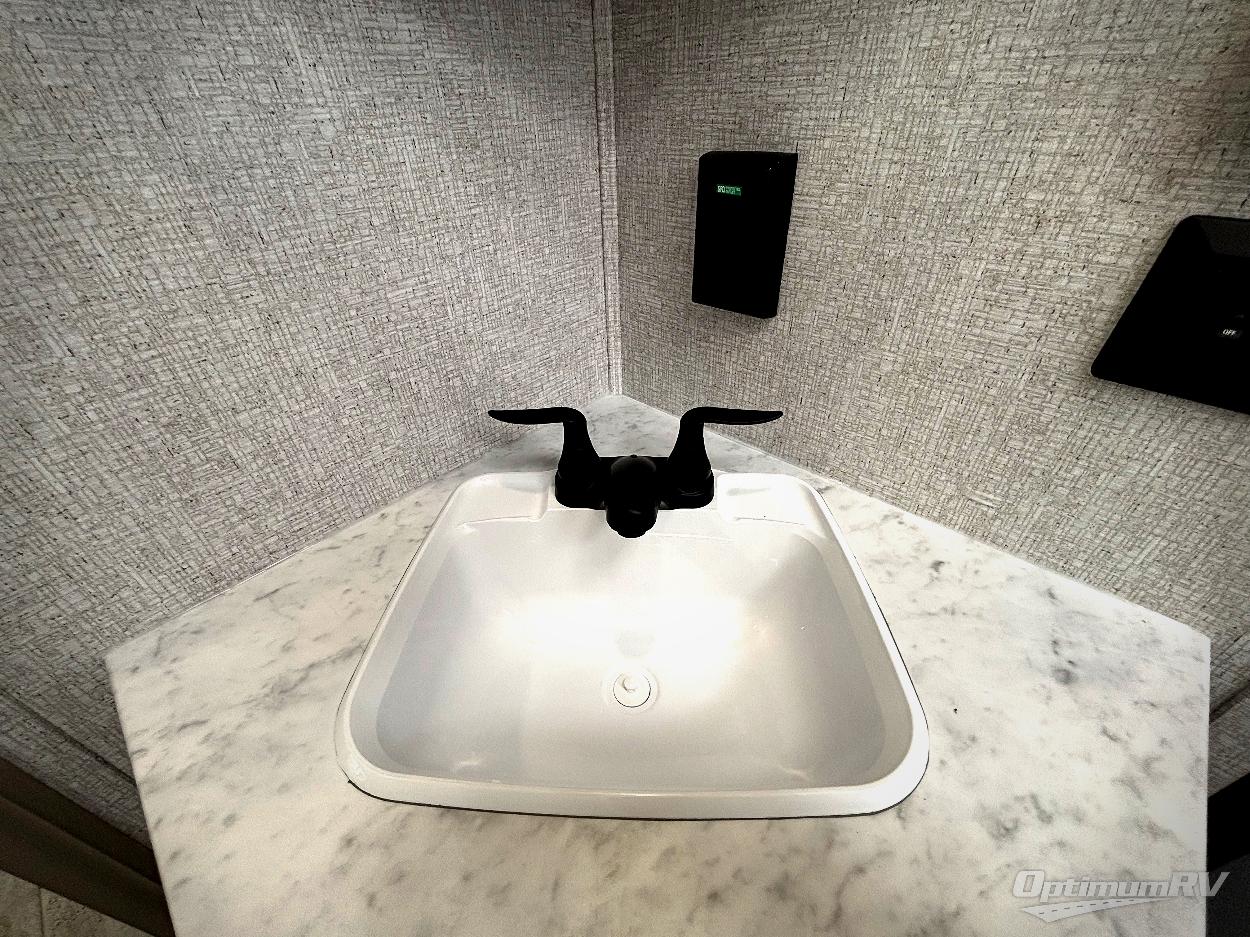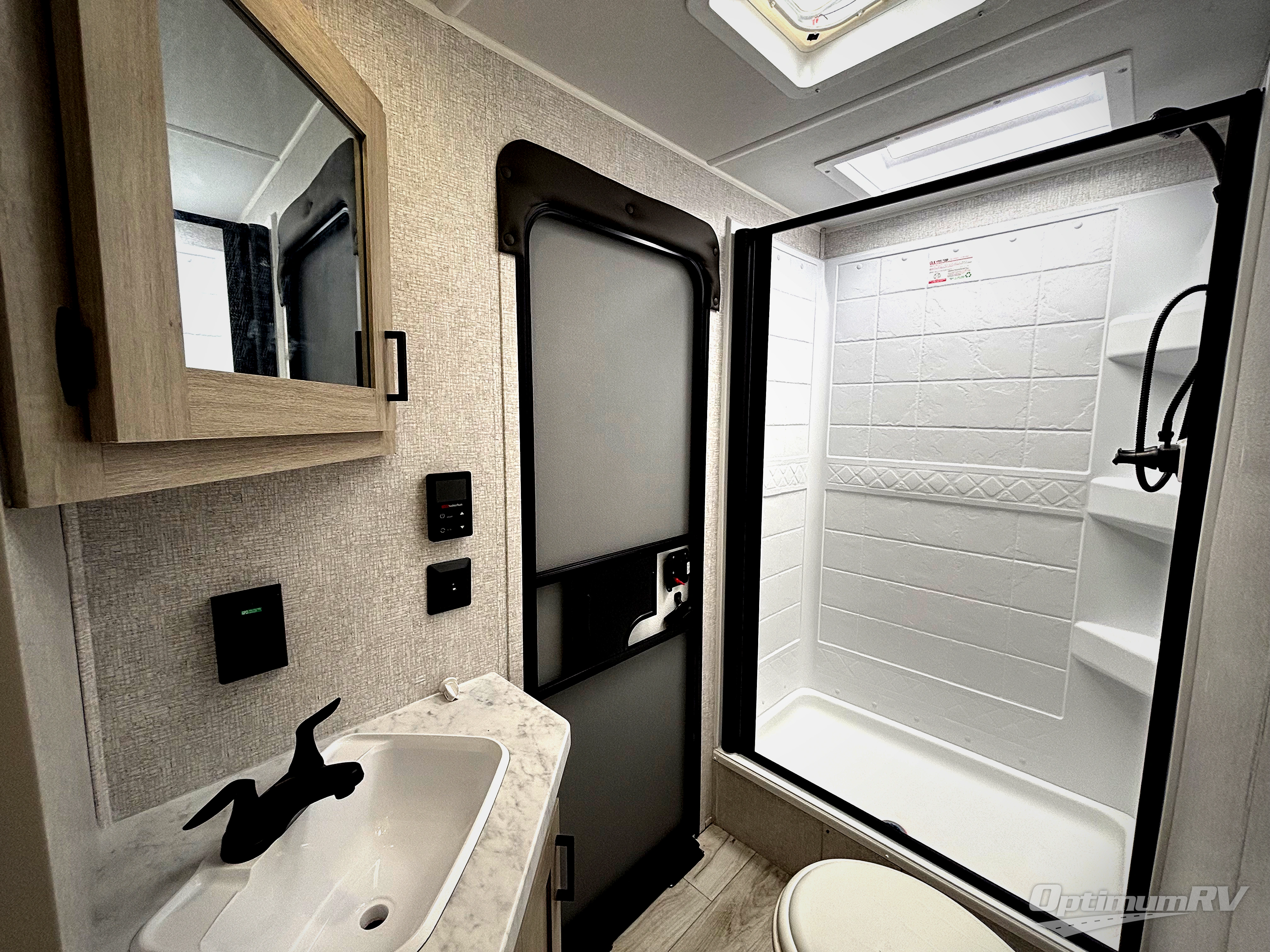 Pack your bags and hitch up this travel trailer for a fun family adventure! You will get a good night's rest on the front king bed in the front private bedroom, and the kids can sleep on the double bunk beds with storage. You could even transform the booth dinette with storage underneath it and the jiffy sofa which can be switched out for the optional theater seat or optional tri-fold sofa. The entertainment center has a fireplace for a cozy evening indoors and a hidden pantry behind it for all of your movie night snacks. With dual entry doors, it will be easy to enter and exit this unit especially from the rear corner bathroom which has one of the entry/exit doors to the unit. Enjoy cooking breakfast outside at the outdoor kitchen complete with a pull-out griddle and fridge!