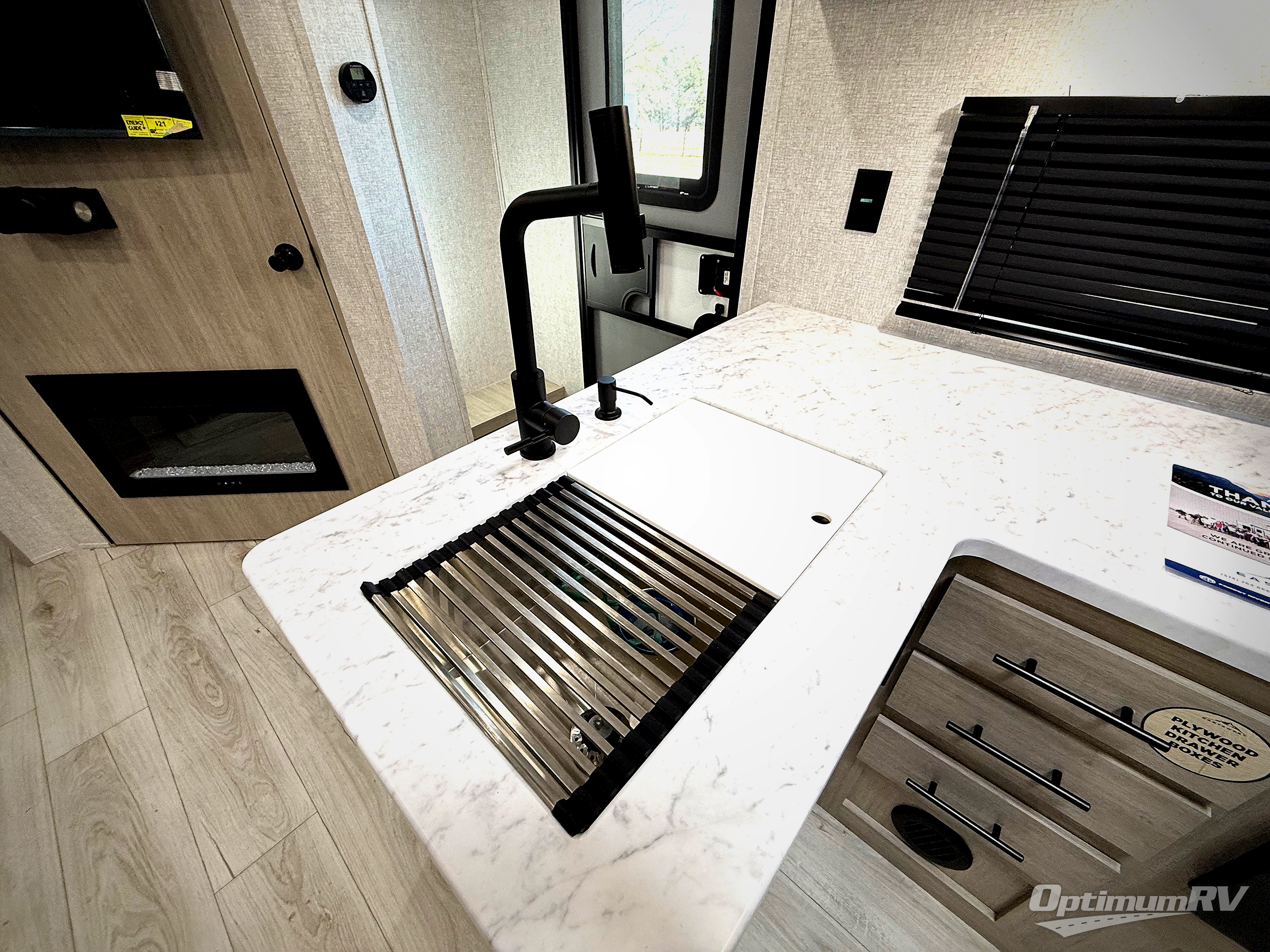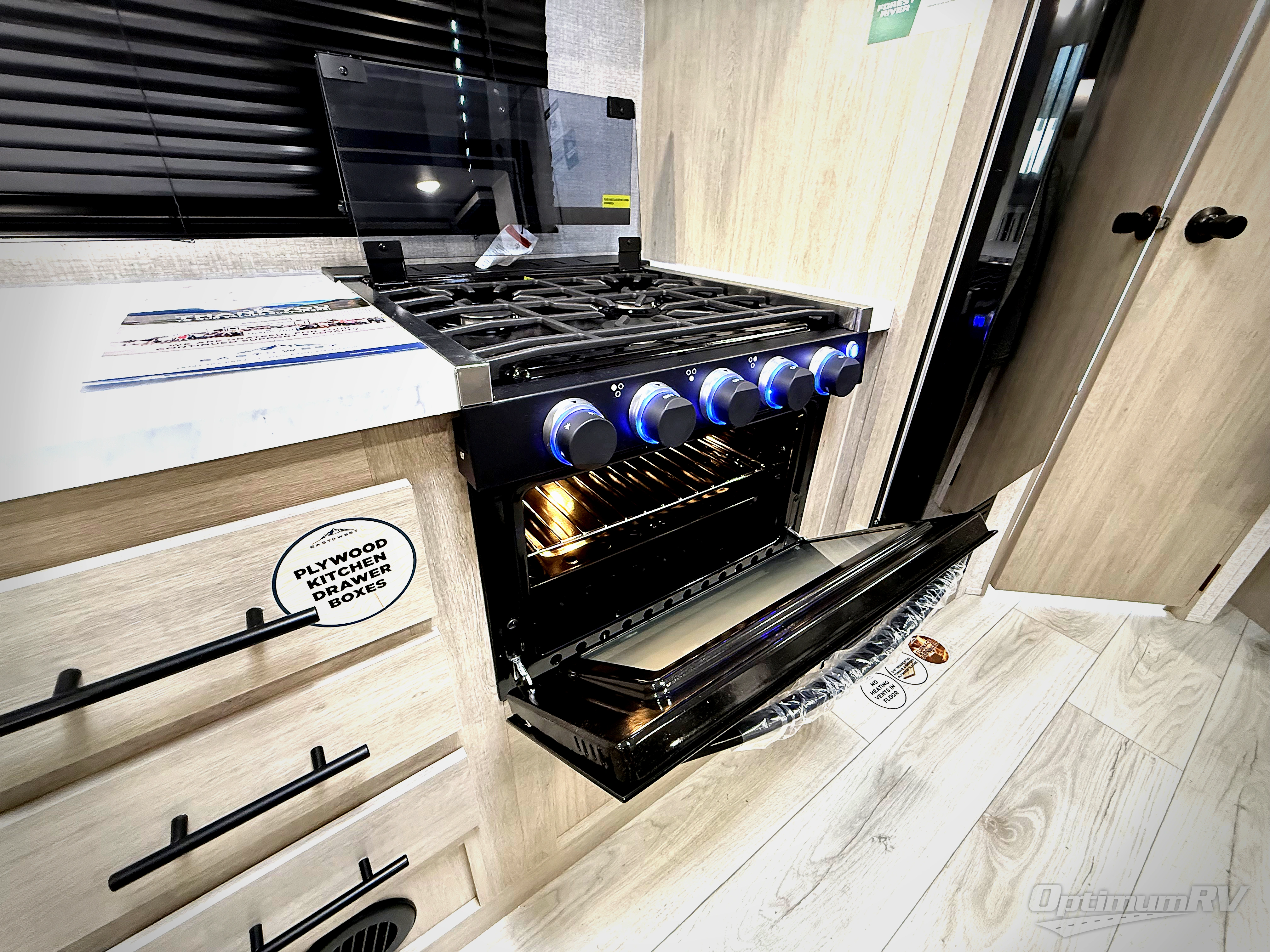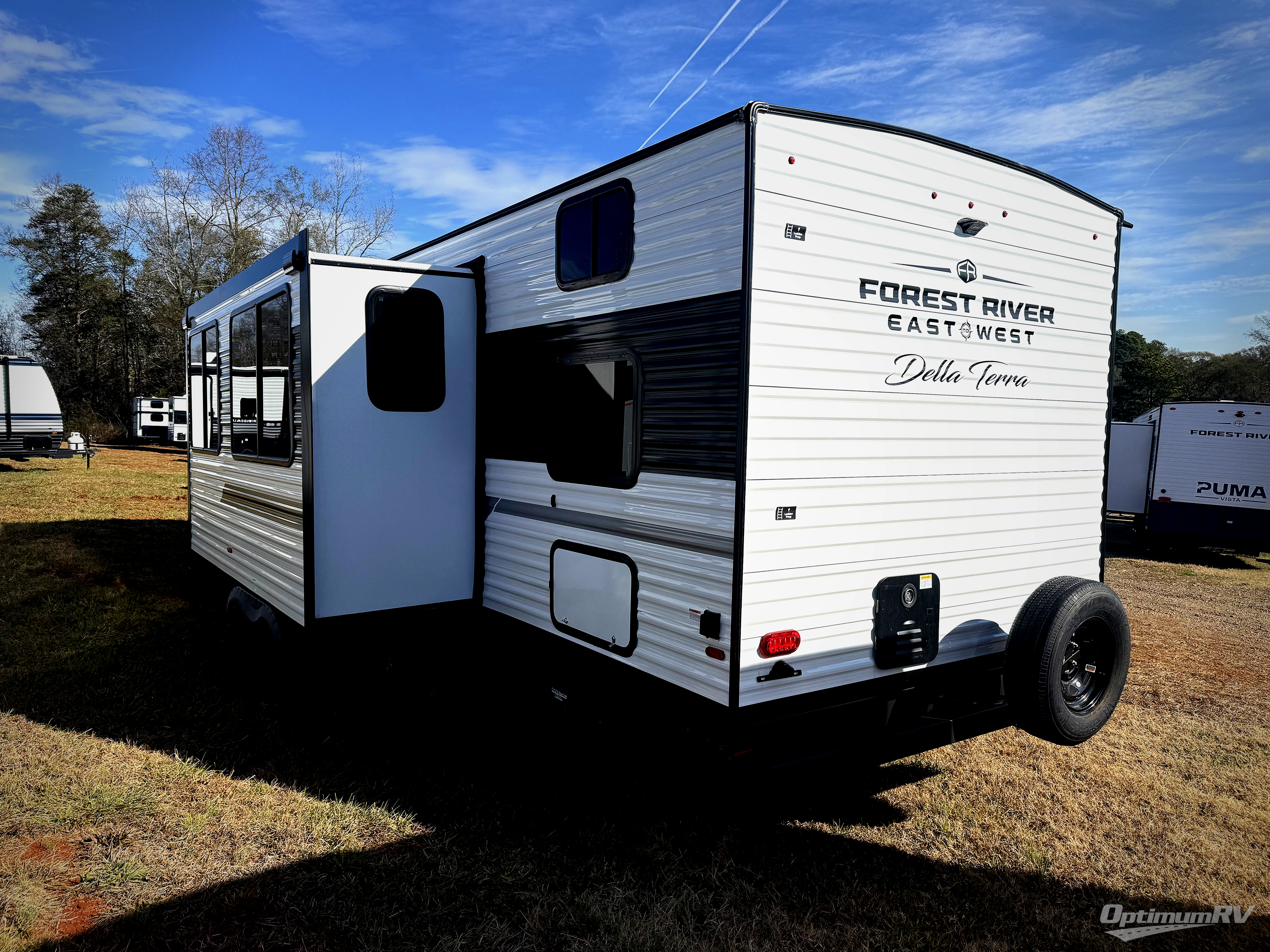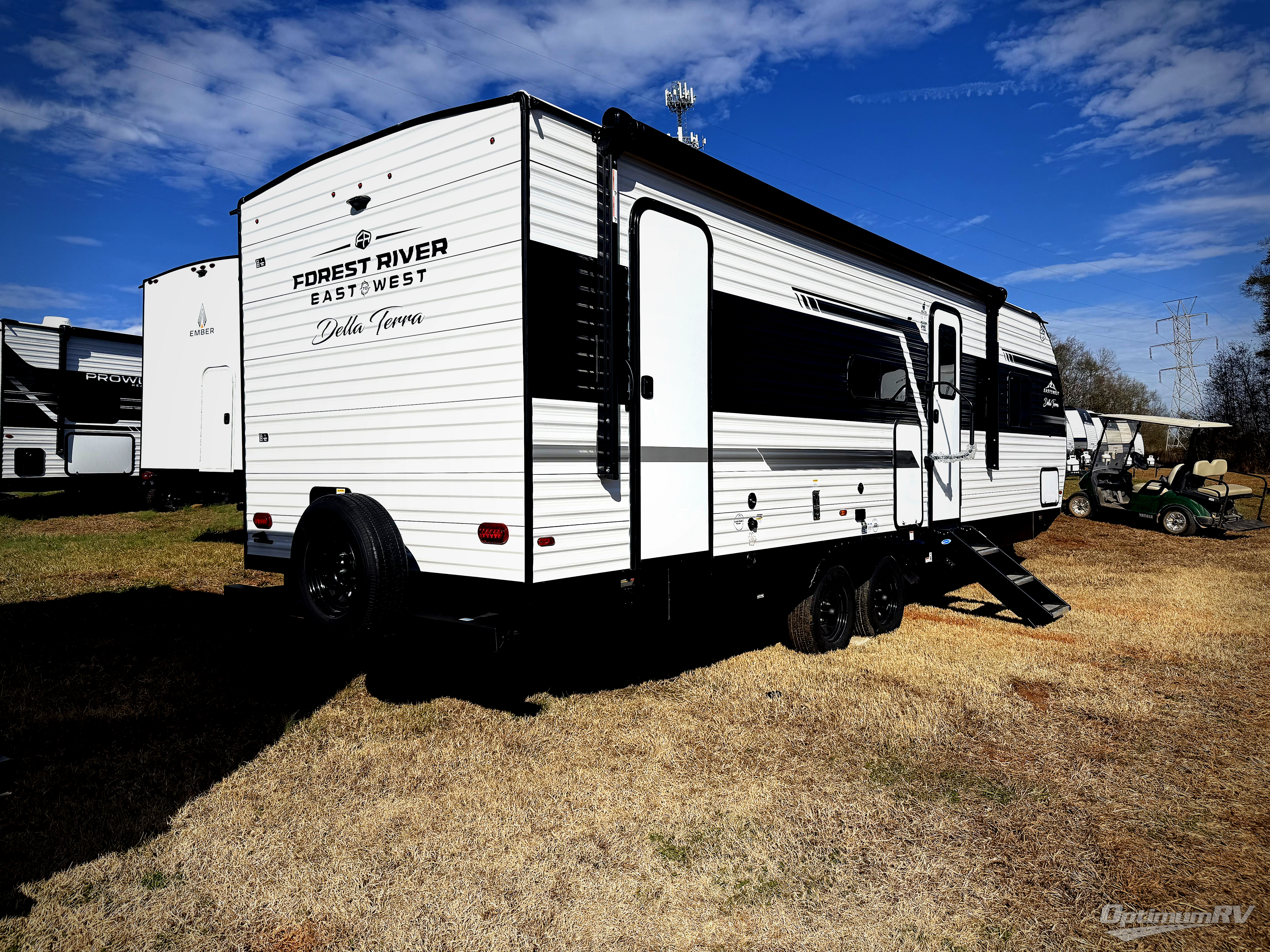 Each Della Terra travel trailer by EAST TO WEST is constructed with an enclosed and heated underbelly and enclosed holding tanks for added protection against the elements. There is also a power tongue jack with an LED light for easy set up and a power awning with LED lights you can rest under after you've unpacked. The Explore Comfort Package comes seamless pressed countertops, kitchen backsplash, window valance package with black night shades, and many more comforts. You will also appreciate the Adventure Outdoor Package with backup camera prep and solar prep, a tankless water heater, an RV grill quick disconnect, and a universal docking station with battery disconnect.
