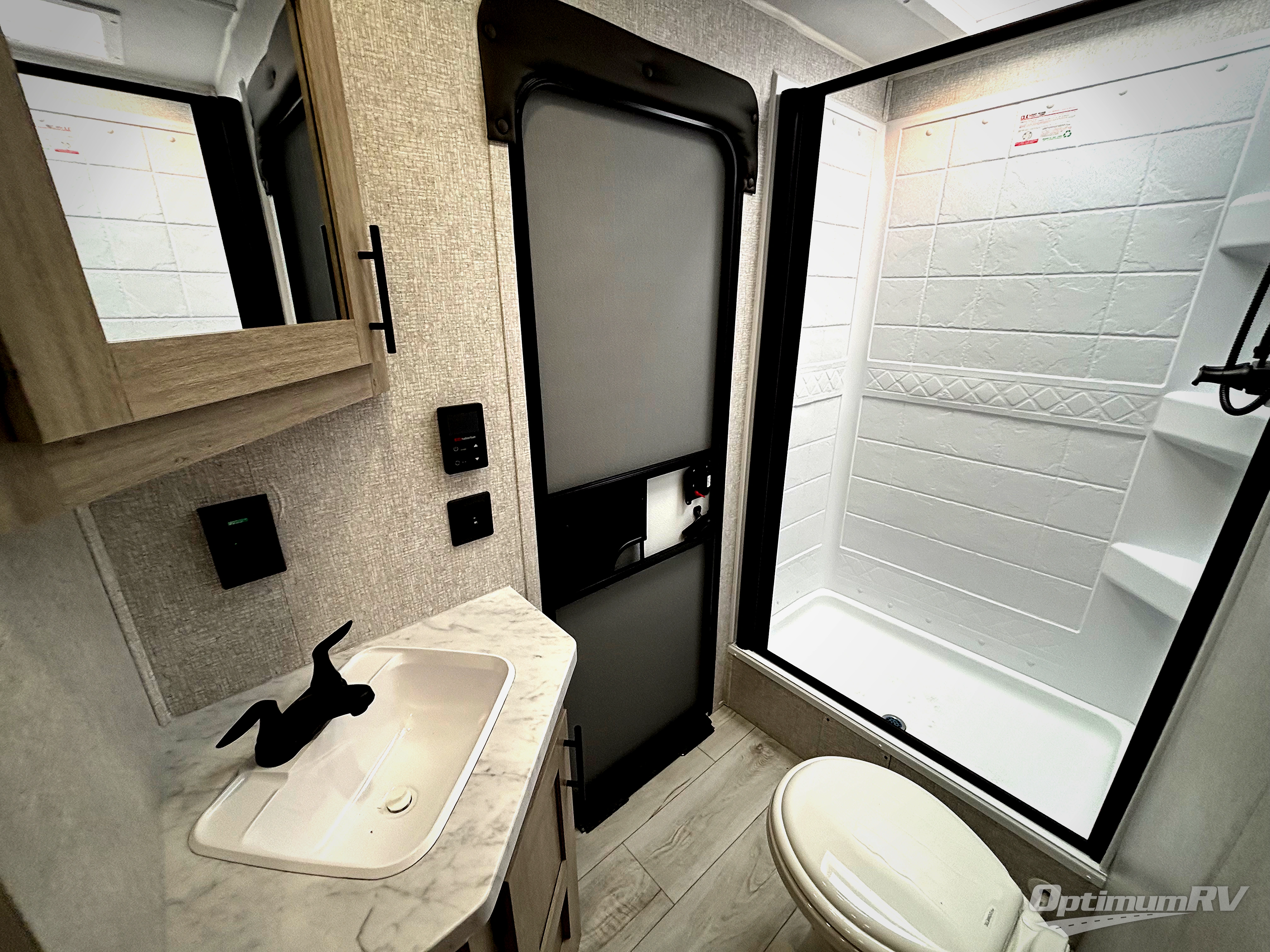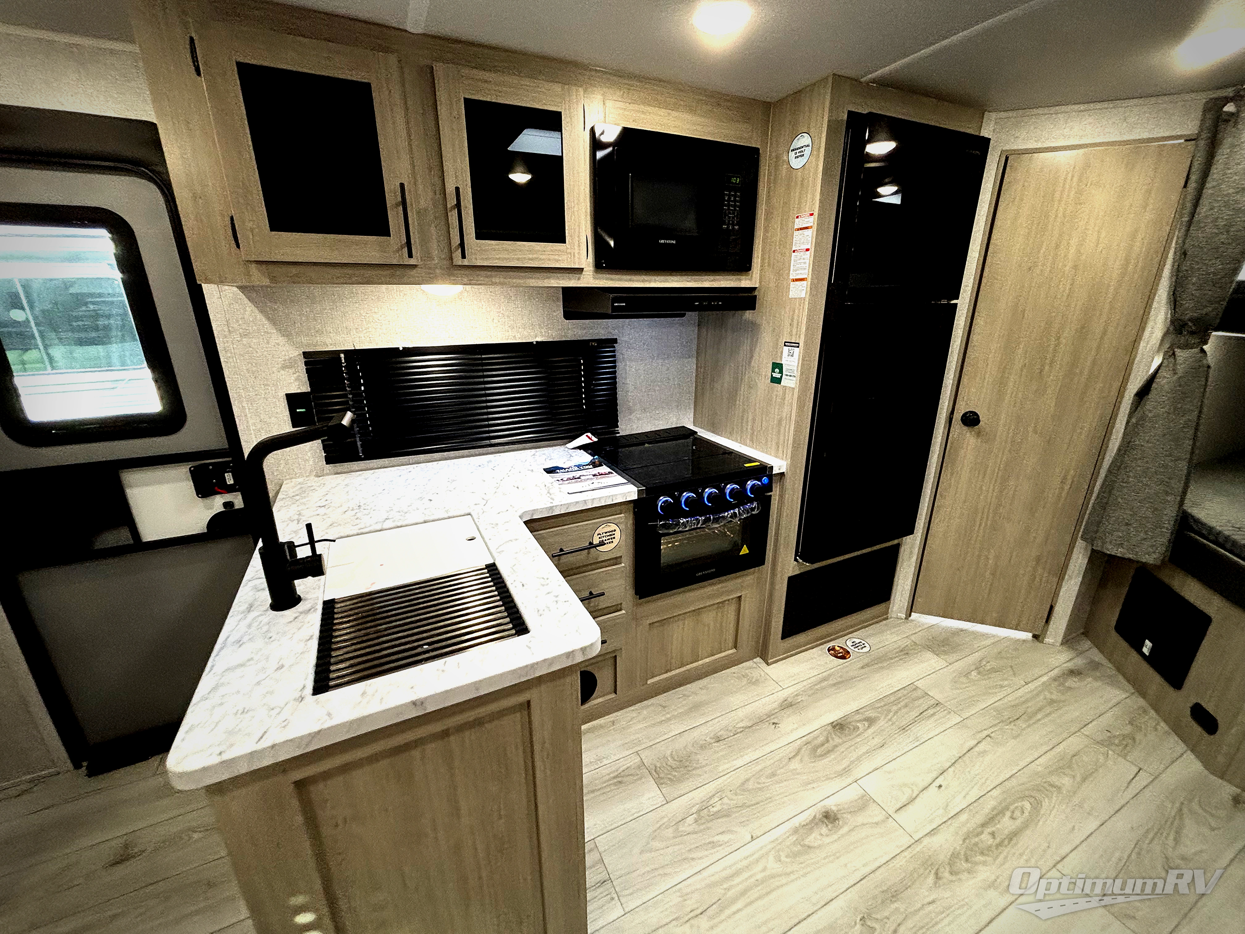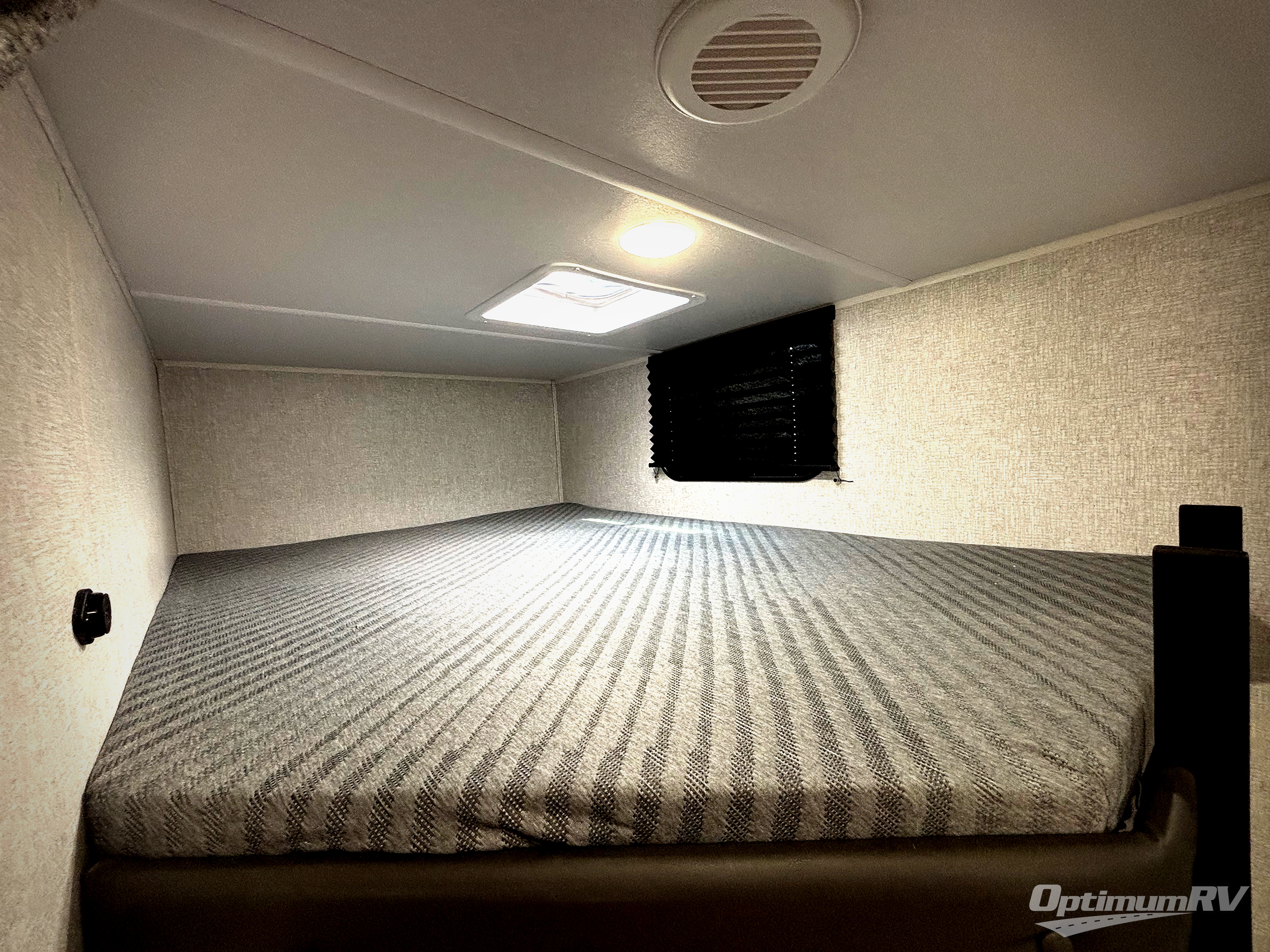 Pack your bags and hitch up this travel trailer for a fun family adventure! You will get a good night's rest on the front king bed in the front private bedroom, and the kids can sleep on the double bunk beds with storage. You could even transform the booth dinette with storage underneath it and the jiffy sofa which can be switched out for the optional theater seat or optional tri-fold sofa. The entertainment center has a fireplace for a cozy evening indoors and a hidden pantry behind it for all of your movie night snacks. With dual entry doors, it will be easy to enter and exit this unit especially from the rear corner bathroom which has one of the entry/exit doors to the unit. Enjoy cooking breakfast outside at the outdoor kitchen complete with a pull-out griddle and fridge!